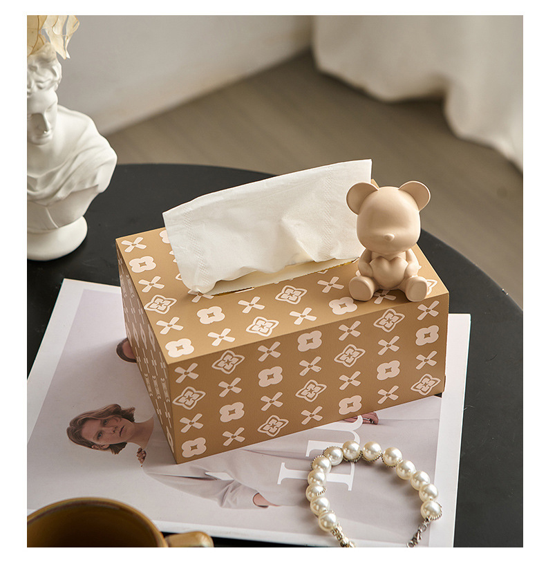 현대 미니멀리스트 곰 티슈 박스 가정용 종이 드로우 백 거실 주방 커피 테이블 장식 가벼운 럭셔리스토어 가기