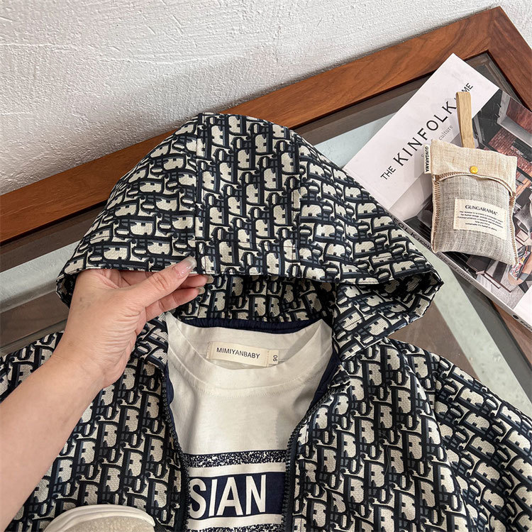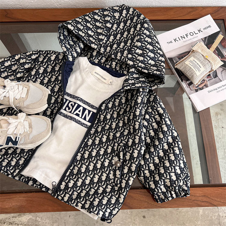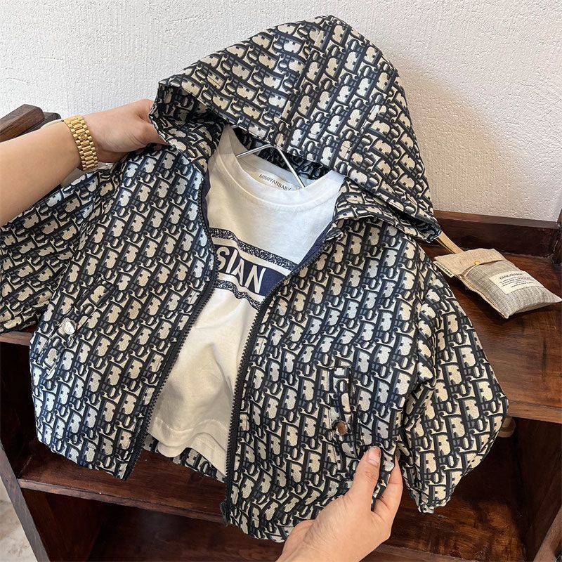 2024년 봄 신상 남녀 아동용 자카드 후드 지퍼 셔츠 아기용 올오버 프린트 올드플라워 재킷 147