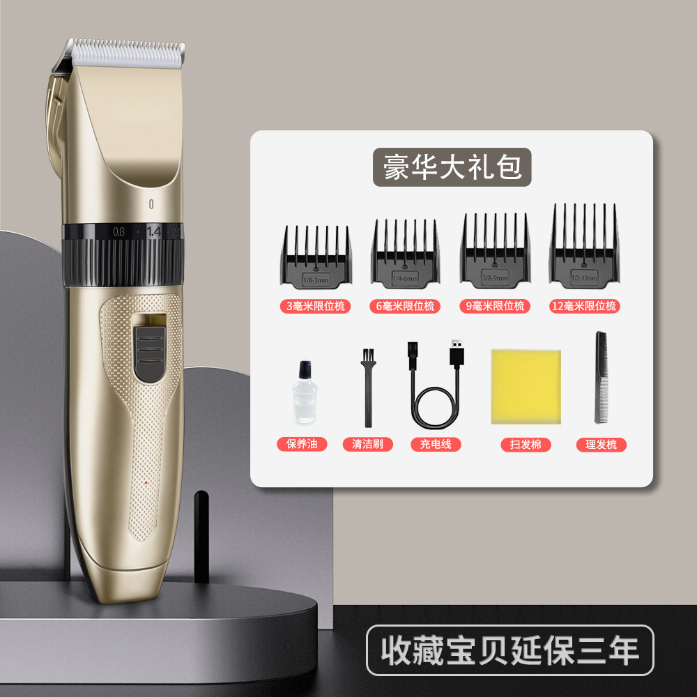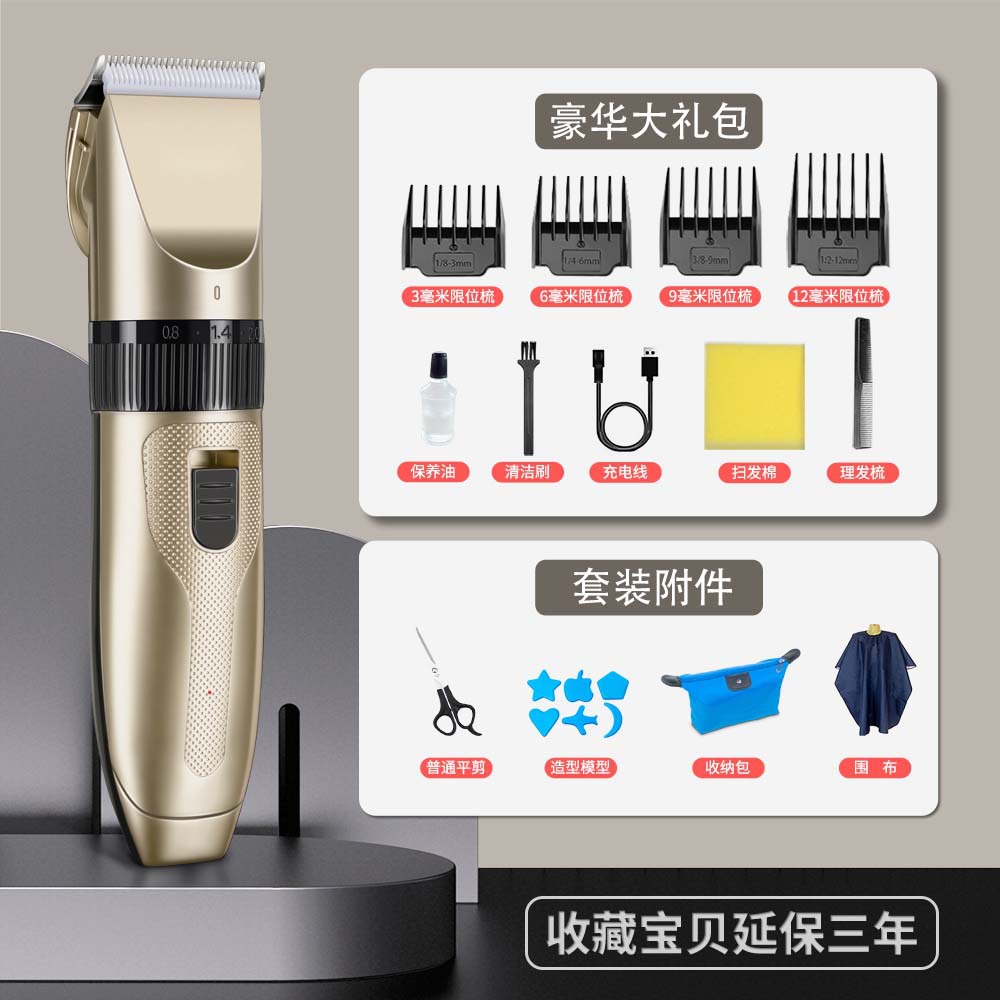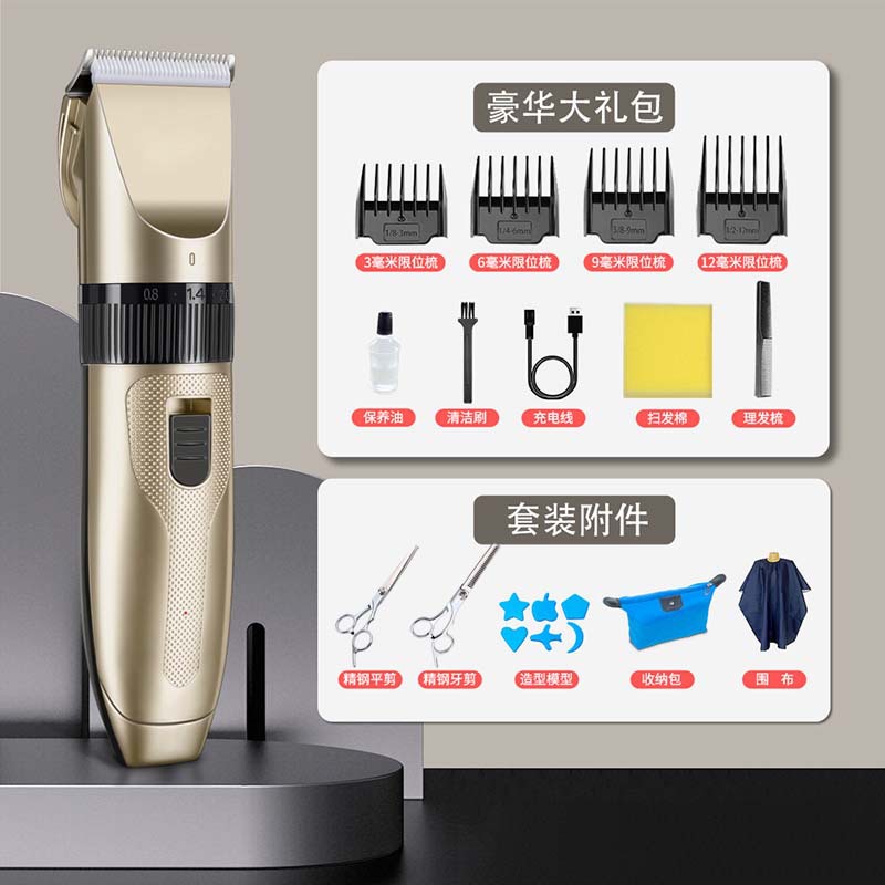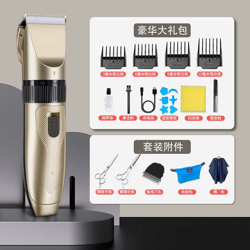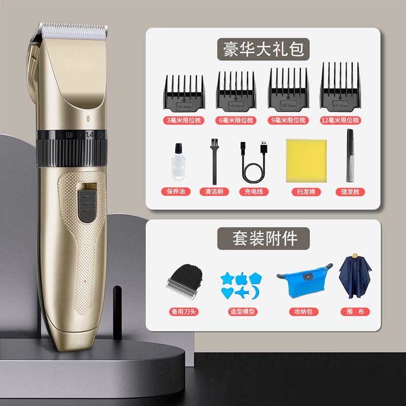 产品配件:包装盒、说明书、4个限位梳、1根USB充电线、1瓶润滑油、1个清洁刷