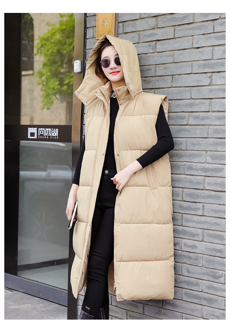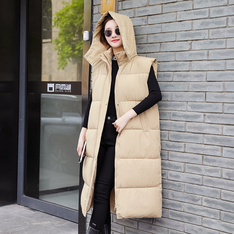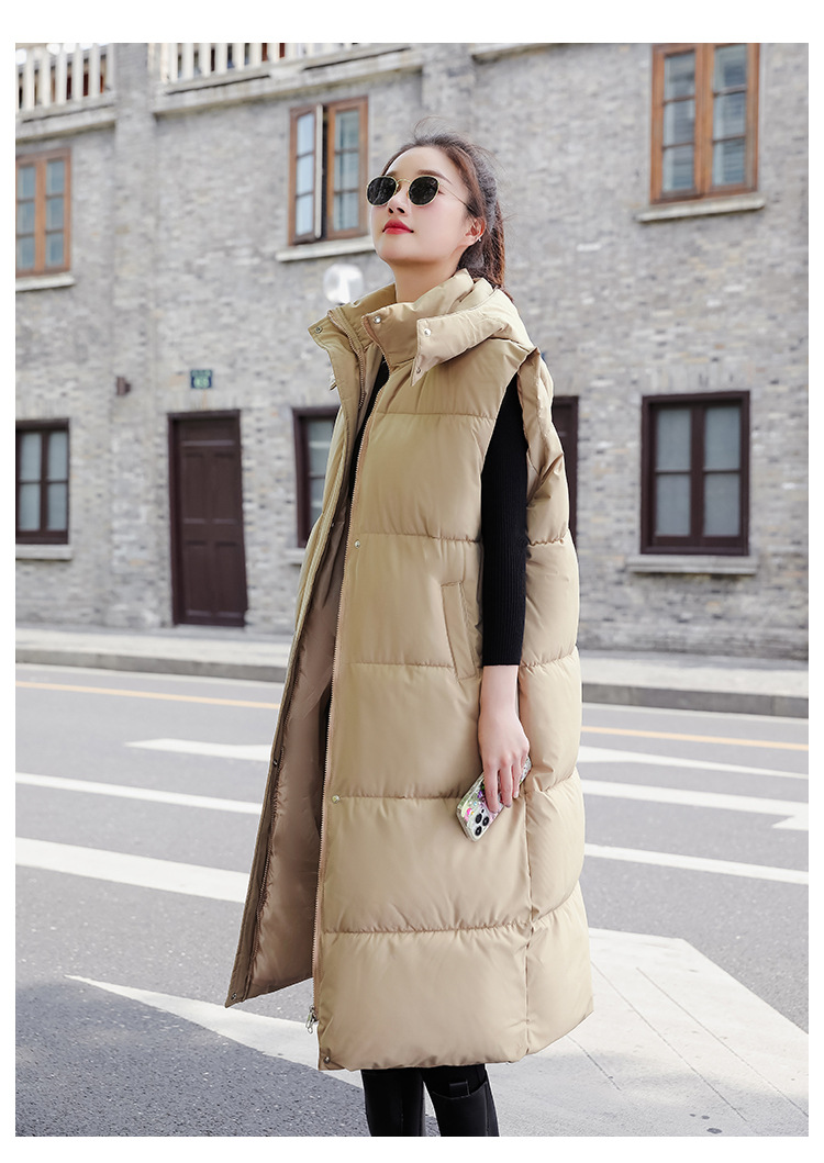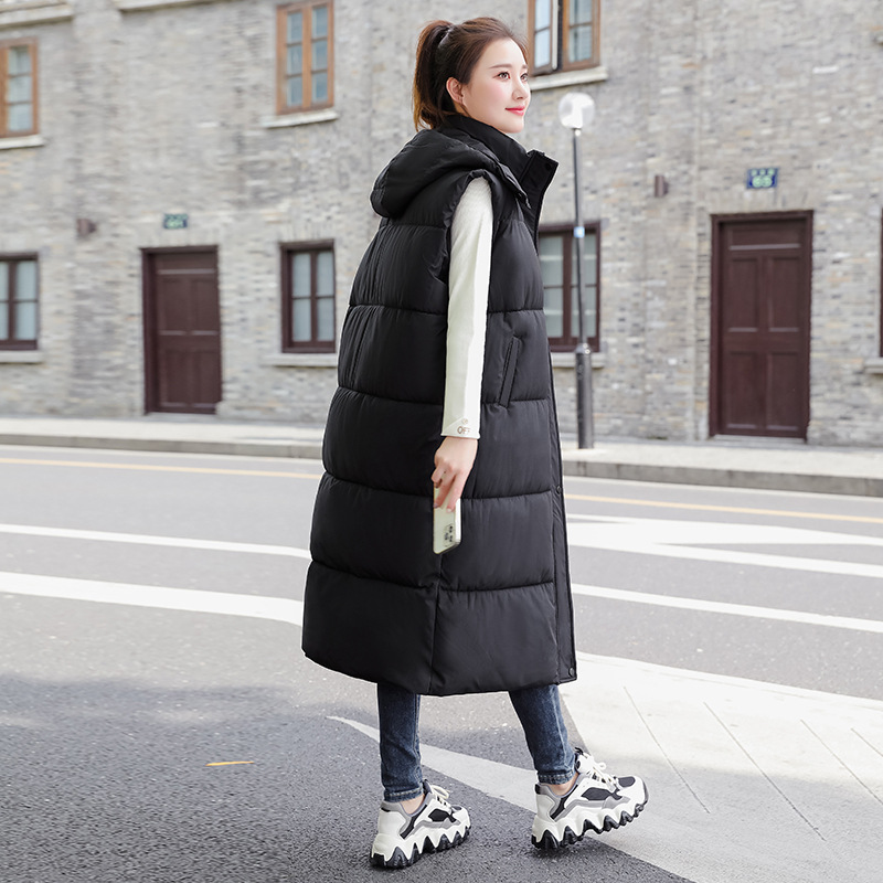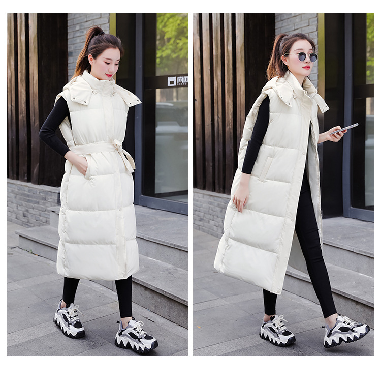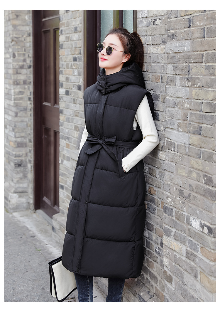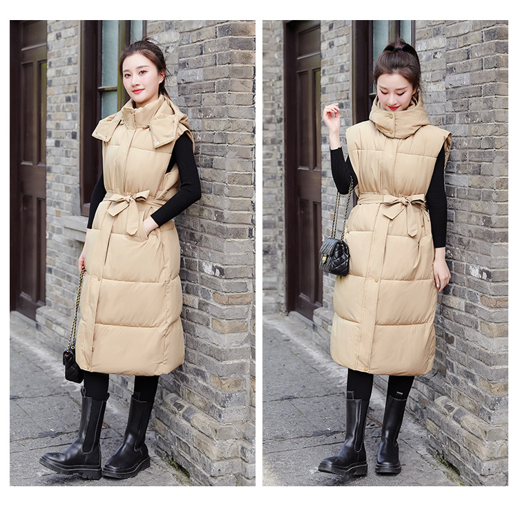 다운 코튼 허리 조끼 여성용 드로우 스트링 루즈 민소매 조끼 가을 및 겨울 중간 길이 두꺼운 코튼 코트스토어 가기