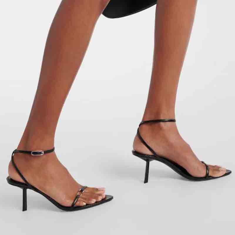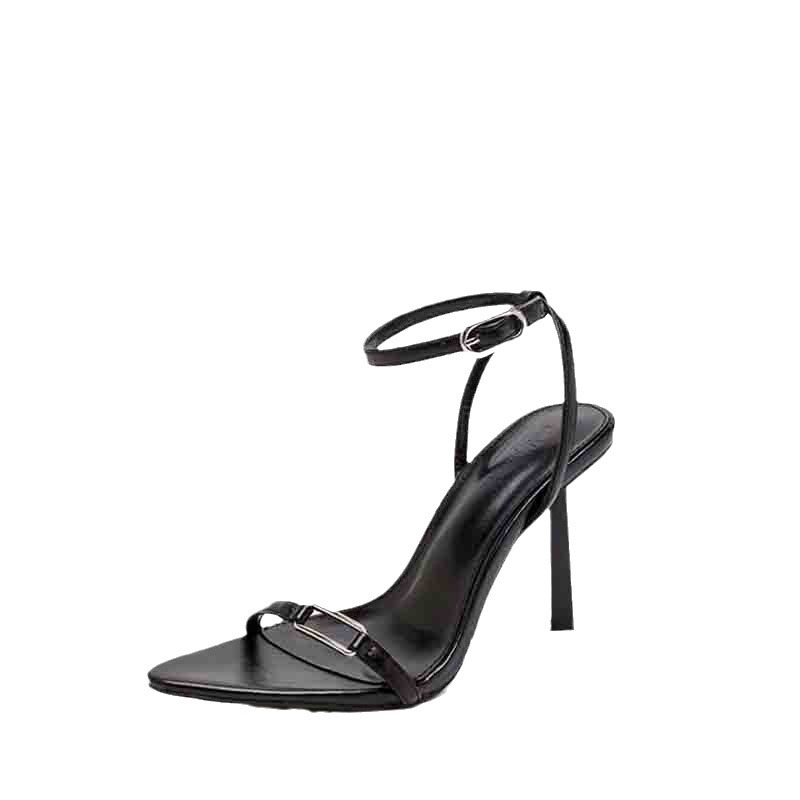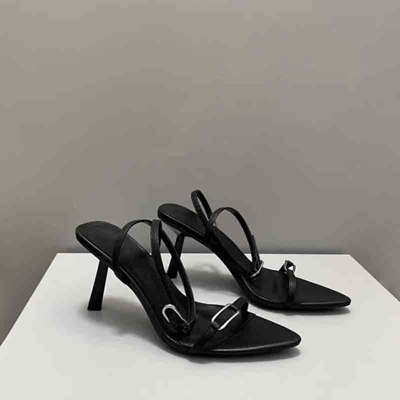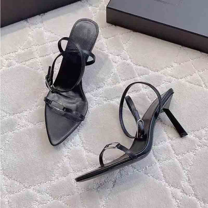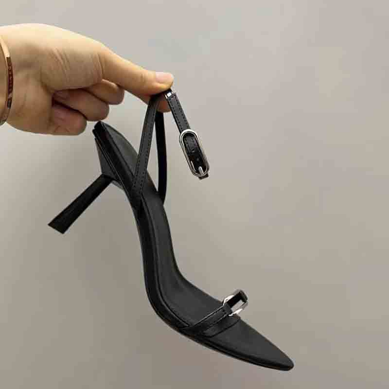 실버 버클이 달린 2024년 하이힐 샌들, 스틸레토 힐, 슈퍼 하이힐, 섹시한 포인티드 토 스틸레토 샌들