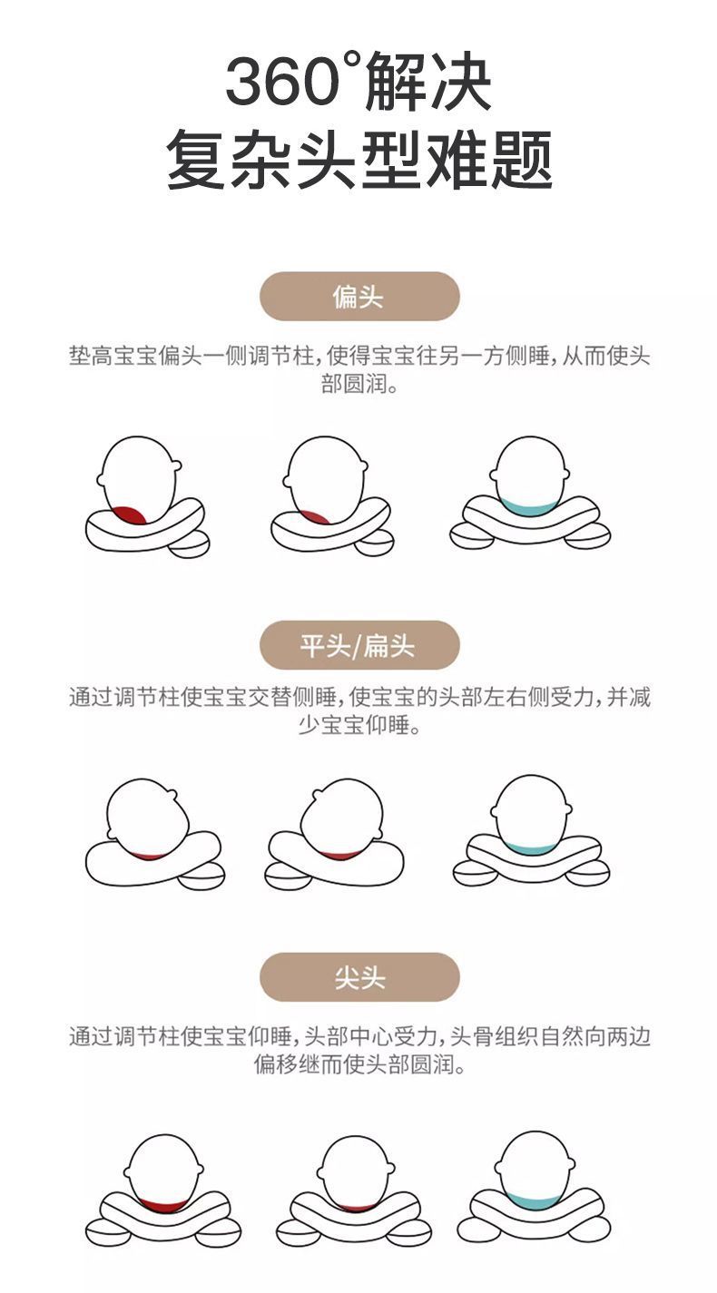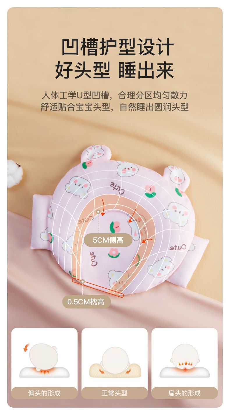 XKW 기장 베개 아기 스타일링 베개 아기 잠자는 머리 유형 신생아 0 ~ 6 개월 머리 편차 예방 1 세 메밀스토어 가기
