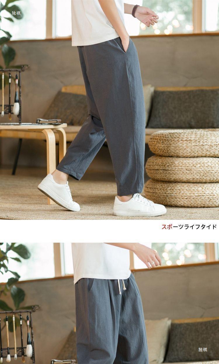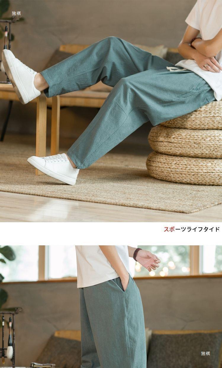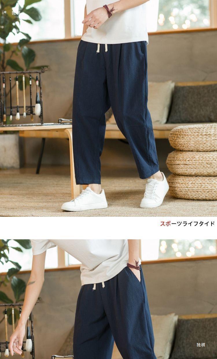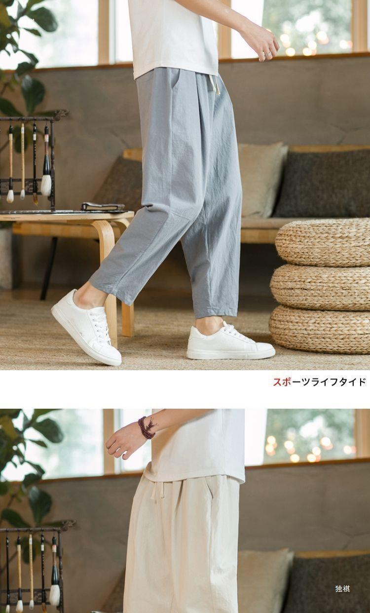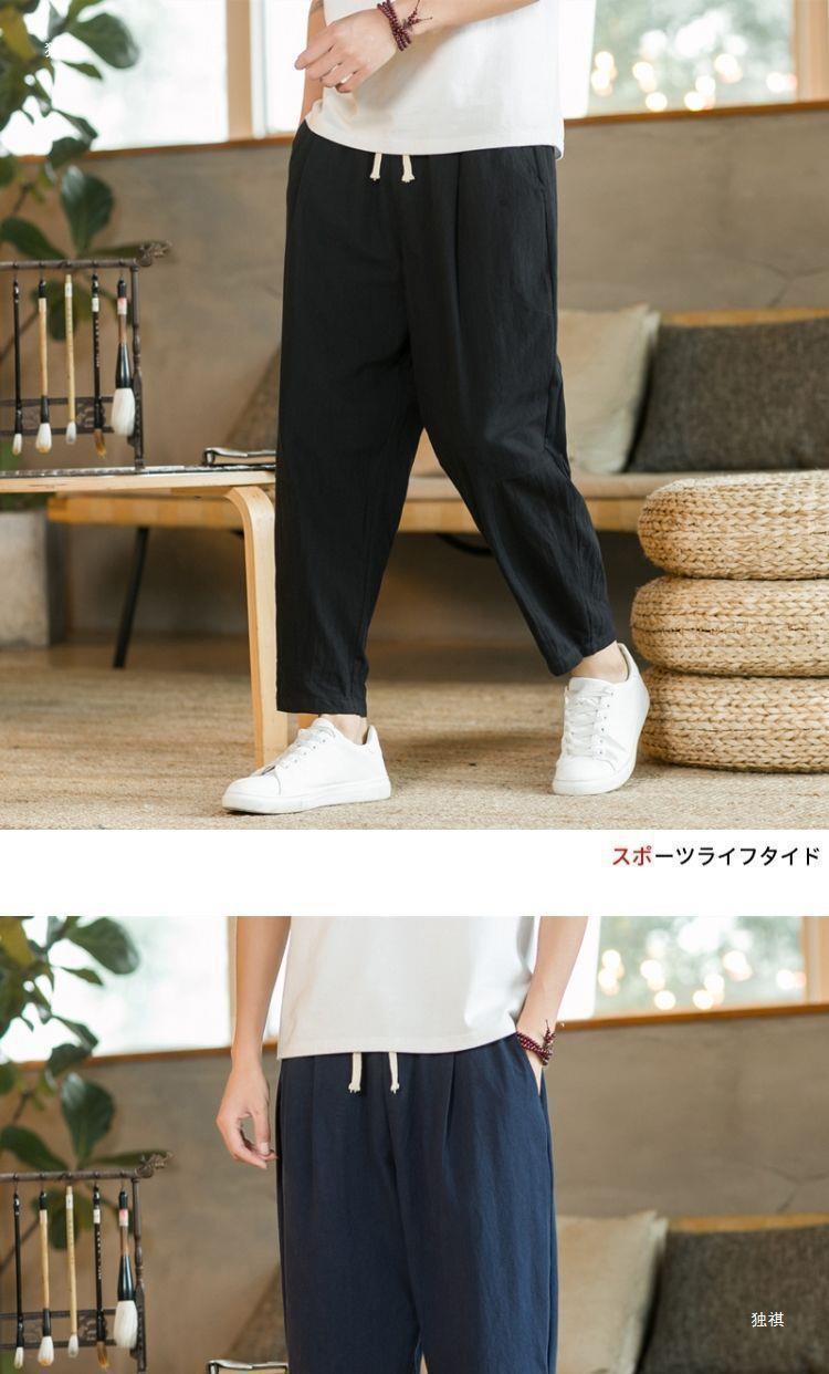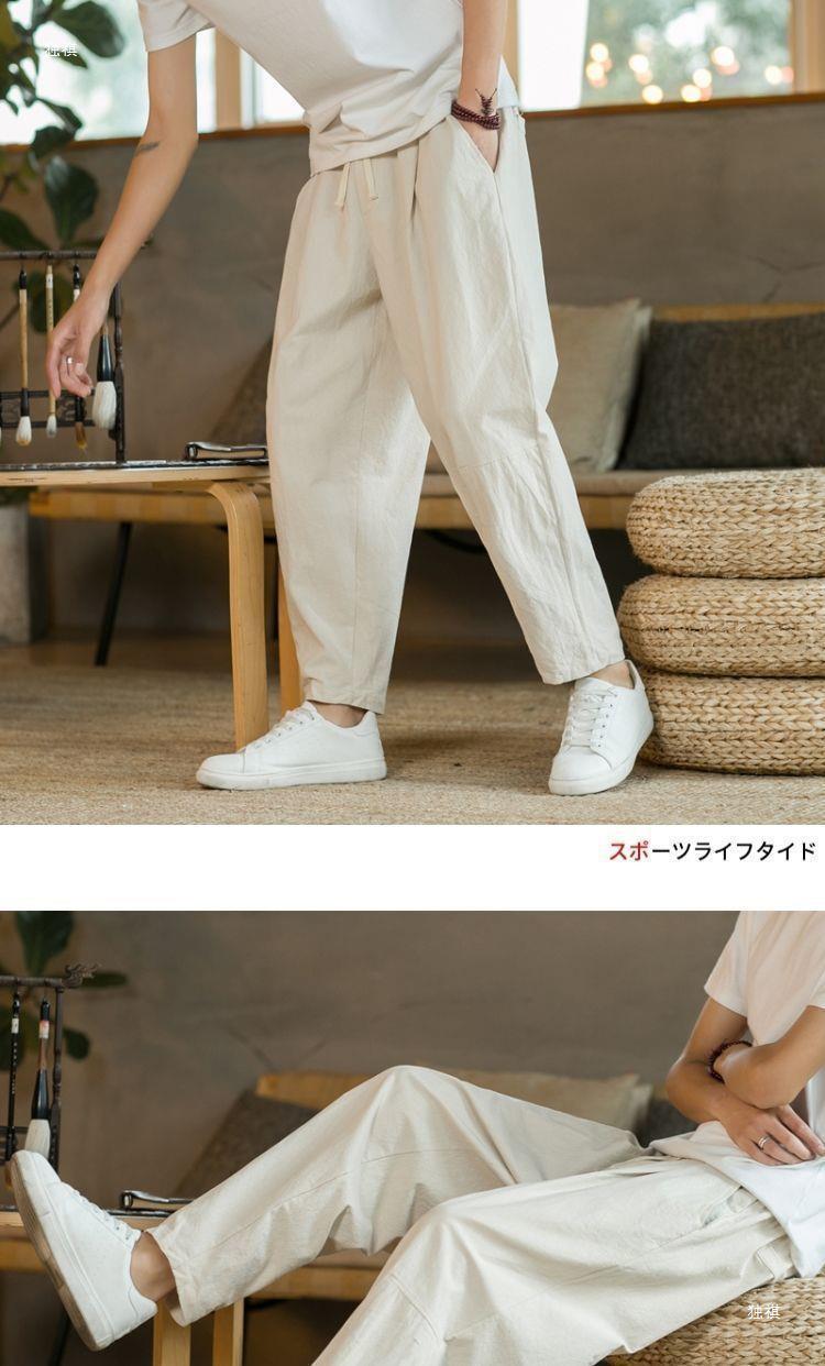발목 길이 바지 남자의 여름 얇은 면과 린넨 바지 느슨한 스트레이트 플러스 사이즈 캐주얼 바지 중국 스타일 남성용 바지 면 및 리넨 바지