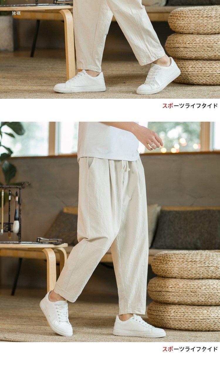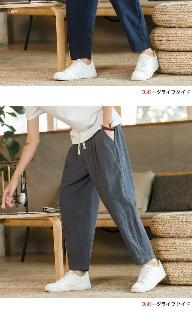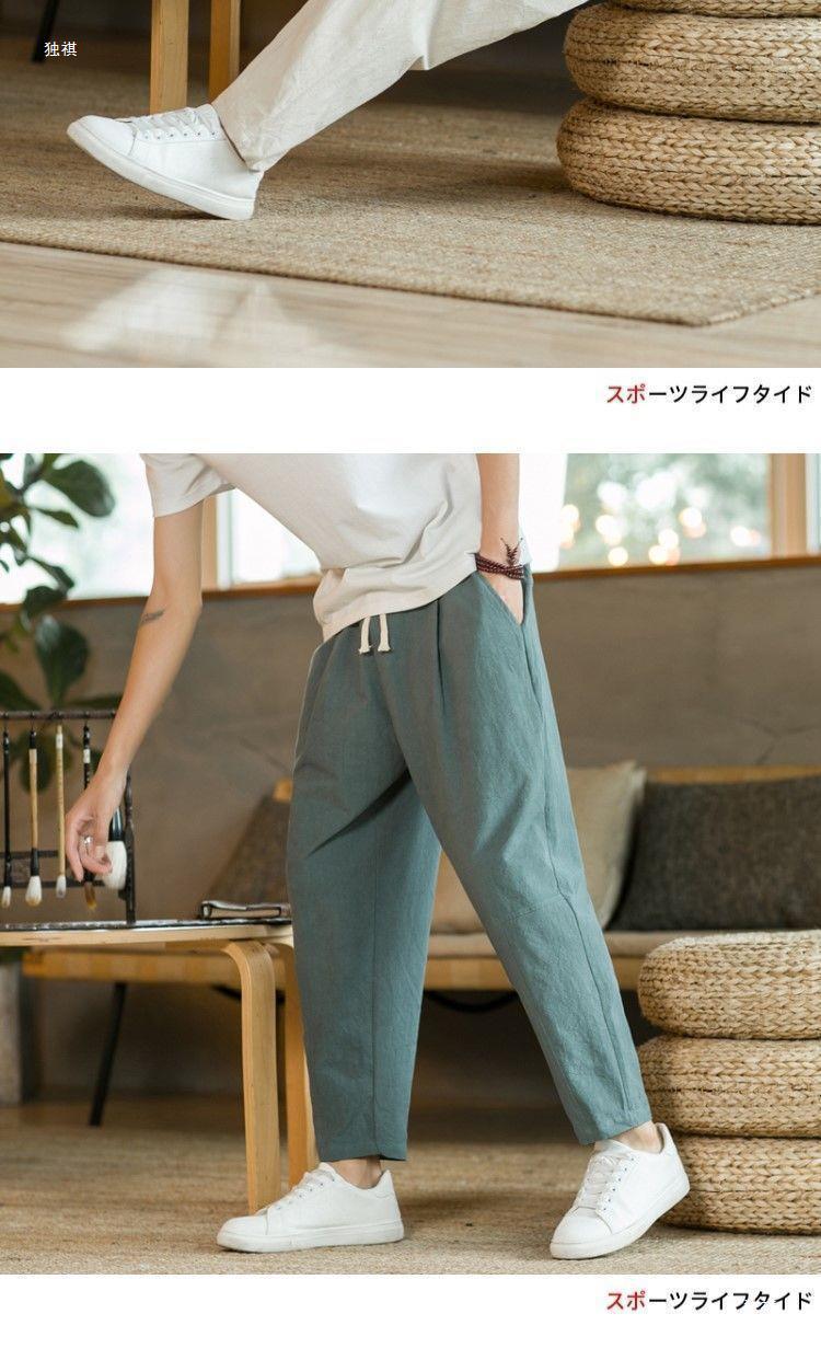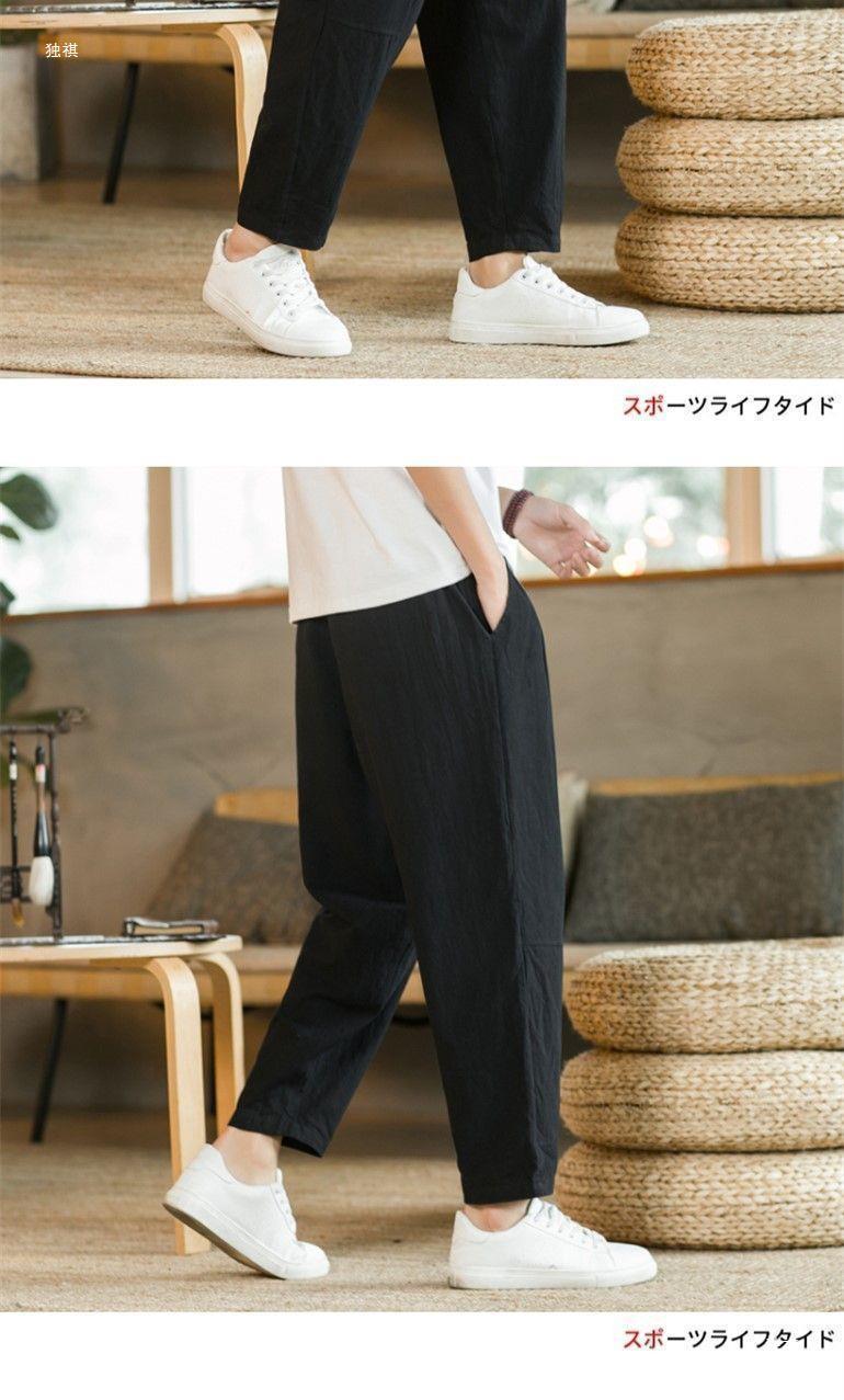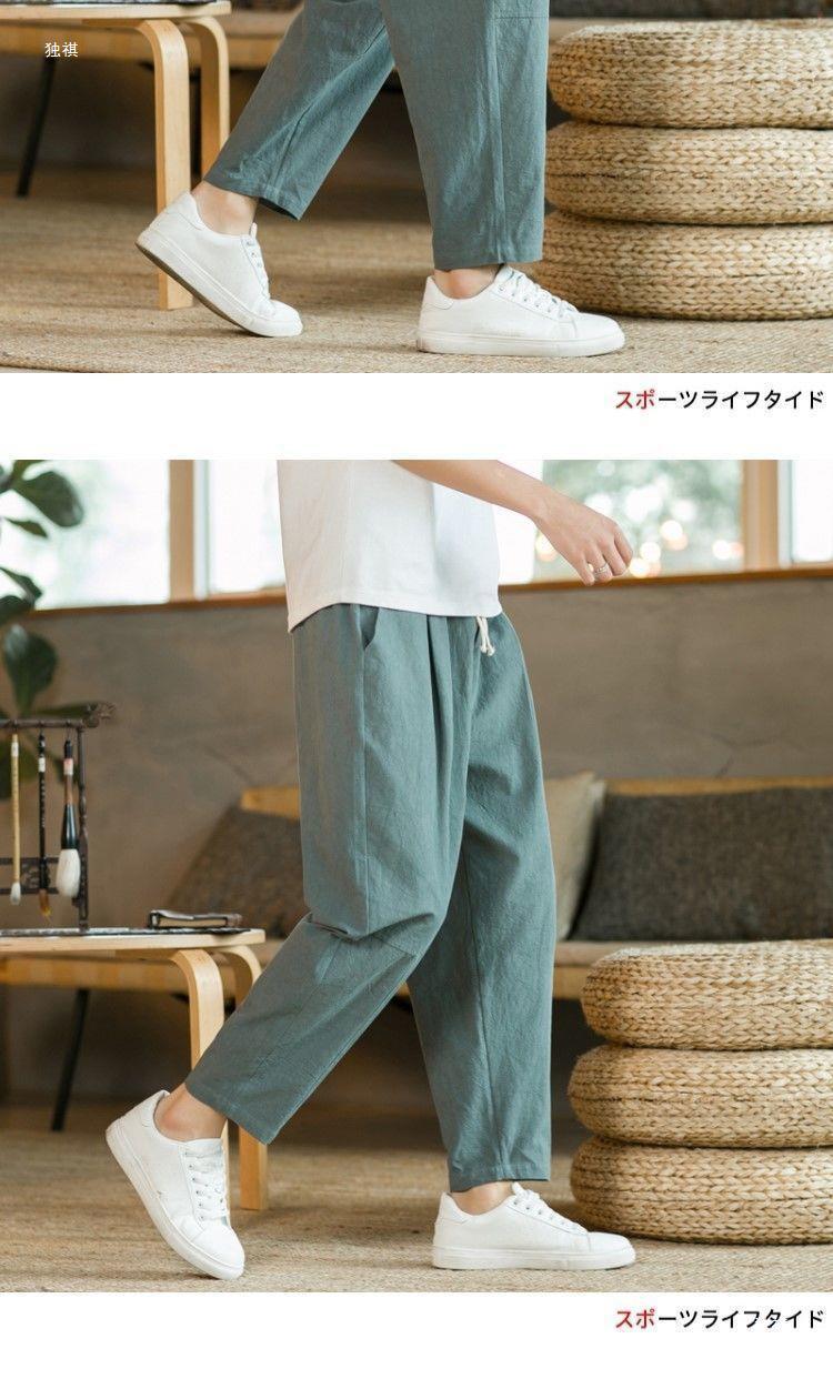 발목 길이 바지 남자의 여름 얇은 면과 린넨 바지 느슨한 스트레이트 플러스 사이즈 캐주얼 바지 중국 스타일 남성용 바지 면 및 리넨 바지