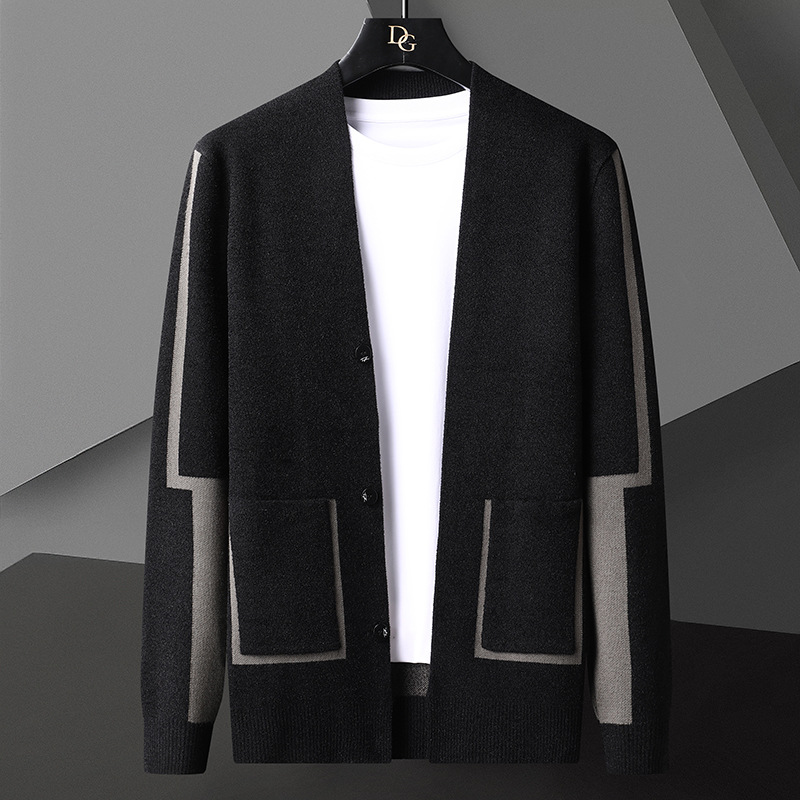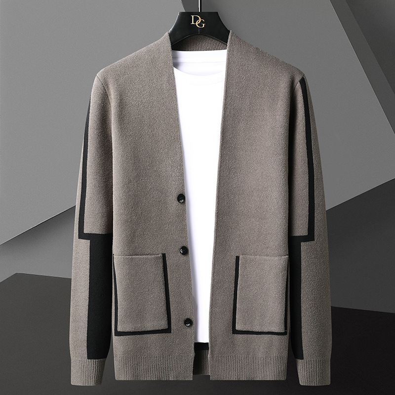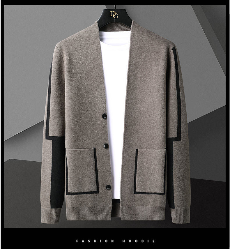 남자 패션 캐주얼 니트 카디건 스웨터 2024 가을과 겨울 아이야 의류스토어 가기
