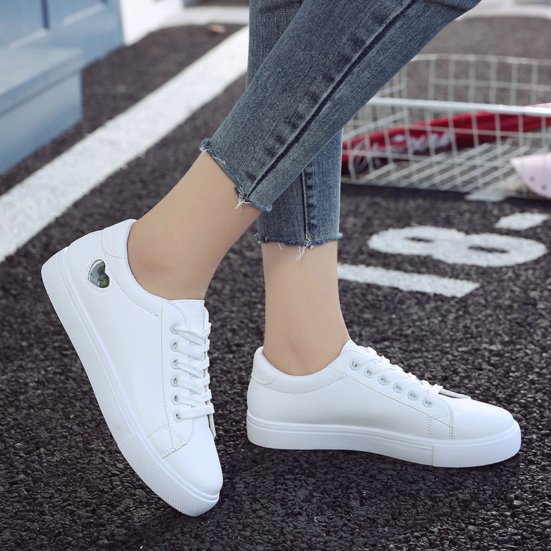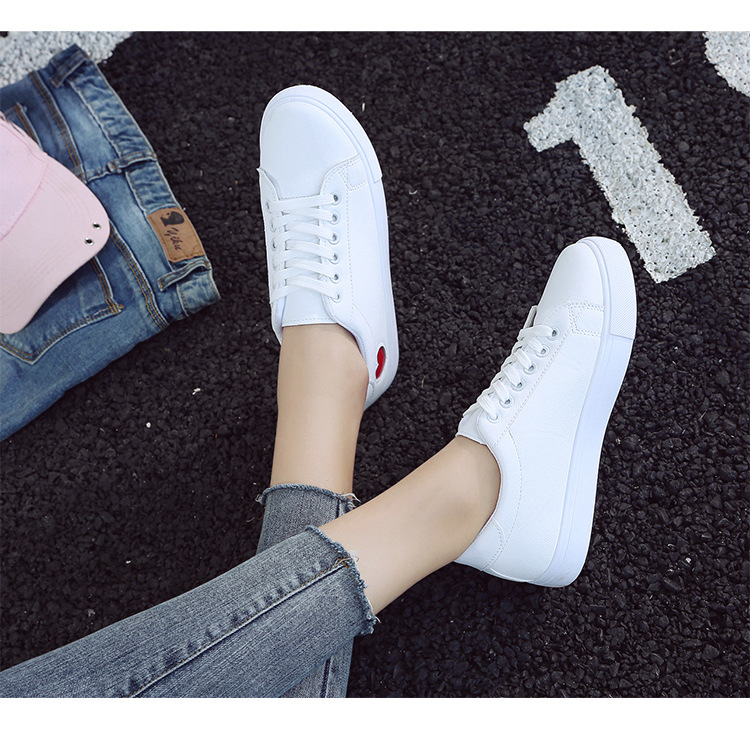 여성을위한 봄과 가을 사랑 흰색 신발 2025 여름 새로운 가죽 패션 다목적 플랫 신발 여성 싱글 신발스토어 가기