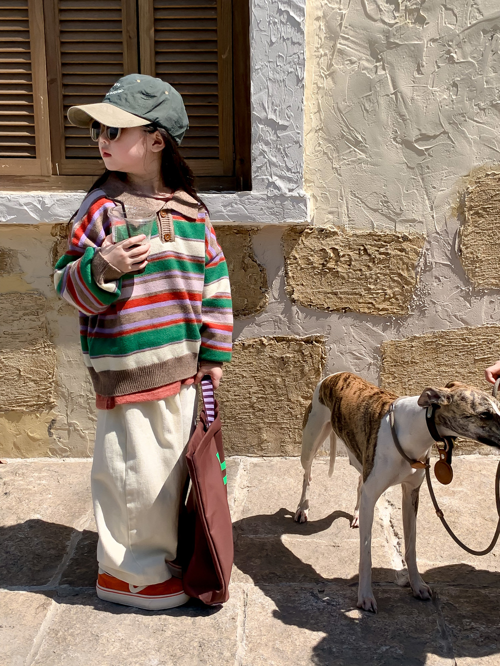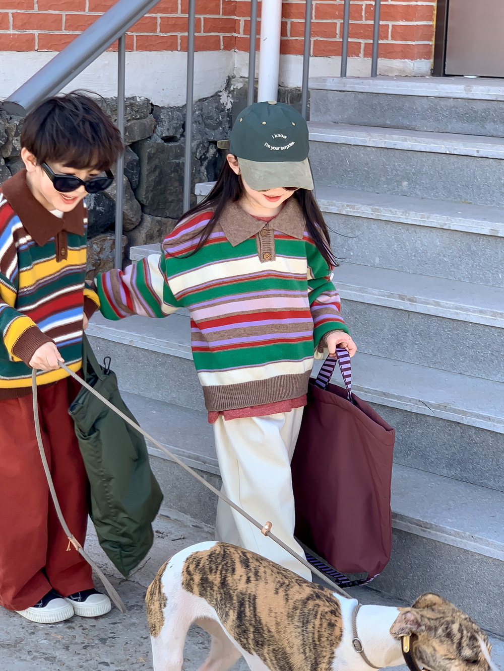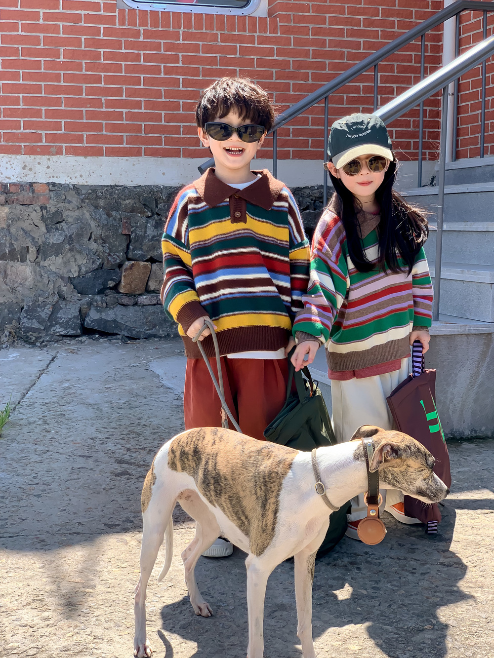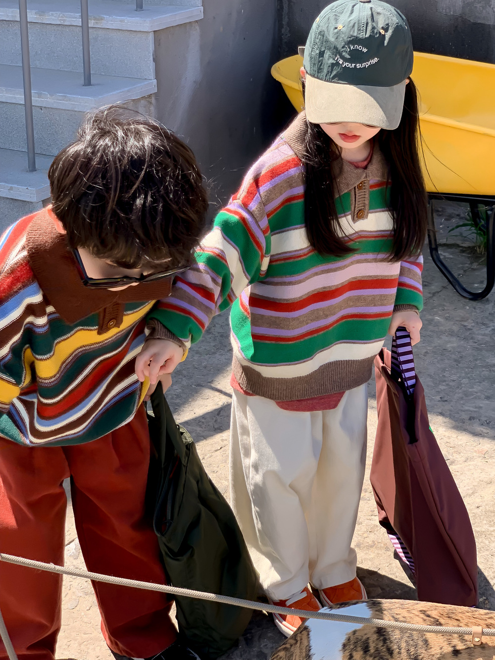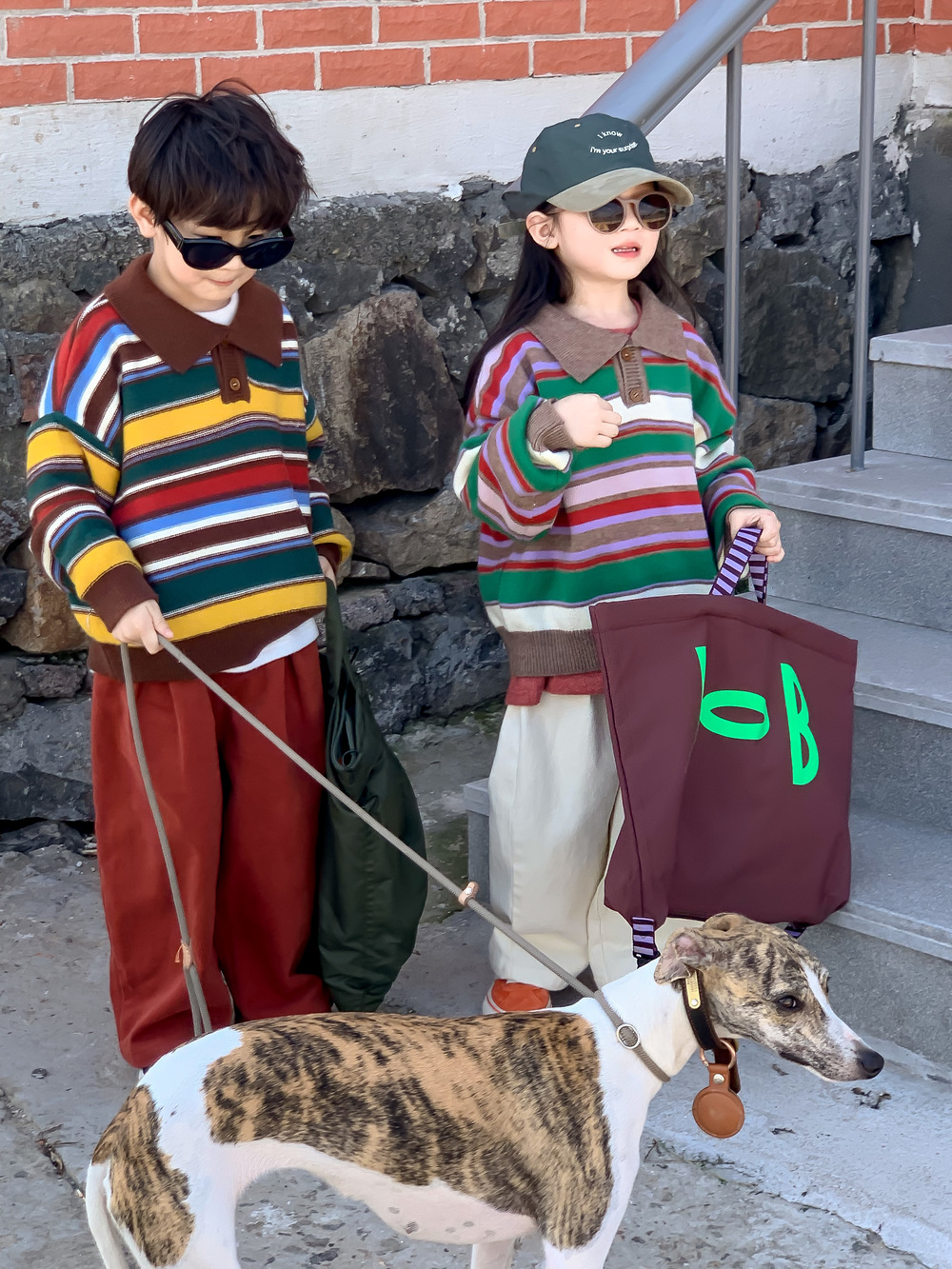 아동용 스웨터 2025 가을 남녀 아동용 카라 스트라이프 니트 상의 어린이 무지개 풀오버 중소 아동용스토어 가기