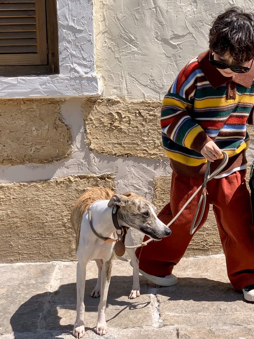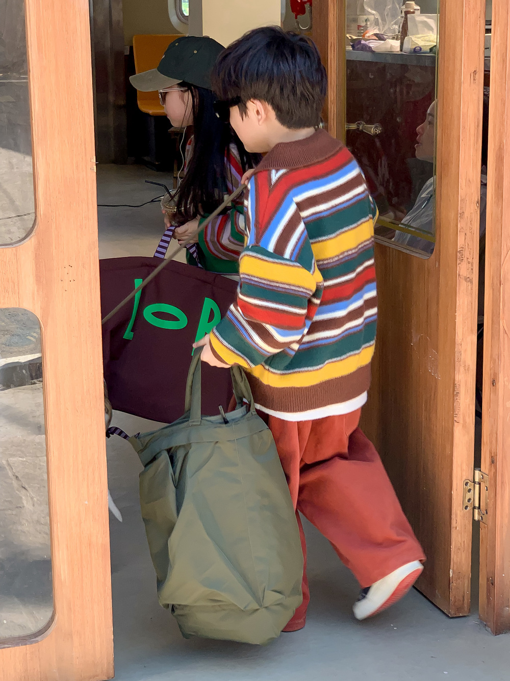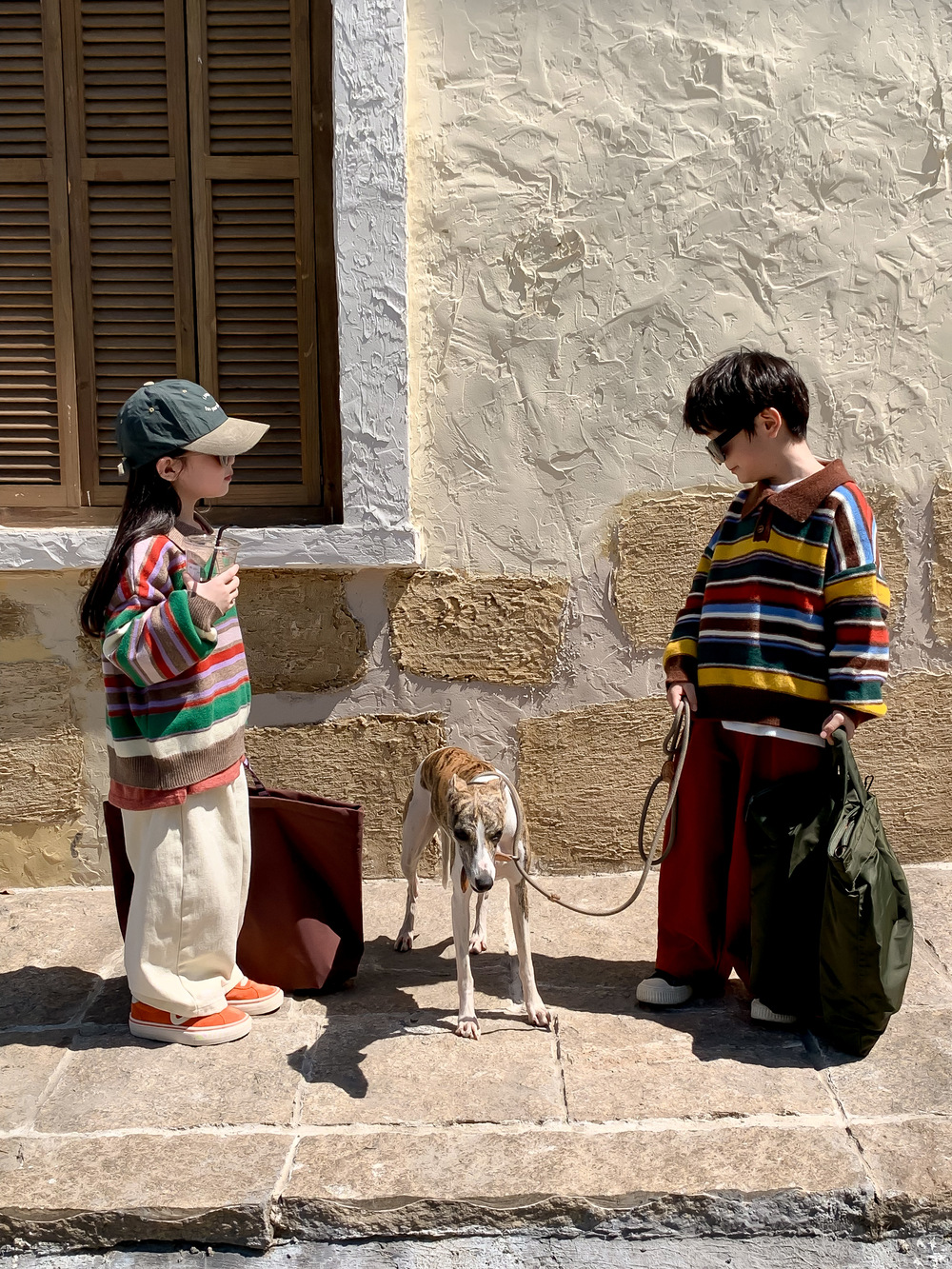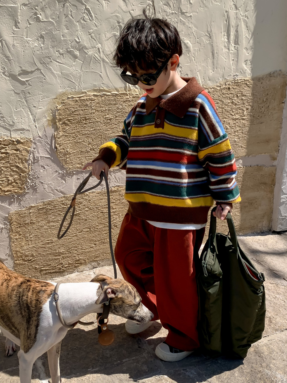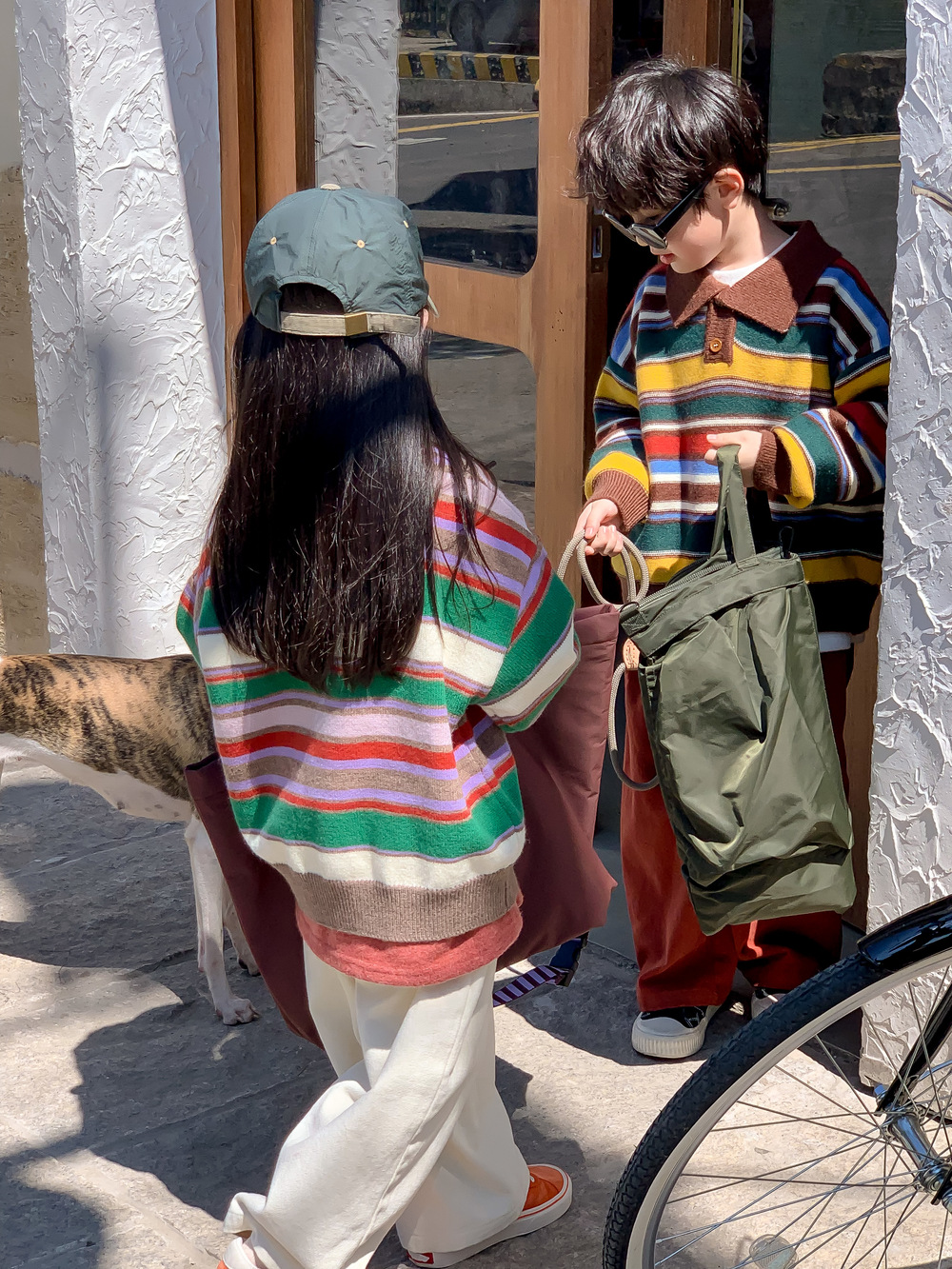 아동용 스웨터 2025 가을 남녀 아동용 카라 스트라이프 니트 상의 어린이 무지개 풀오버 중소 아동용스토어 가기