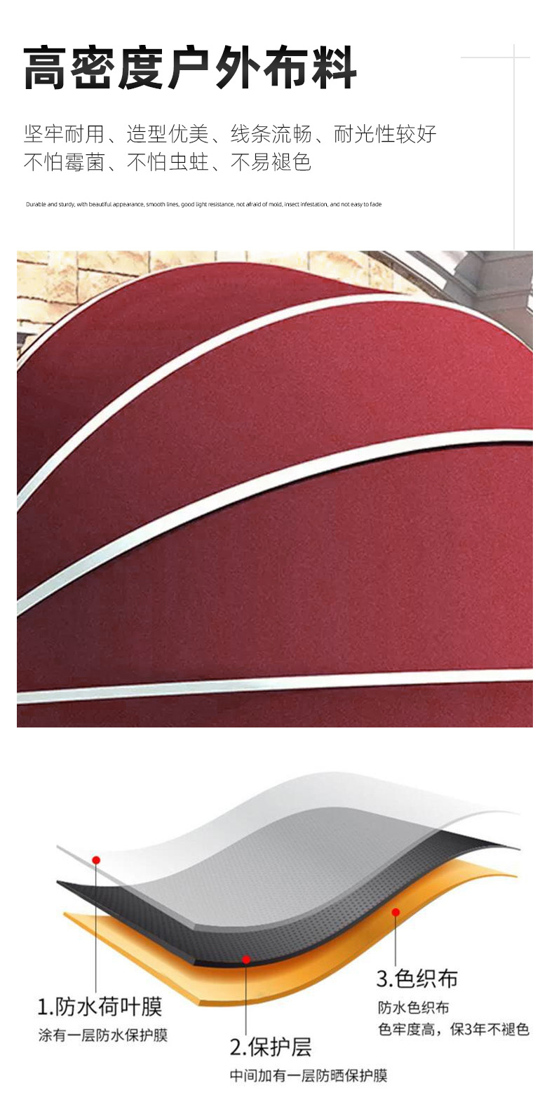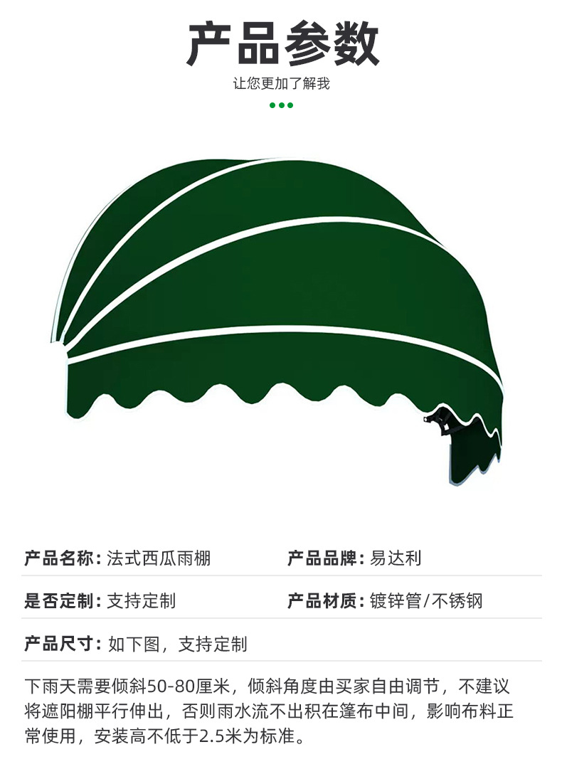 사다리꼴 고정 상점 접히는 반원형 수박 캐노피 창 캐노피 프랑스 곡선 캐노피 문 머리 장식스토어 가기