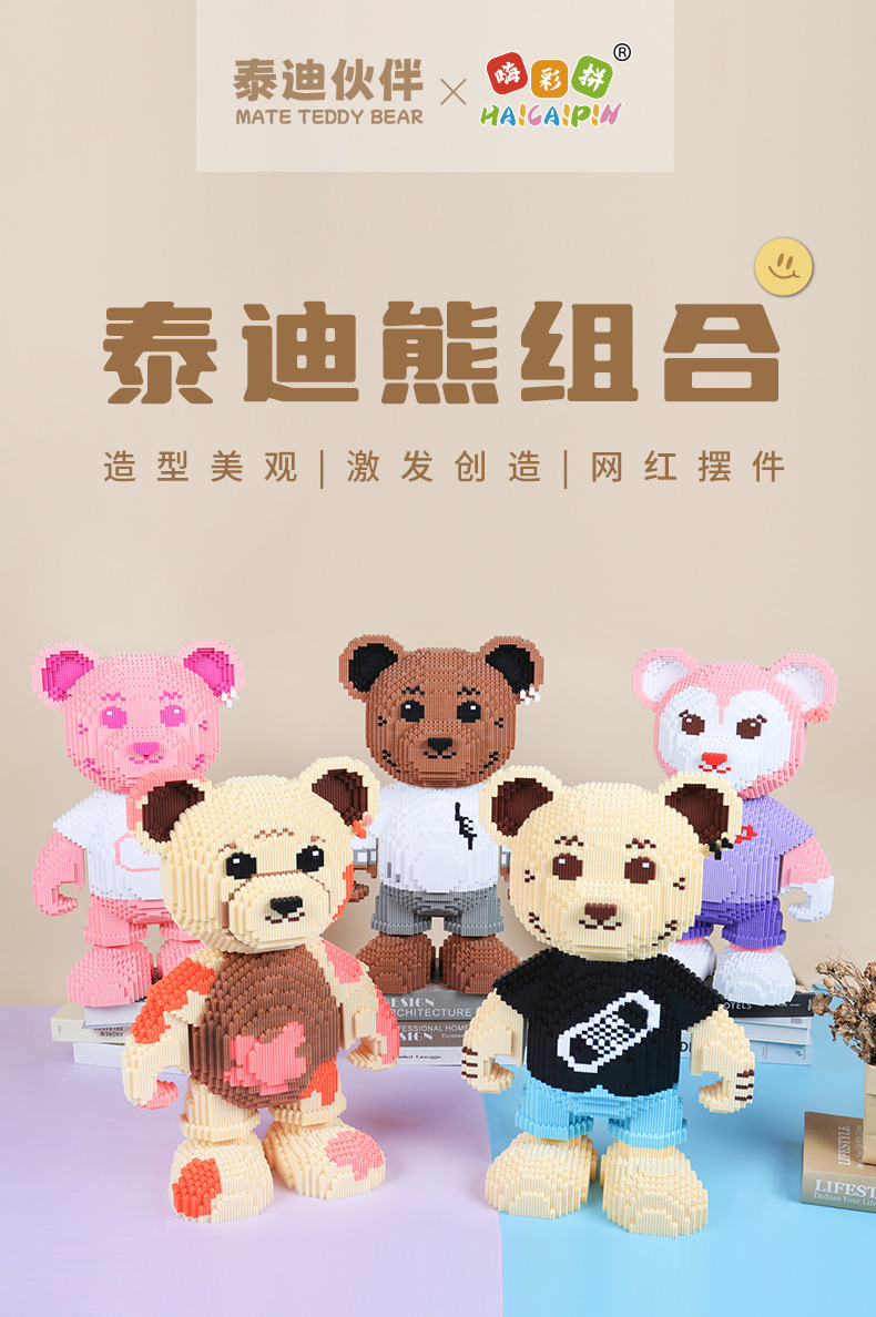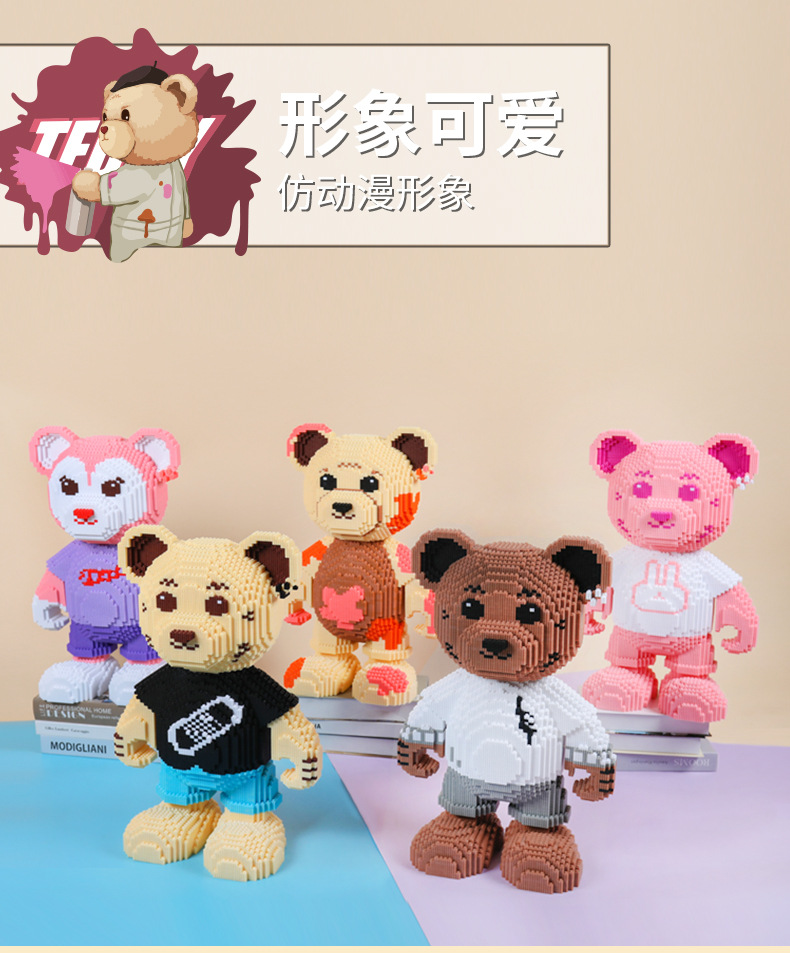 퍼즐 빌딩 블록 곰 부족 테디 베어 큰 빌딩 블록 조립 장난감 도매 지원 머리카락 세대스토어 가기