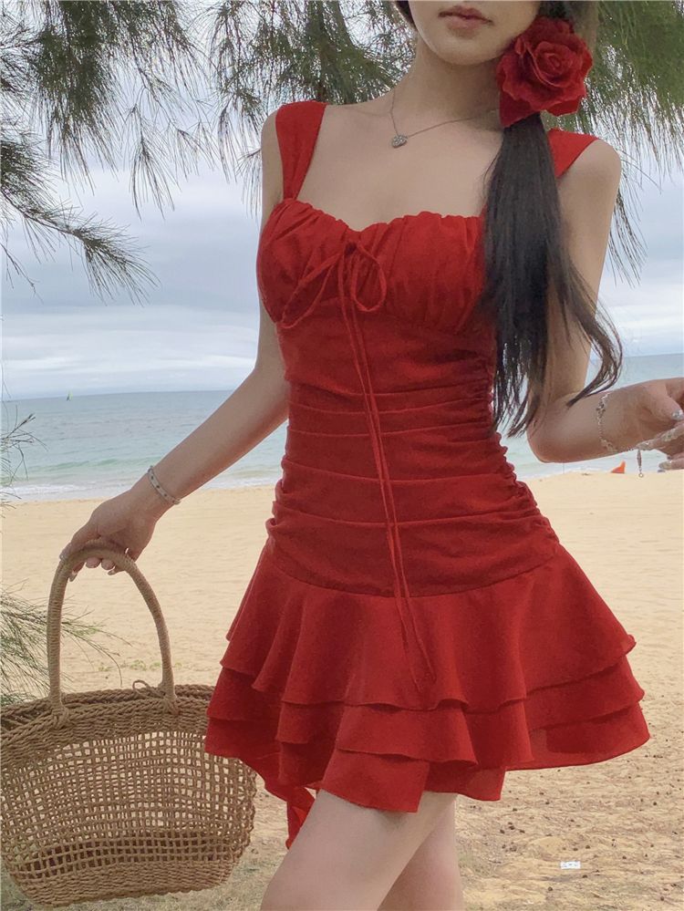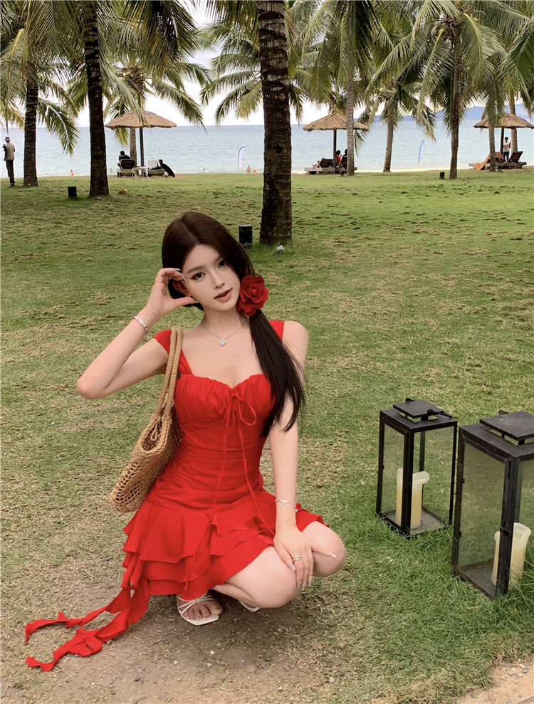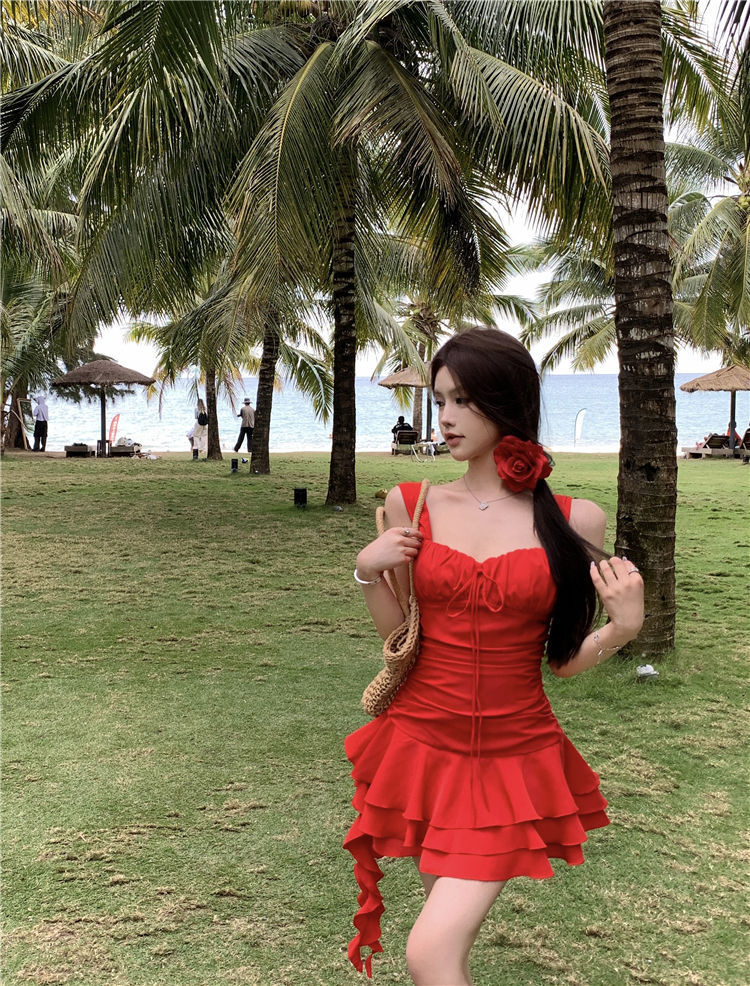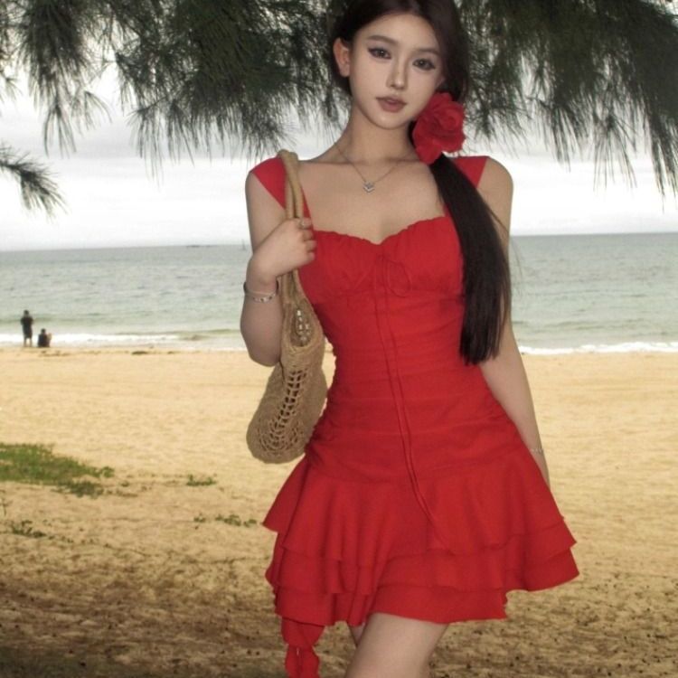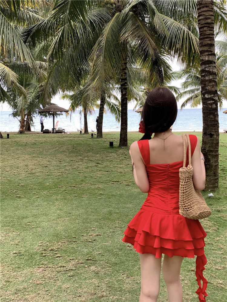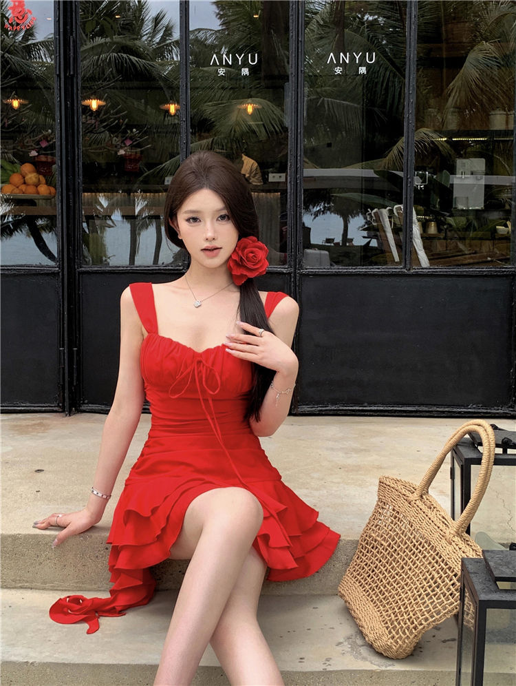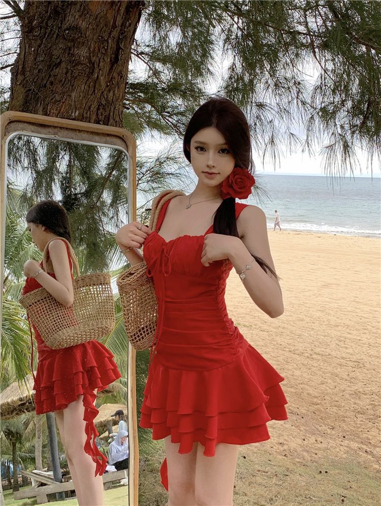 수영복 여성의 2024 새로운 원피스 스커트 스타일 작은 하이 엔드 센스 보수적 인 살 커버 뚱뚱한 소녀 해변 휴가스토어 가기