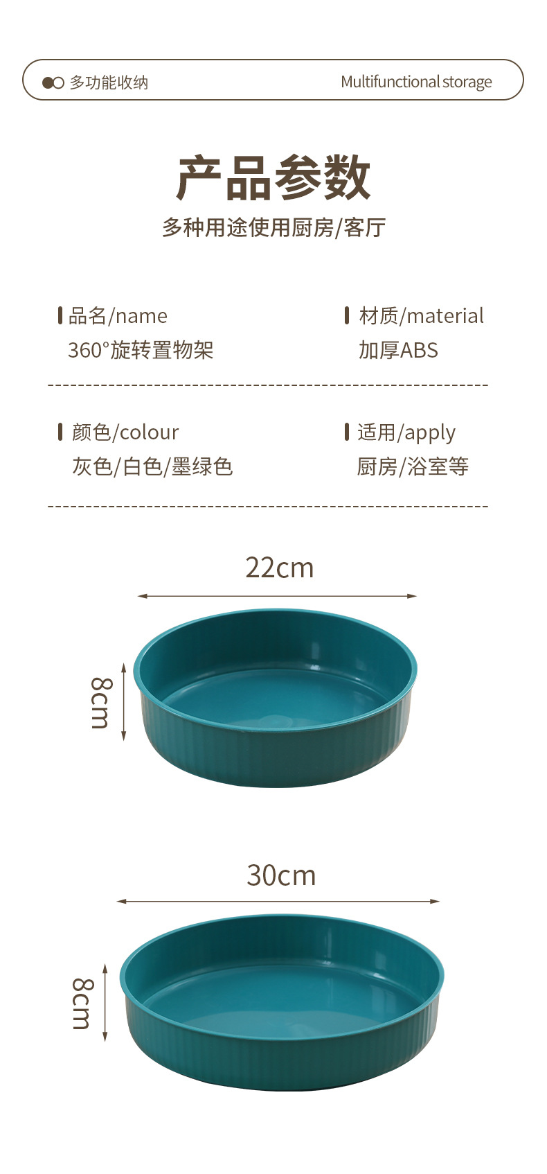 • 로타리 조미료 상자 22cm (중간) 다크 그린