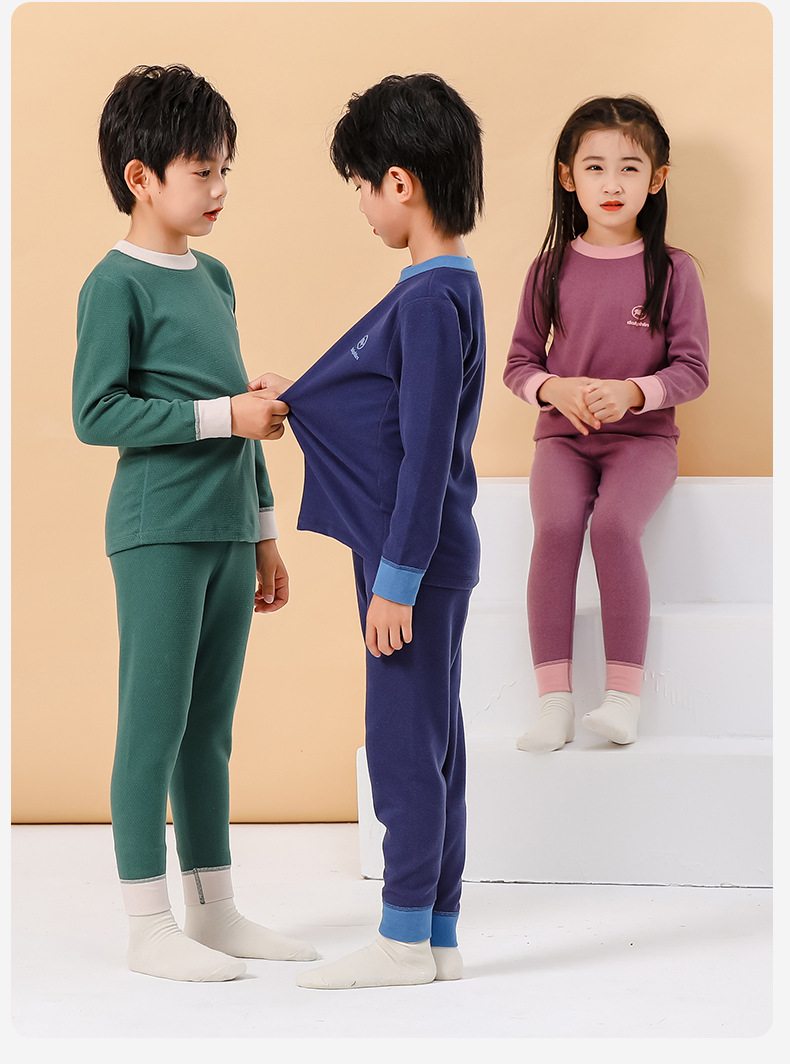 어린이 속옷 세트 남학생과 여학생 열 속옷 10 대 마름모 벨벳 통기성 가을 옷과 바지 세트스토어 가기