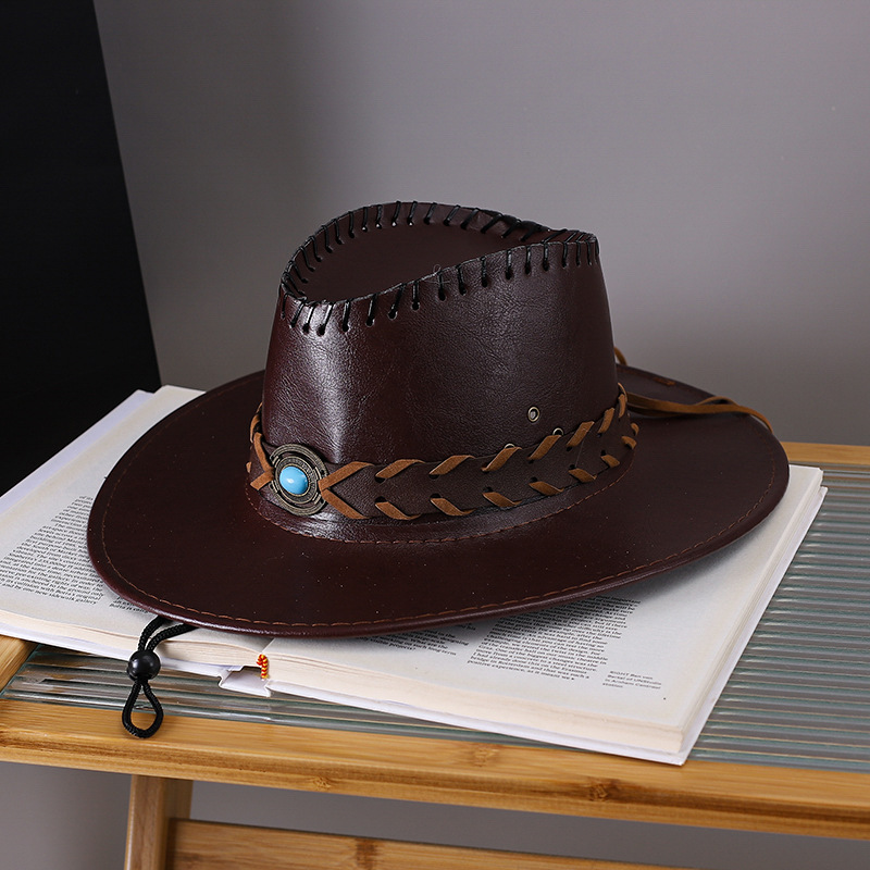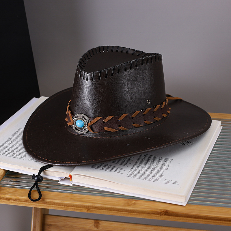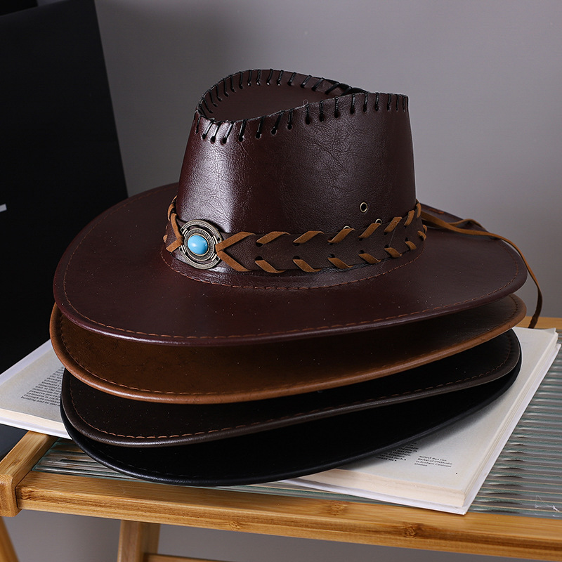 국경 간 새로운 서부 카우보이 모자 여성의 대형 브림 태양 모자 야외 등산 재즈 모자 남성 퍼트 가죽 기사 모자
