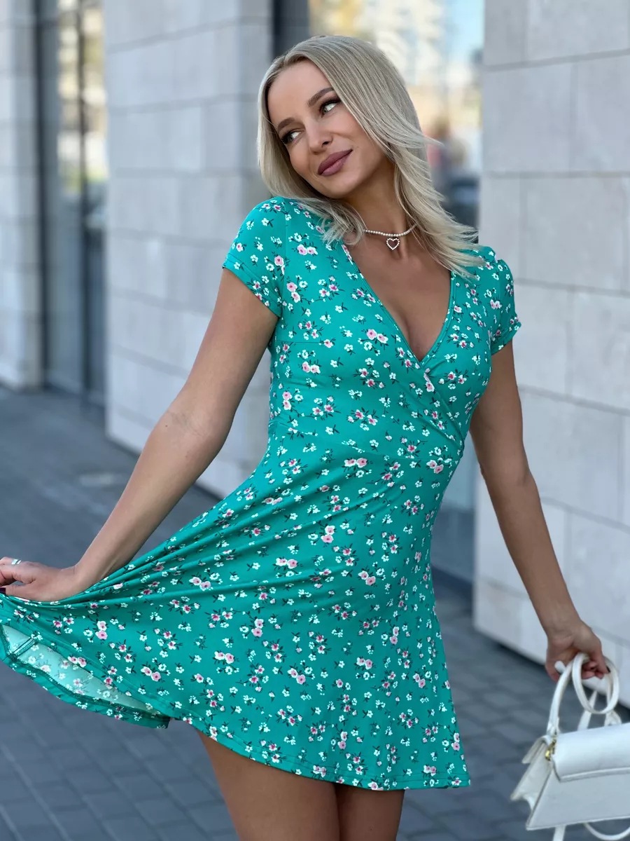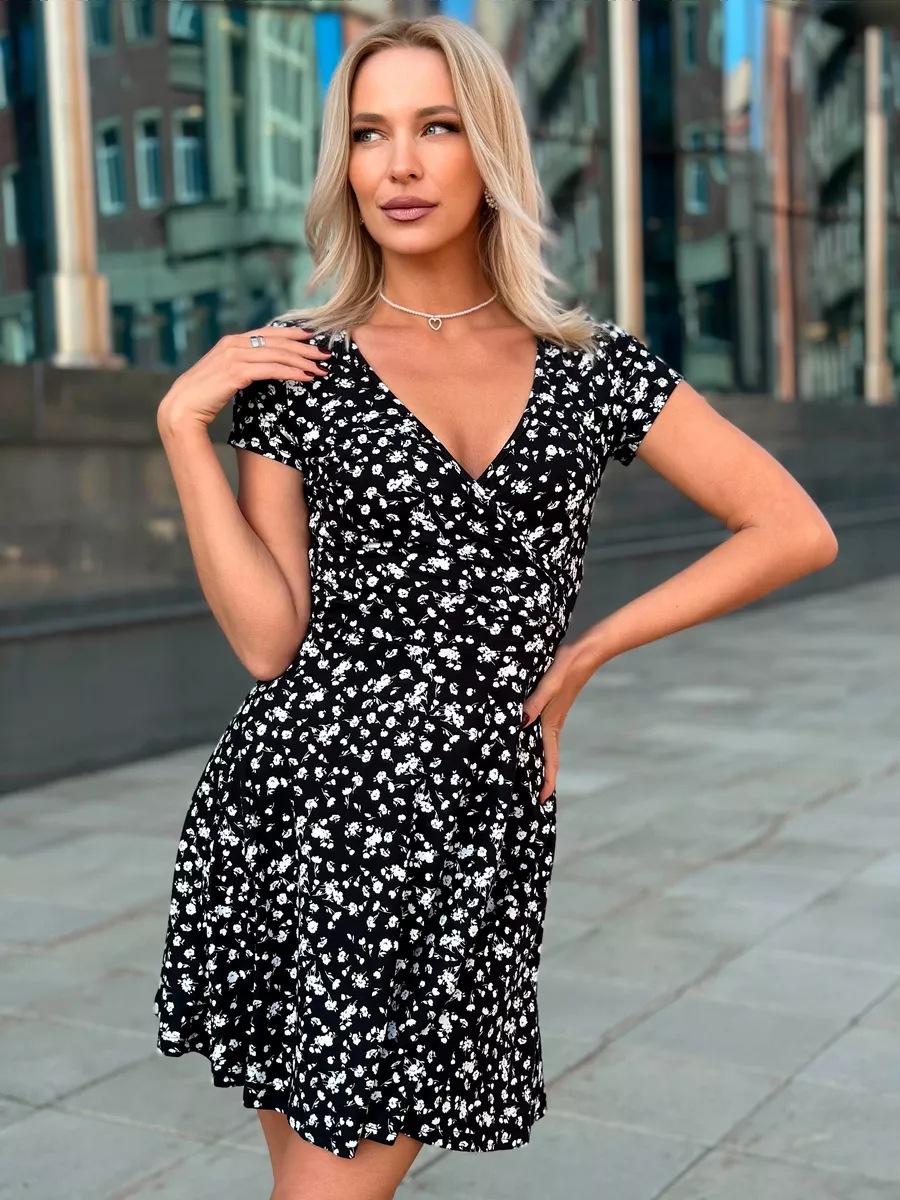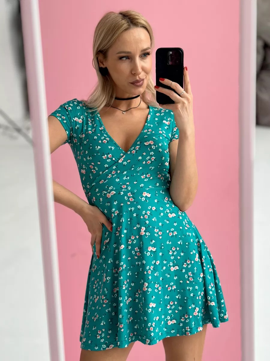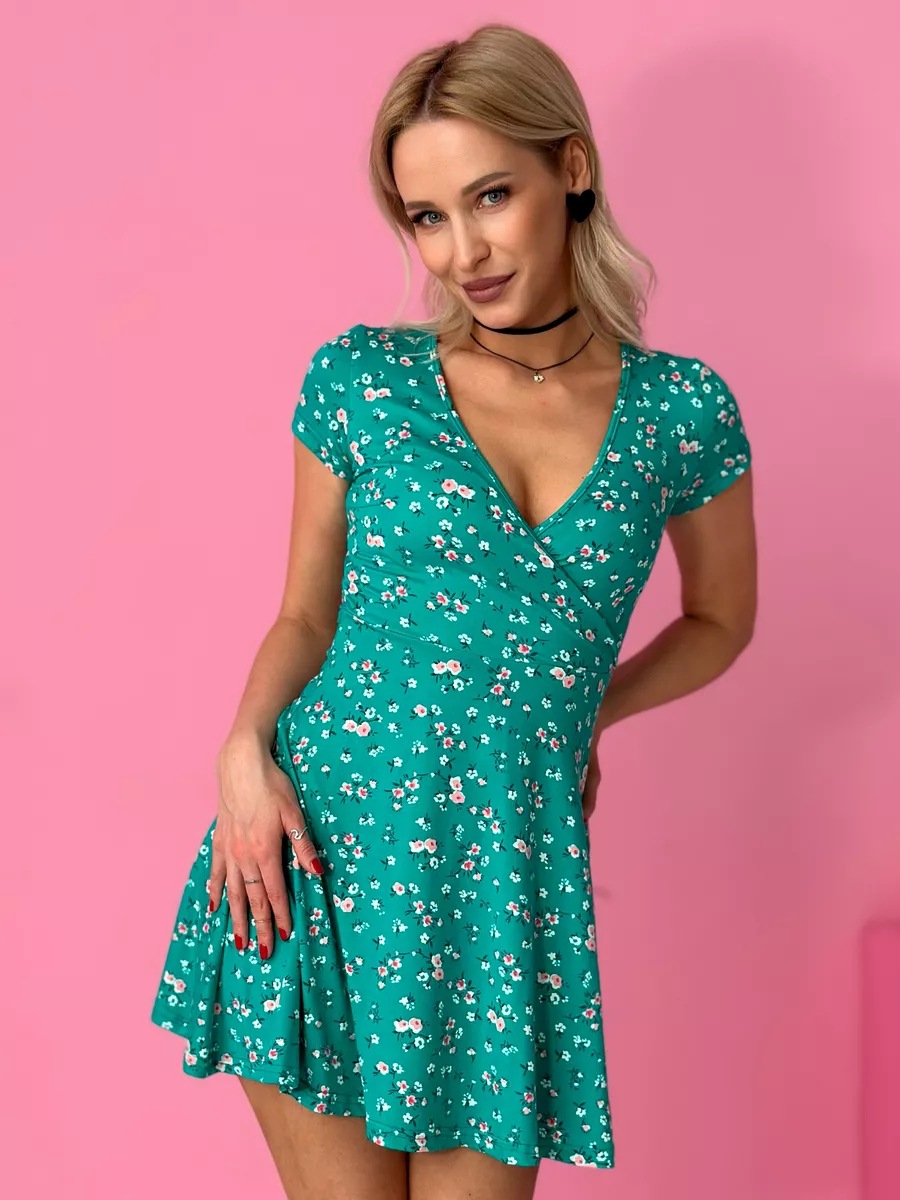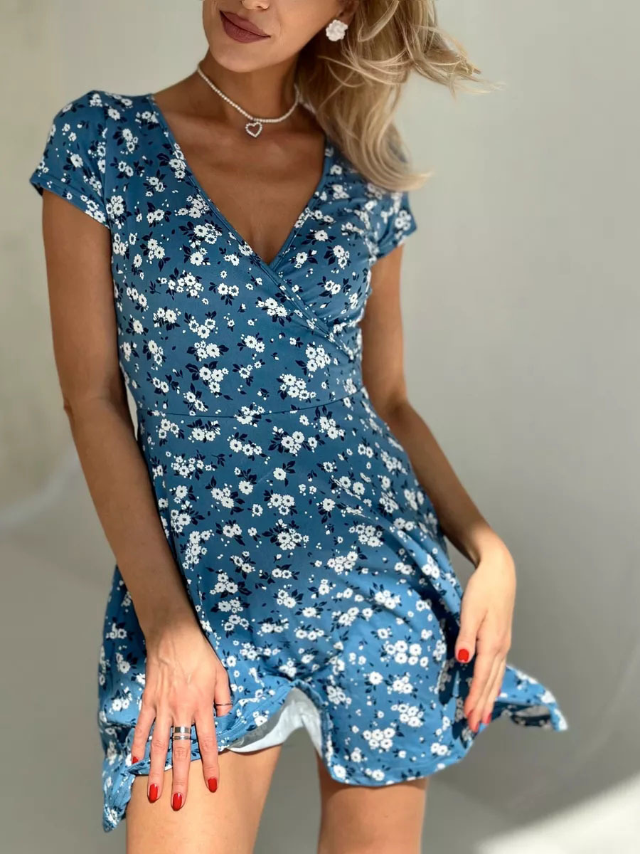 유럽과 미국의 대외 무역 여성 의류 도매 아마존 여름 새로운 패션 섹시한 V 넥 짧은 소매 꽃 니트 원피스스토어 가기
