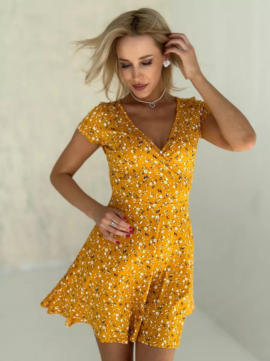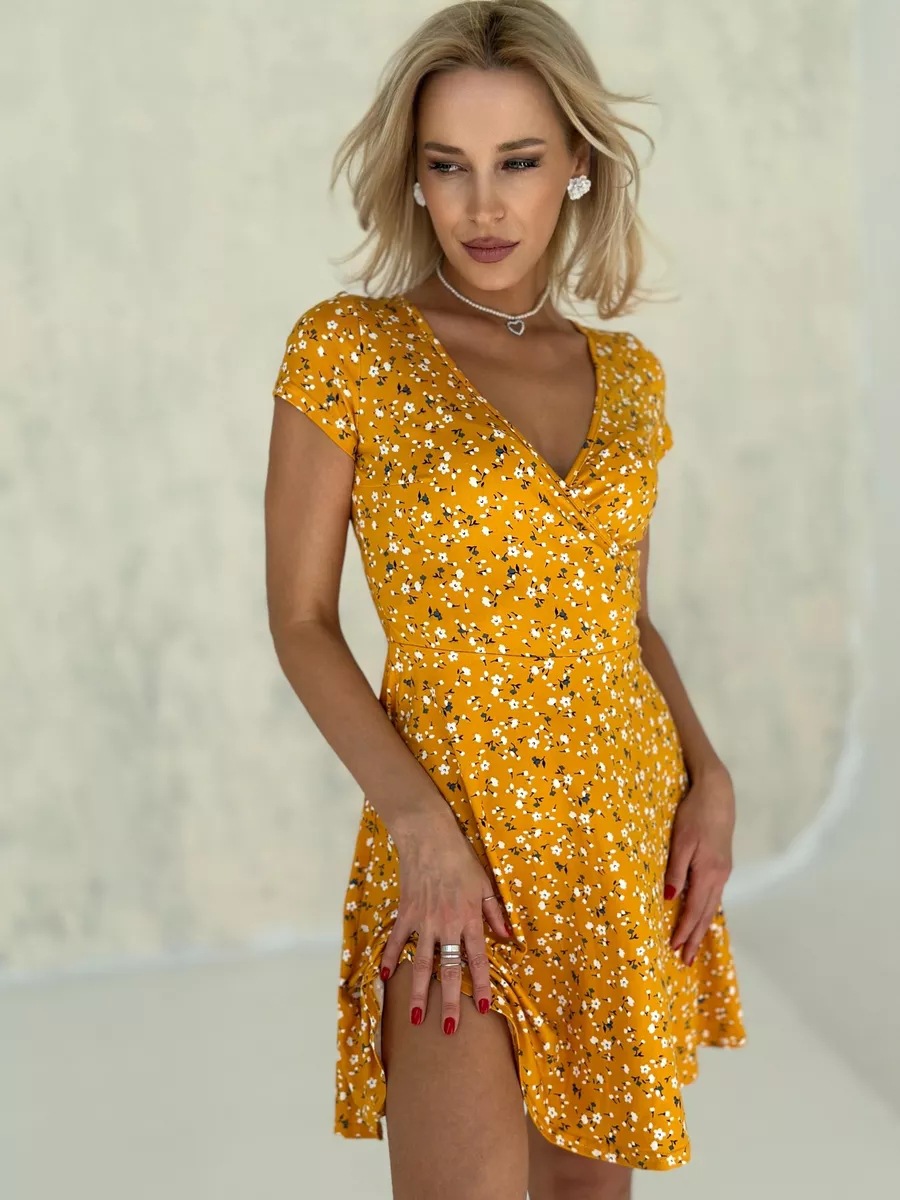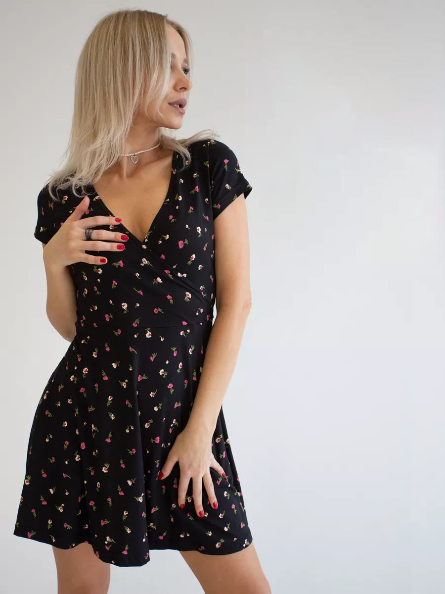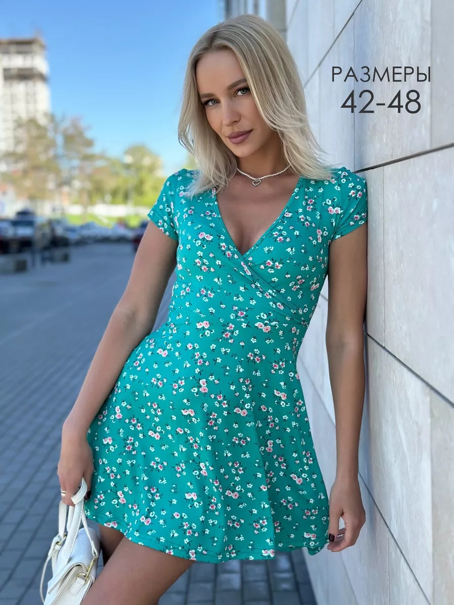 유럽과 미국의 대외 무역 여성 의류 도매 아마존 여름 새로운 패션 섹시한 V 넥 짧은 소매 꽃 니트 원피스스토어 가기