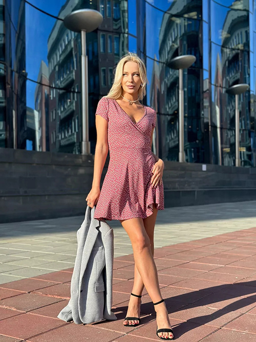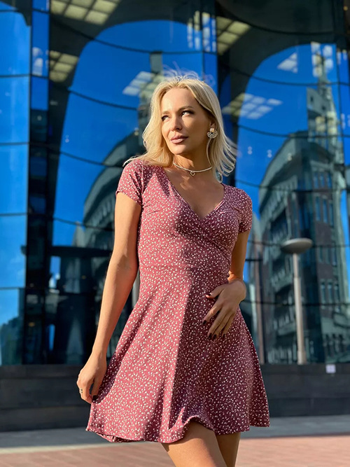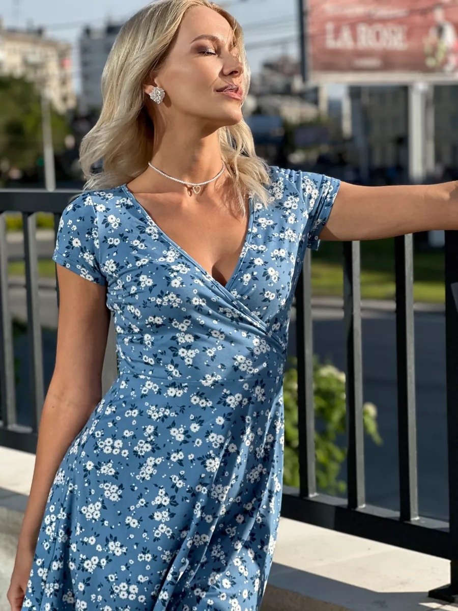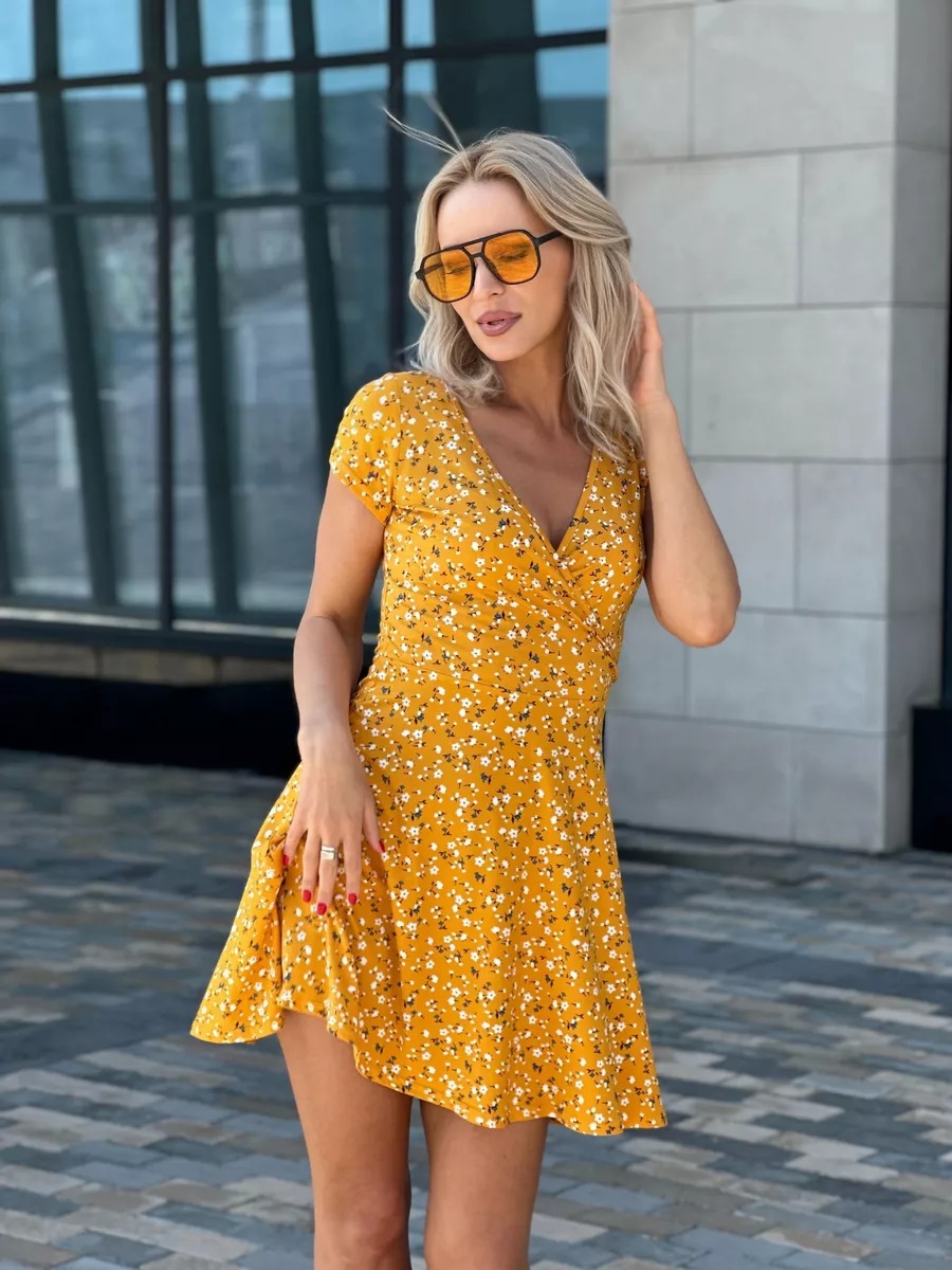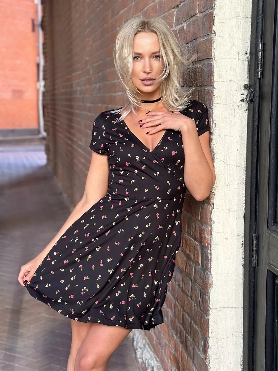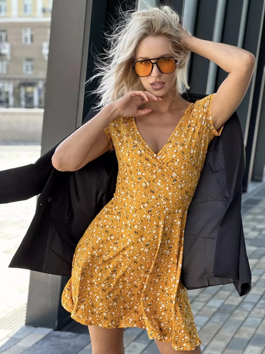 유럽과 미국의 대외 무역 여성 의류 도매 아마존 여름 새로운 패션 섹시한 V 넥 짧은 소매 꽃 니트 원피스스토어 가기