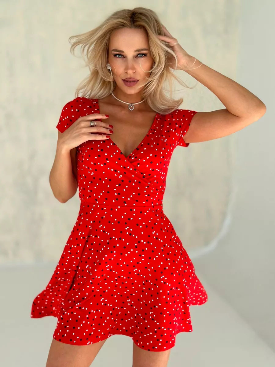 유럽과 미국의 대외 무역 여성 의류 도매 아마존 여름 새로운 패션 섹시한 V 넥 짧은 소매 꽃 니트 원피스