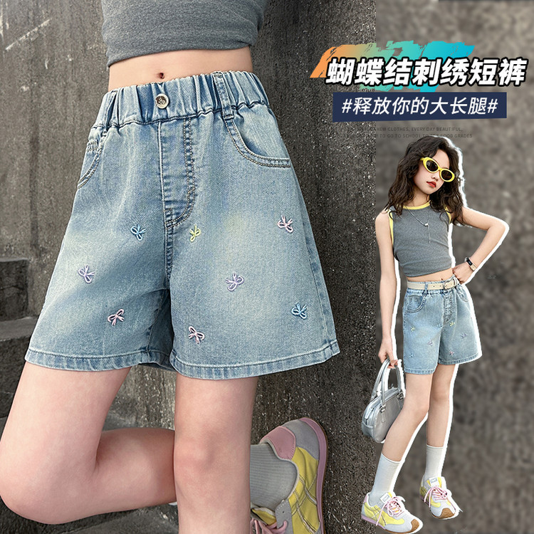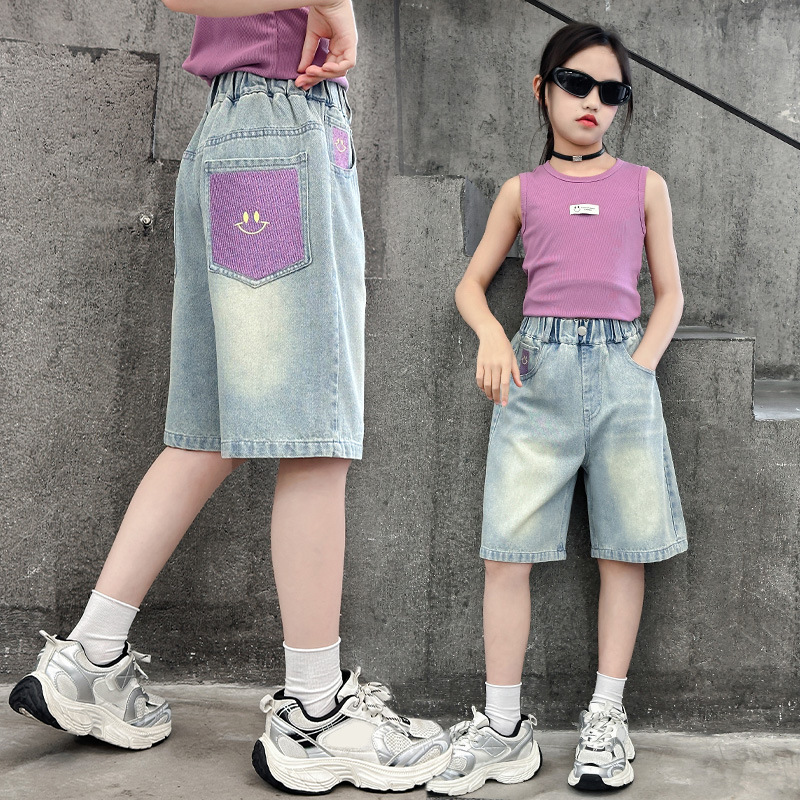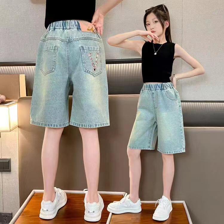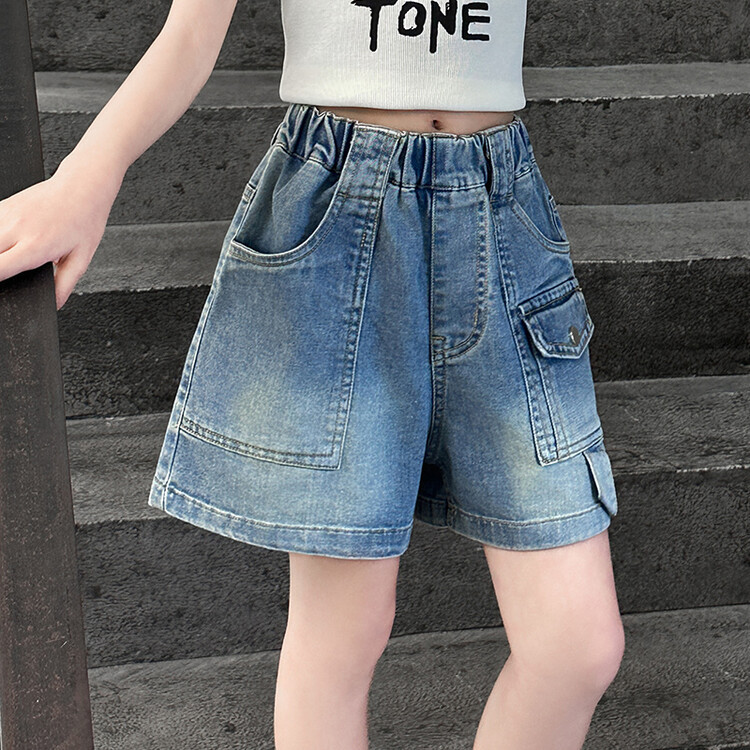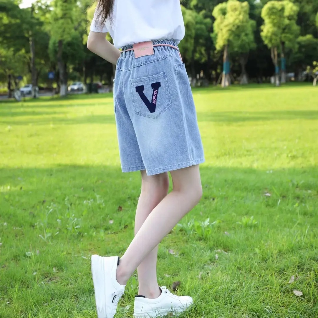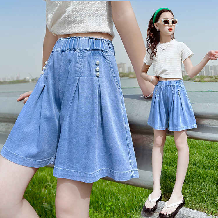 2025 소녀 데님 반바지 텐셀 반바지 여름 얇은 새 스타일 큰 어린이 반바지 소녀 바지스토어 가기