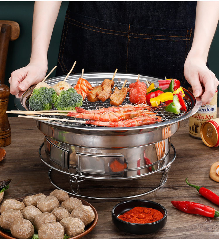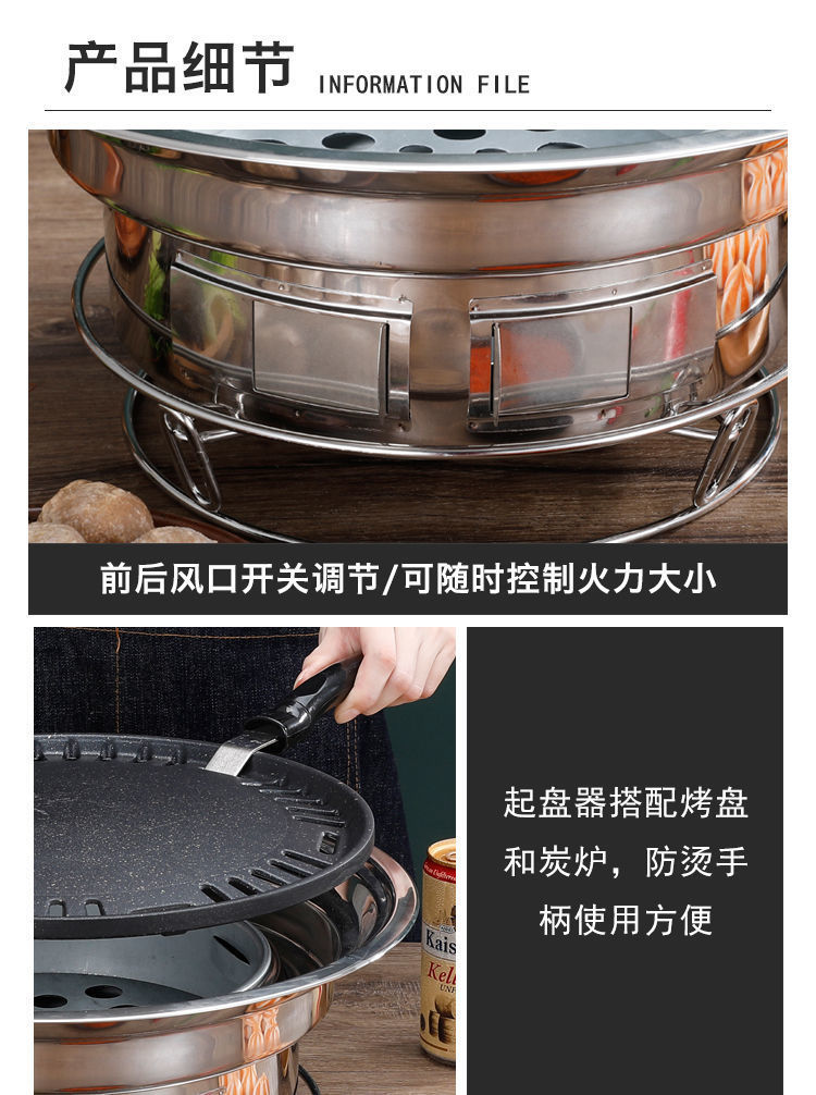 한국식 탄소 그릴 가정용 일본식 섬유 바베큐 라운드 바베큐 스토브 숯 그릴 냄비 숯 그릴 바베큐 접시스토어 가기