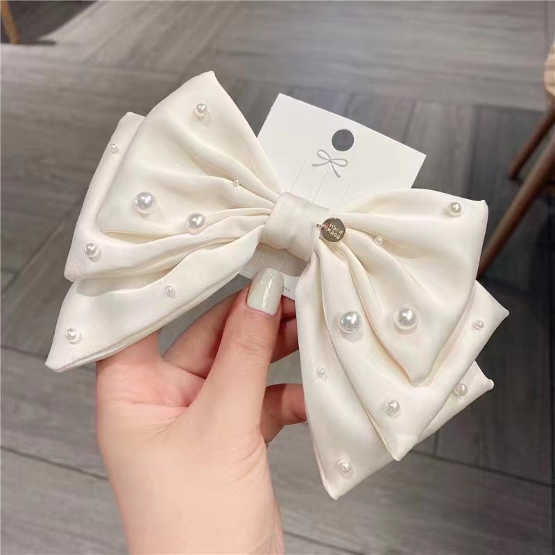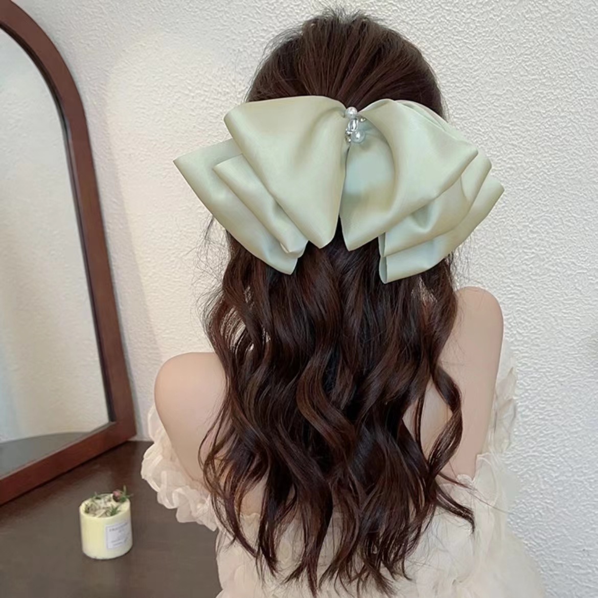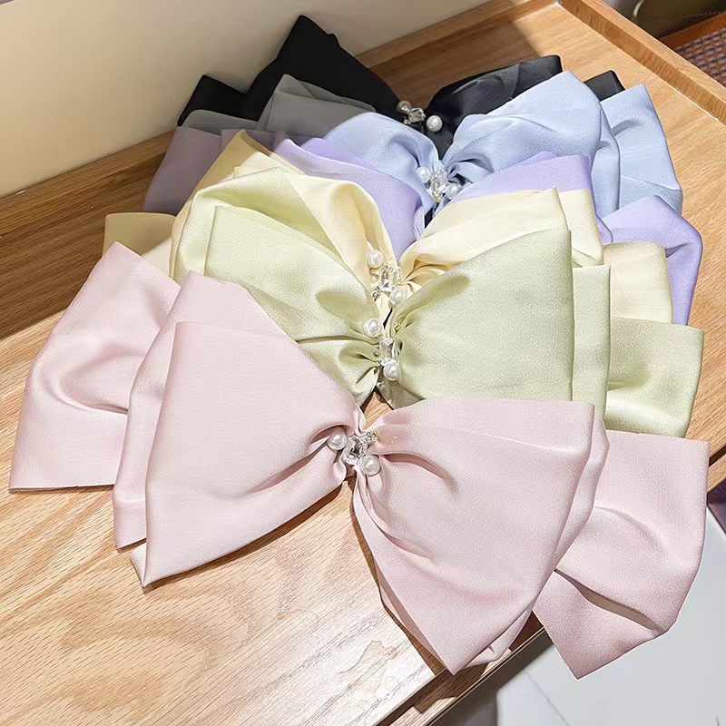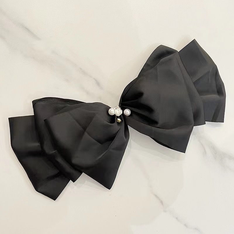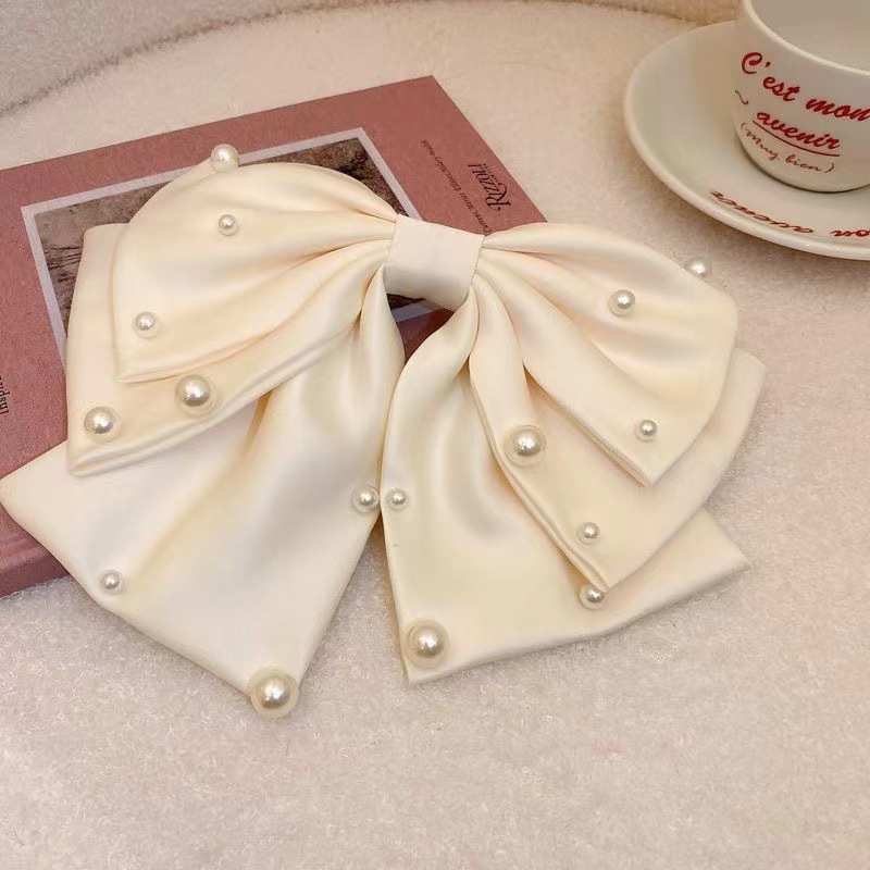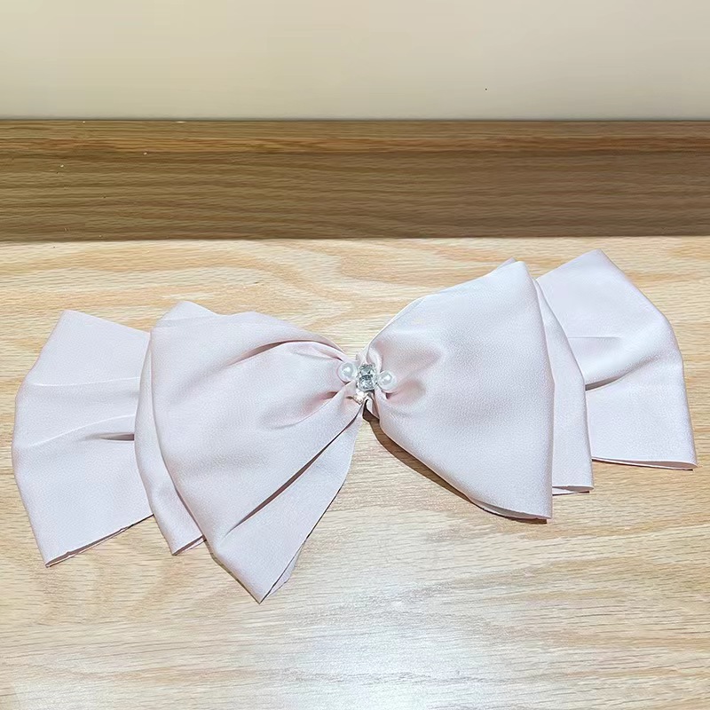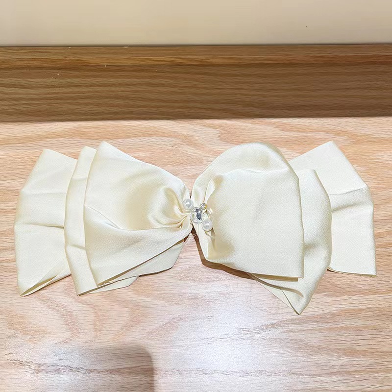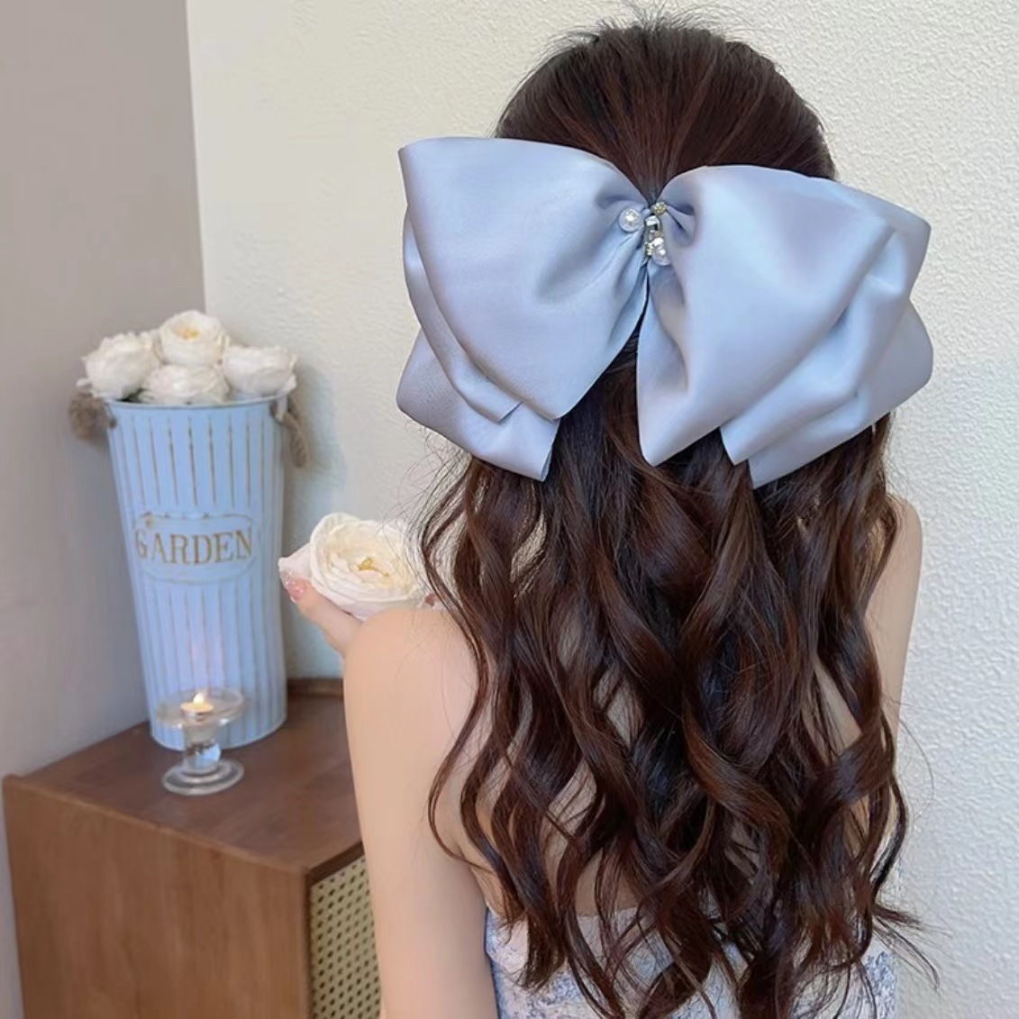 대형 3 층 구름 새틴 프렌치 활 머리핀 라인스톤 펄 프리미엄 스프링 클립 뒤 머리 머리 액세서리