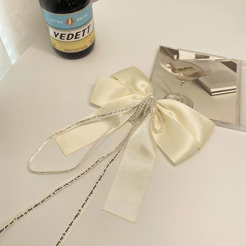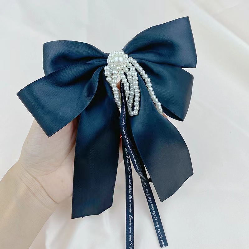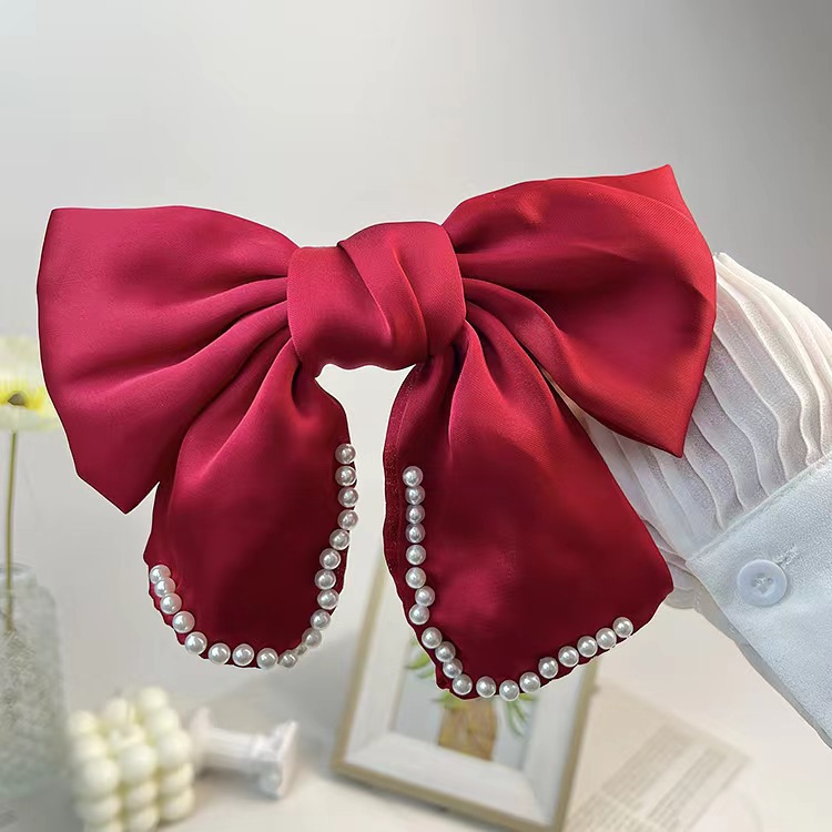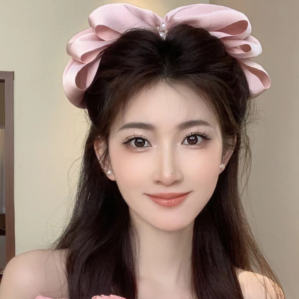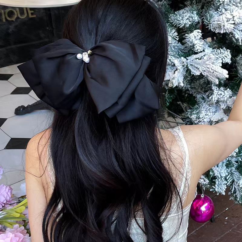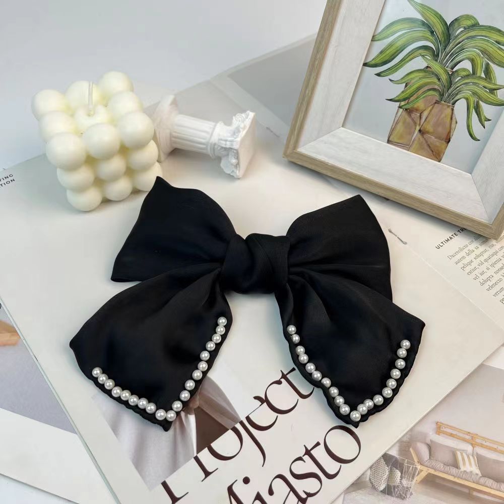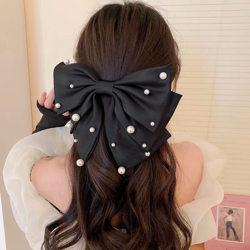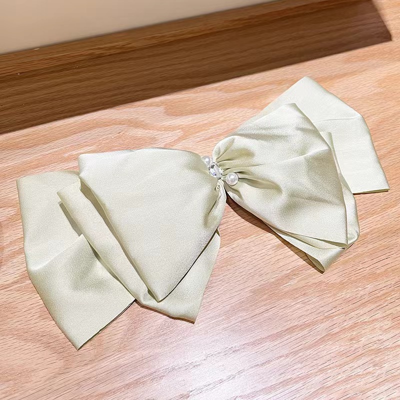대형 3 층 구름 새틴 프렌치 활 머리핀 라인스톤 펄 프리미엄 스프링 클립 뒤 머리 머리 액세서리