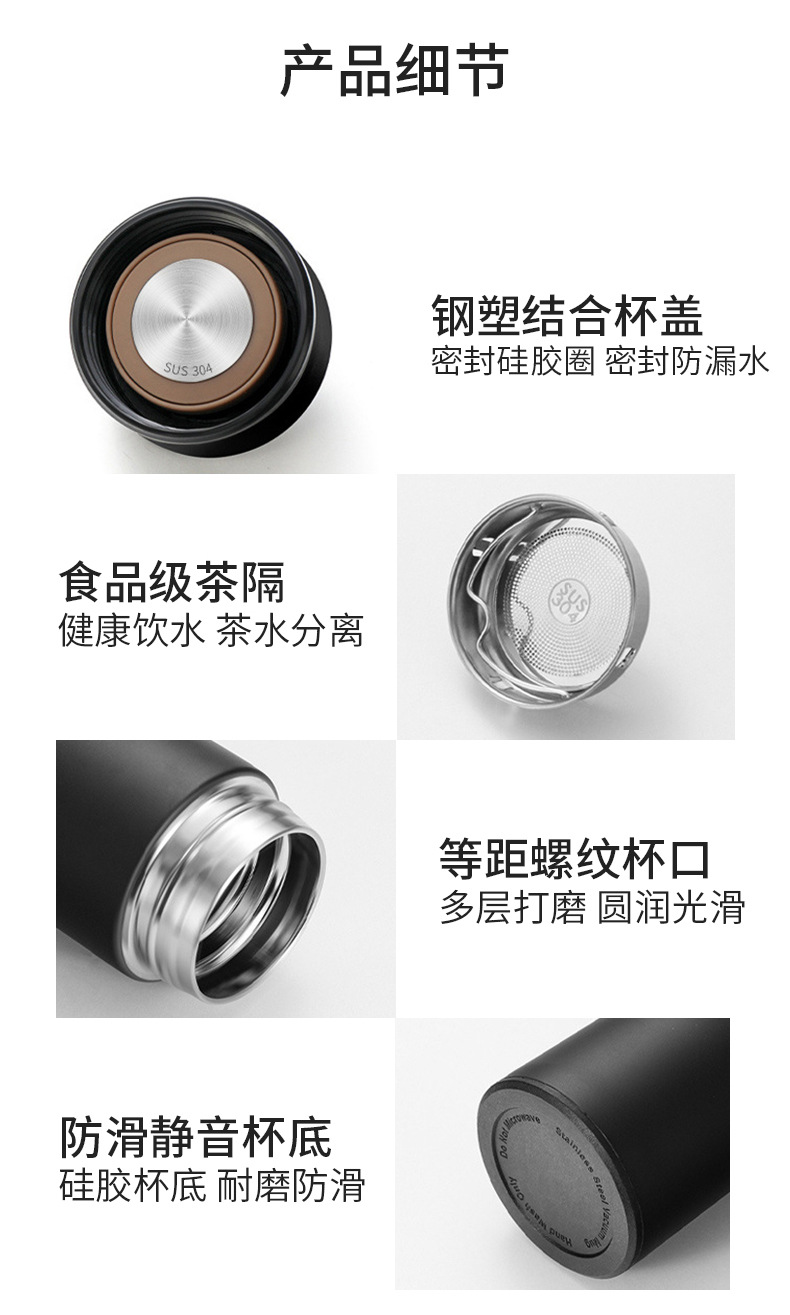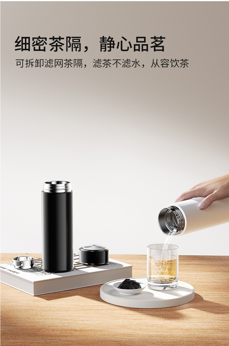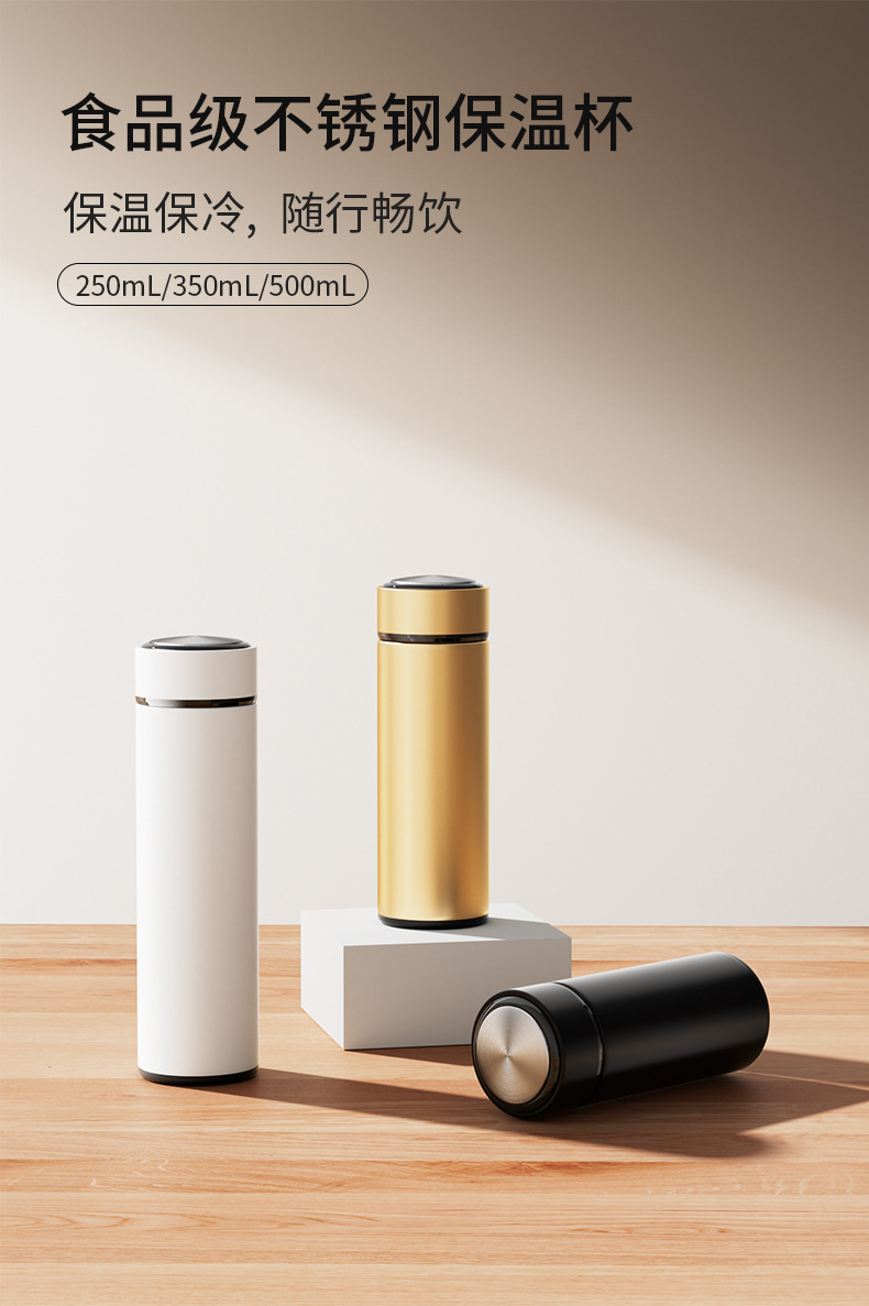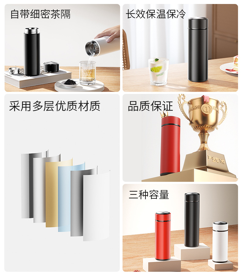 지능형 온도 디스플레이 304 스테인레스 스틸 진공 더블 레이어 보온병 컵 남성과 여성 차 물 분리 비즈니스 컵 도매 레터링