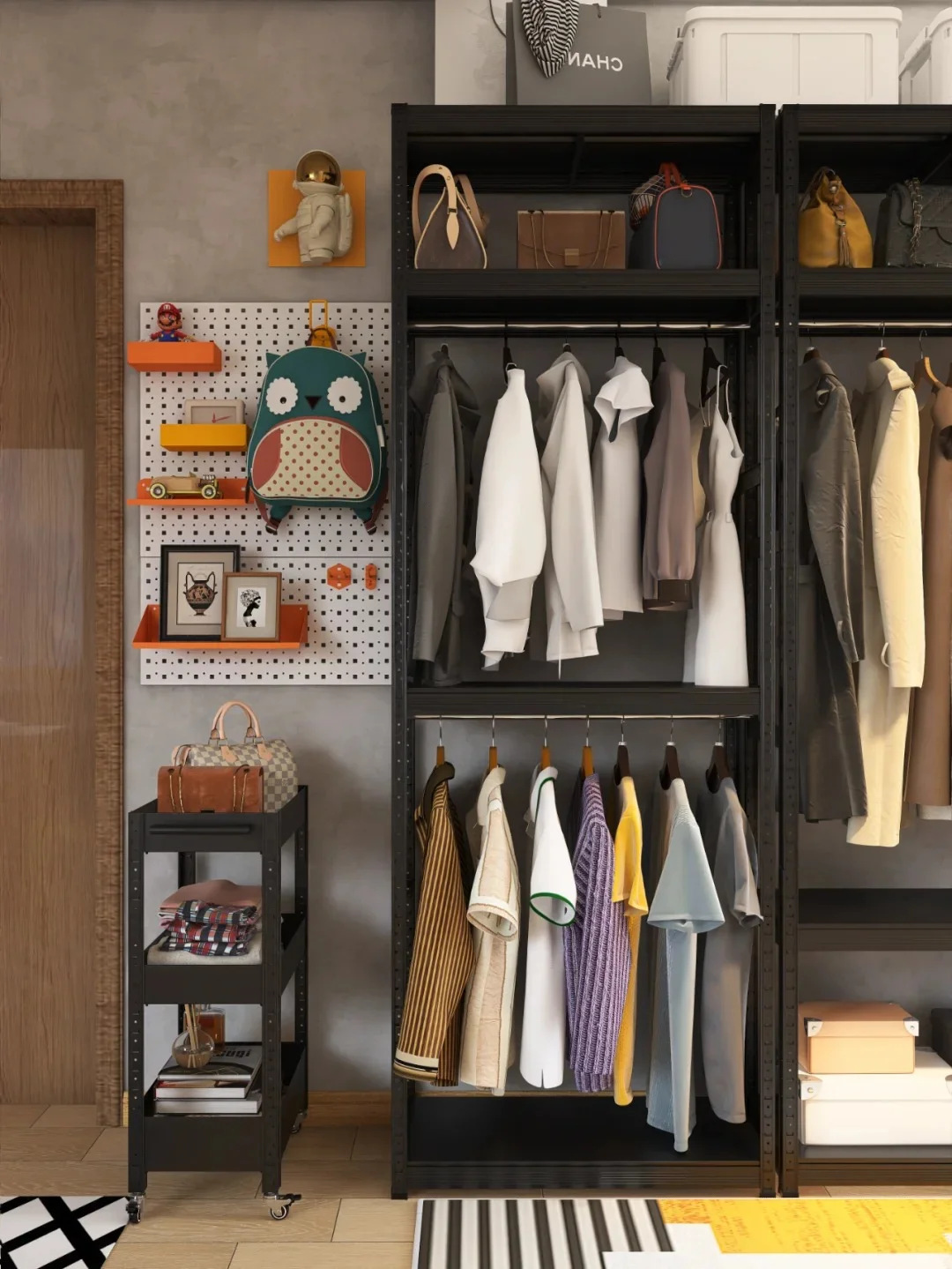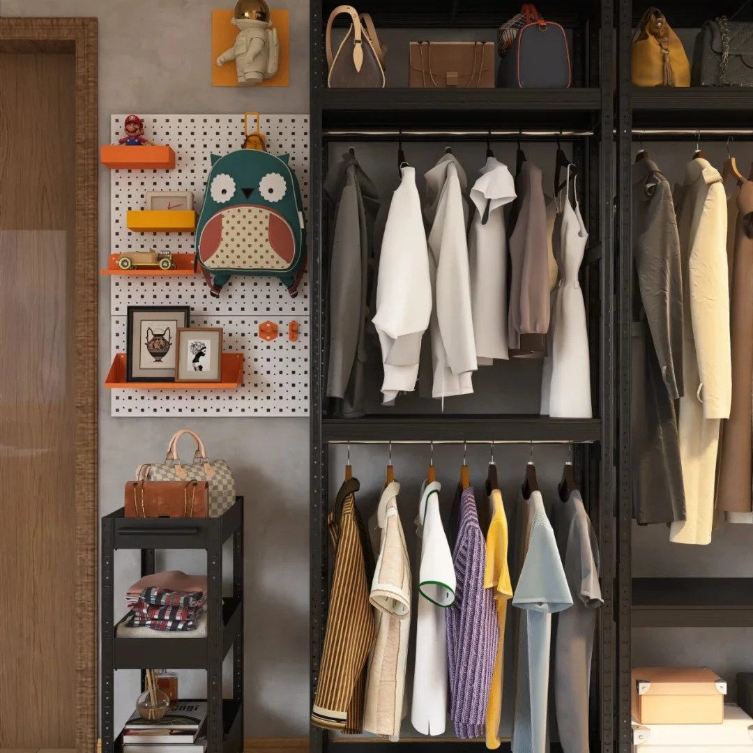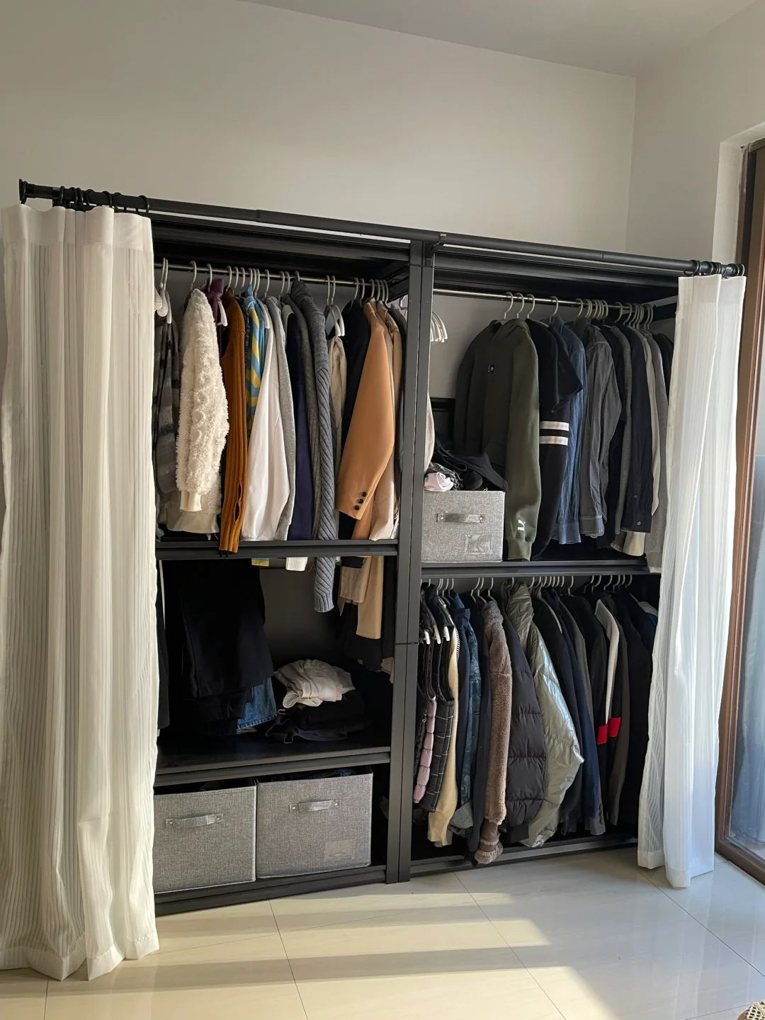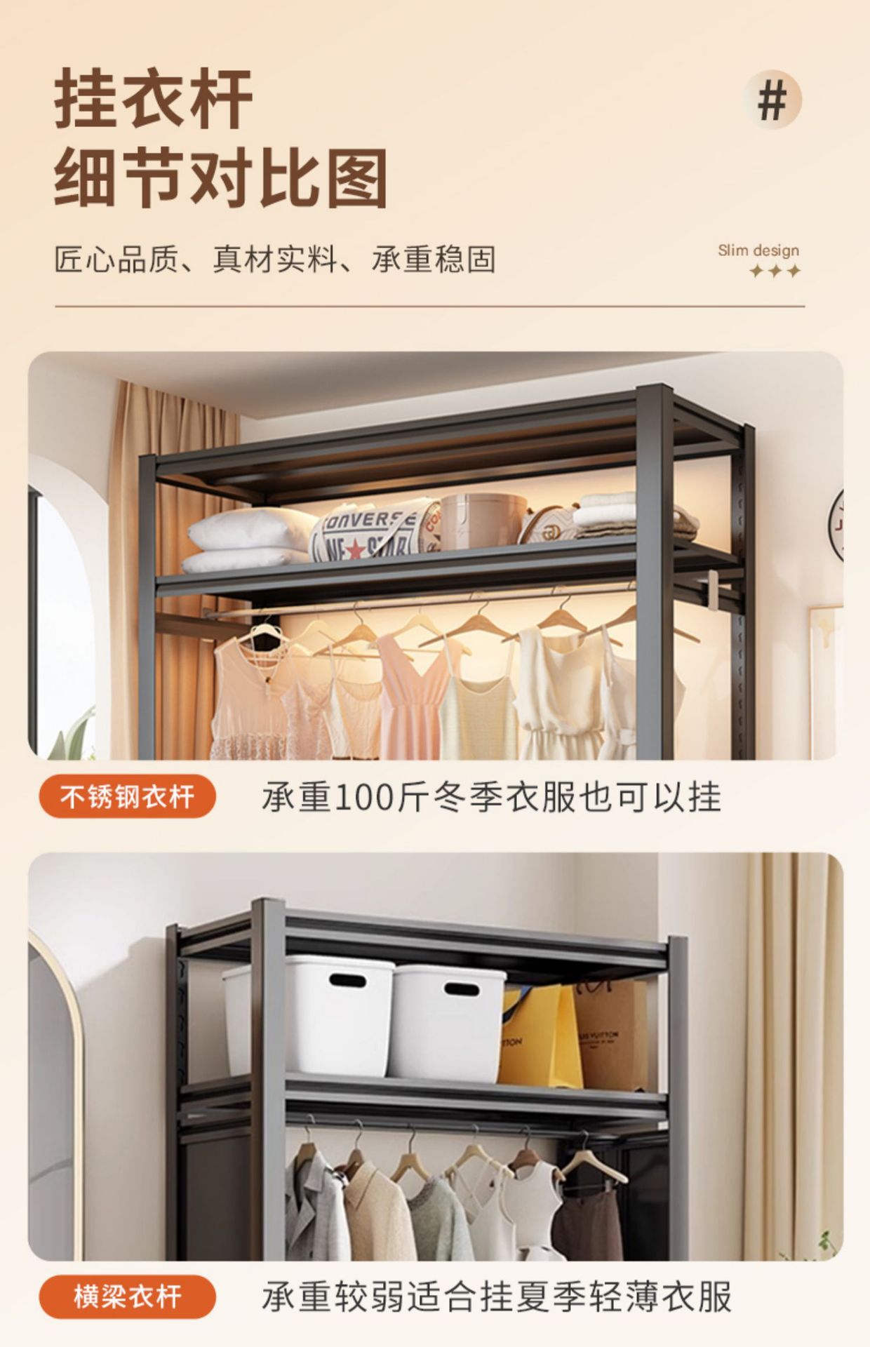 선반 DIY 간단한 옷장 오픈 앵글 강철 옷걸이 보관 랙 렌탈 룸 조립 금속 옷 후드 보관 랙