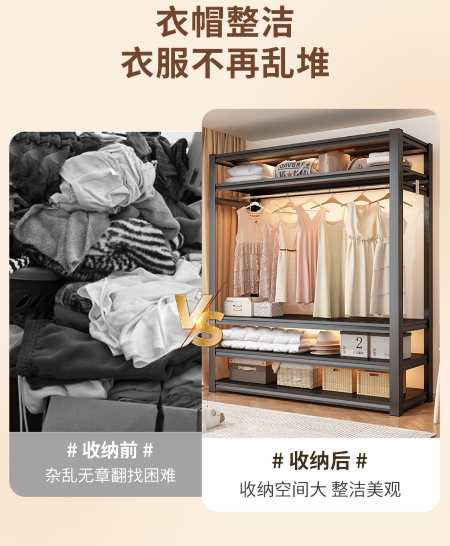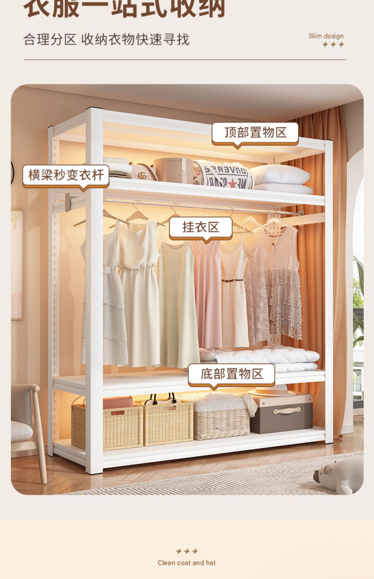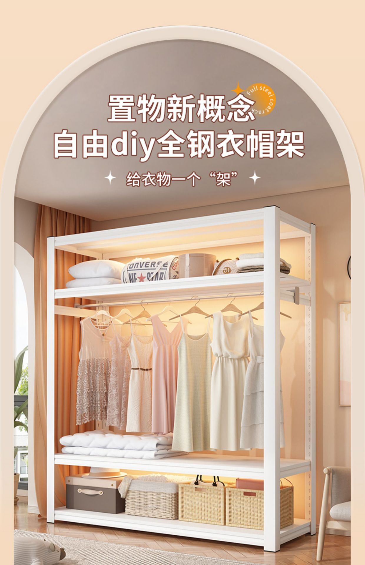 선반 DIY 간단한 옷장 오픈 앵글 강철 옷걸이 보관 랙 렌탈 룸 조립 금속 옷 후드 보관 랙스토어 가기