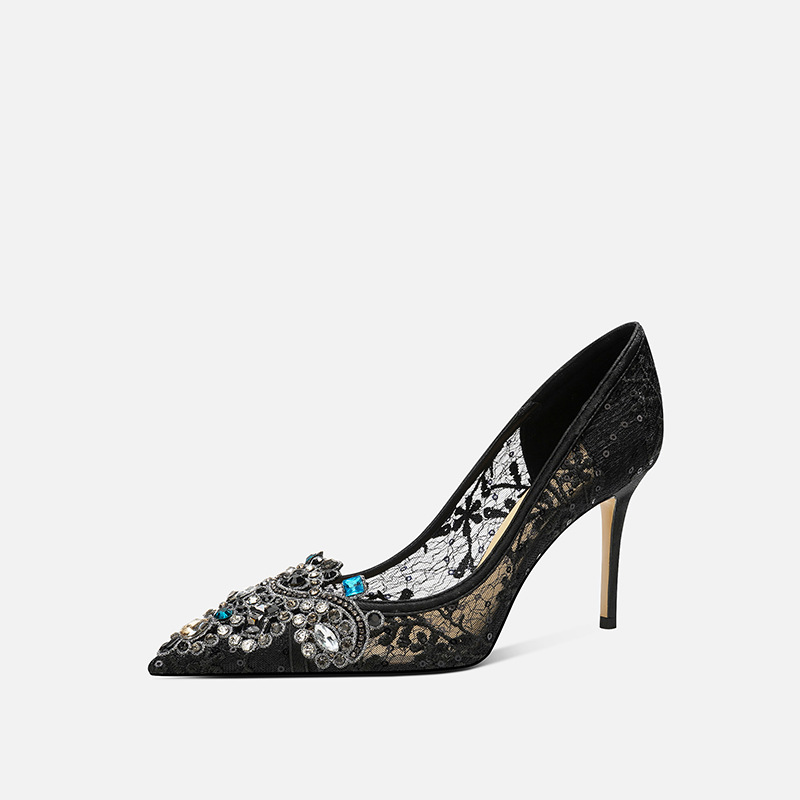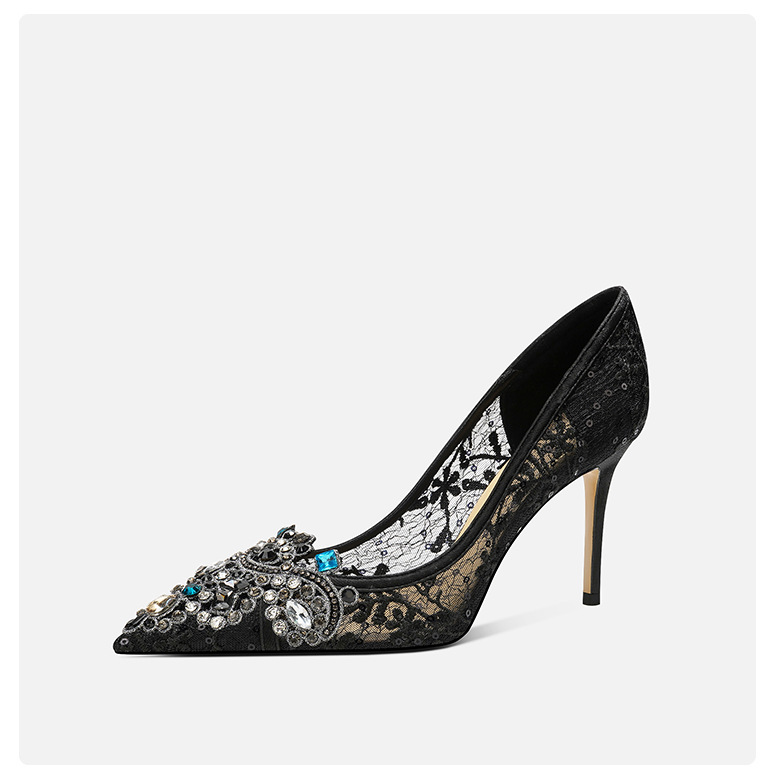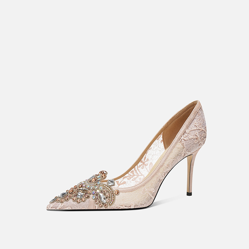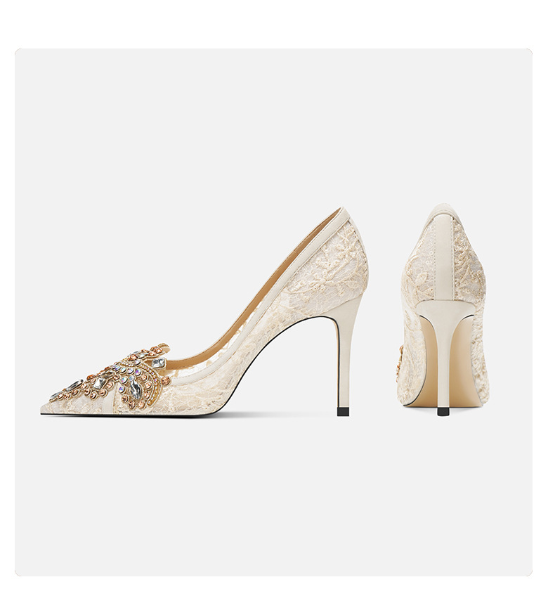 708-43 중국 웨딩 신발 헥시우 웨딩 원피스 투웨어 연회 크리스탈 하이힐 라인스톤 신부 메시 신발 양가죽스토어 가기