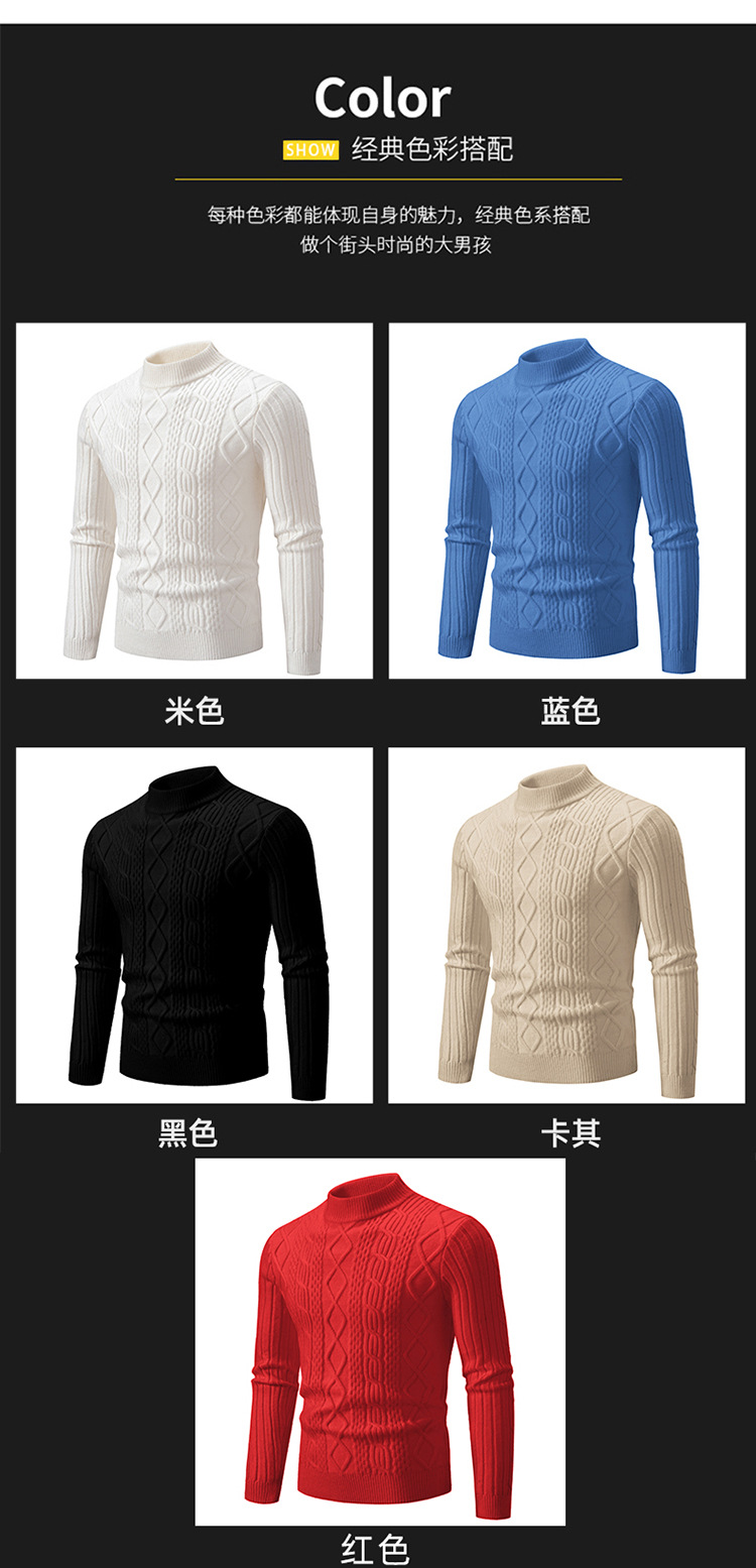 빈티지 심플 솔리드 컬러 하프 터틀넥 베이스 스웨터 남성 캐주얼 남성 가짜 양 하이 퀄리티 니트 스웨터스토어 가기