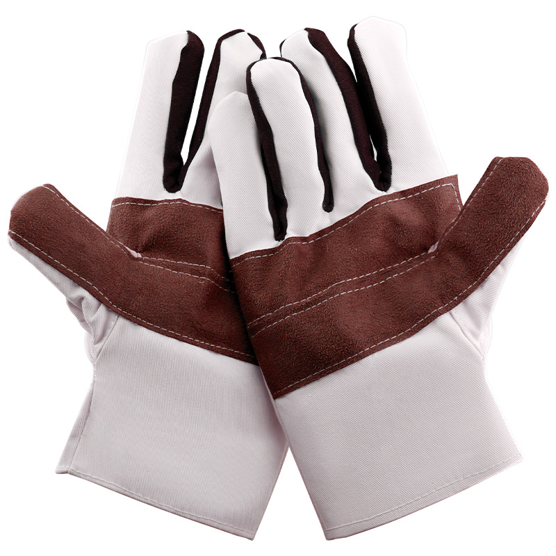 Xinggong 캔버스 장갑 가죽 천 내마모성 노동 보호 노동 보호 철도 장갑 10 팩 전기 용접 절단 두껍게스토어 가기