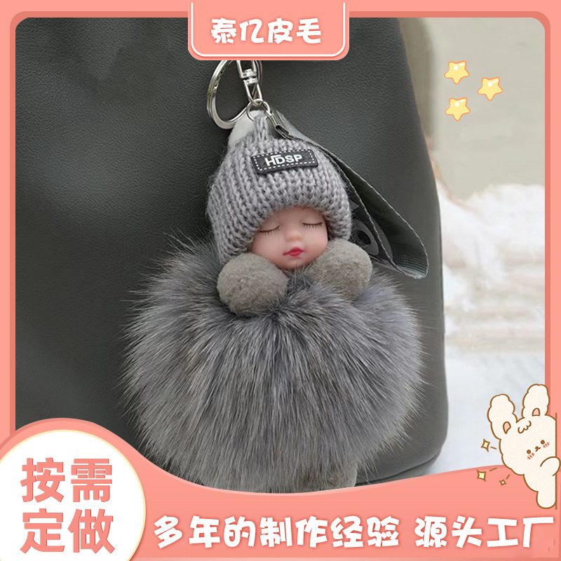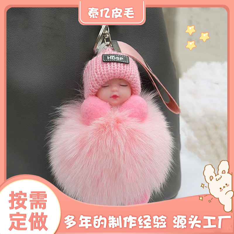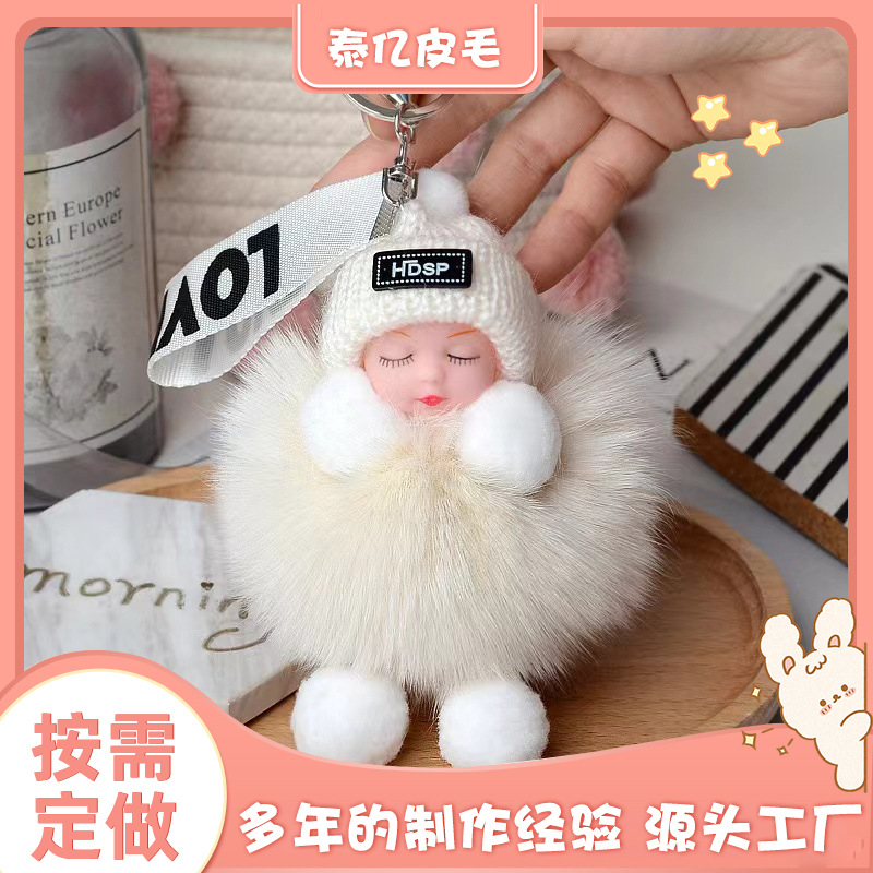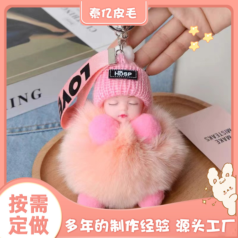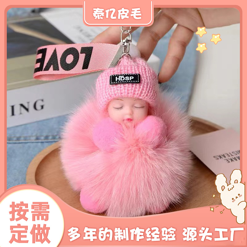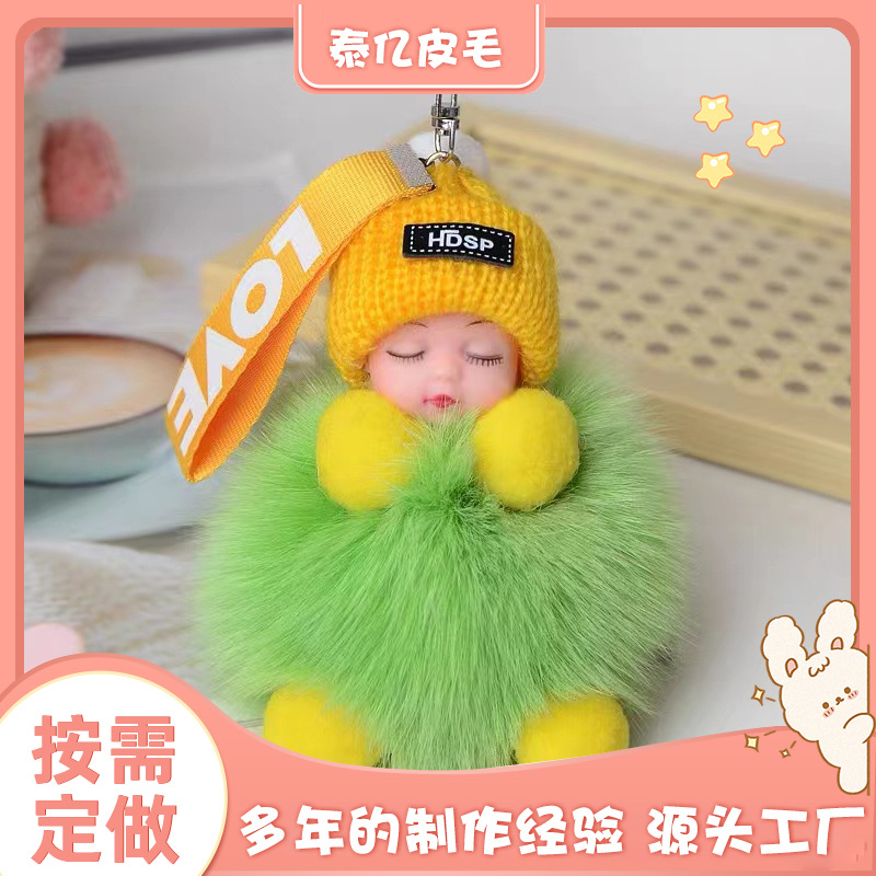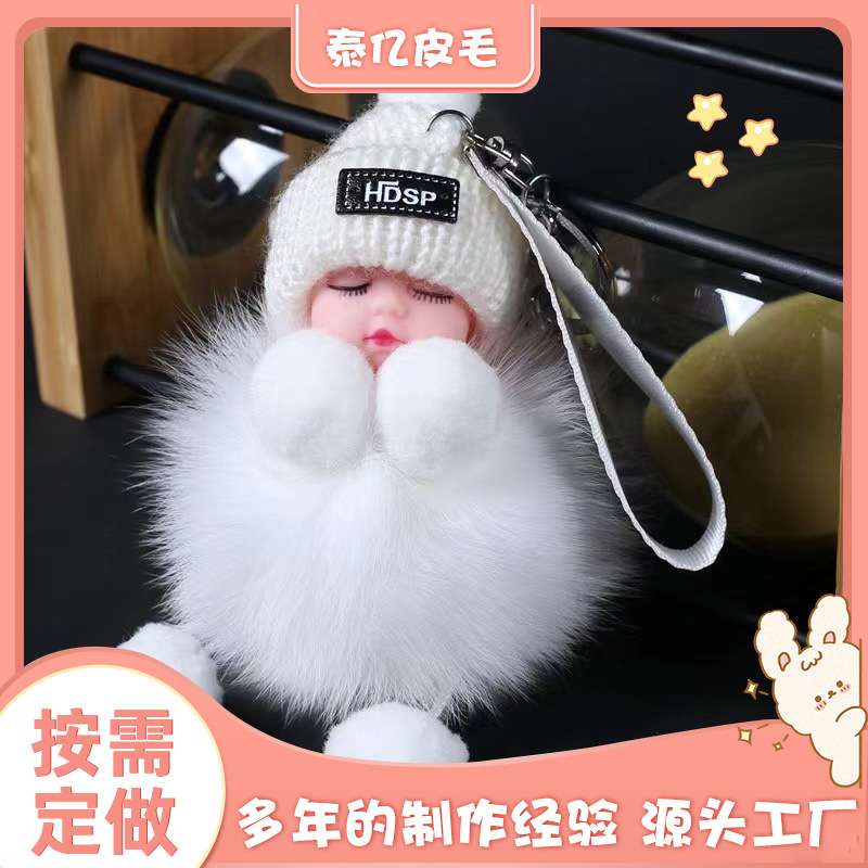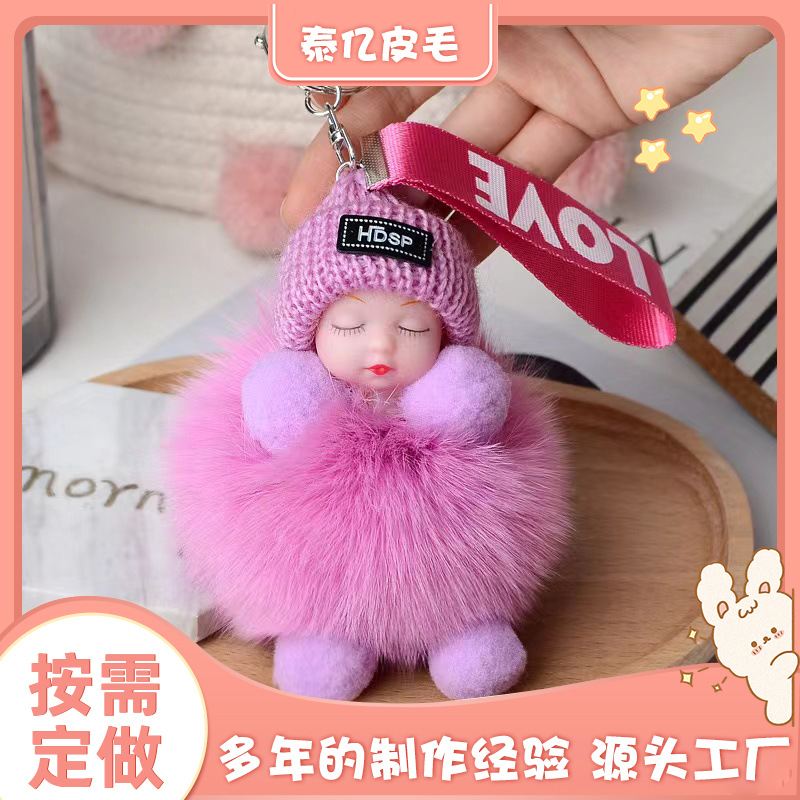 귀여운 모피 볼 펜던트 귀여운 봉제 인형 잠자는 인형 아기 자동차 키 체인 펜던트 백 펜던트