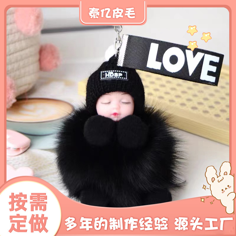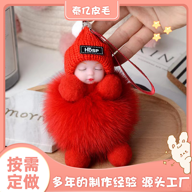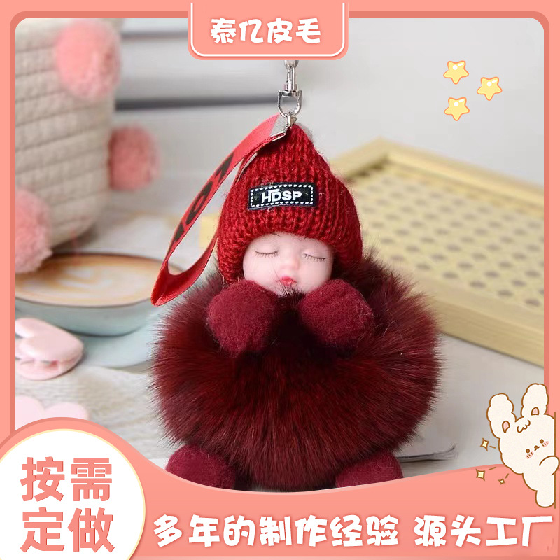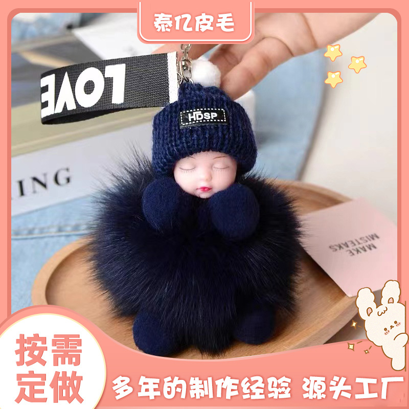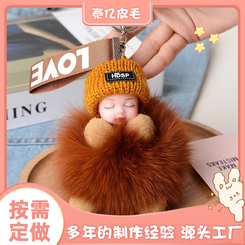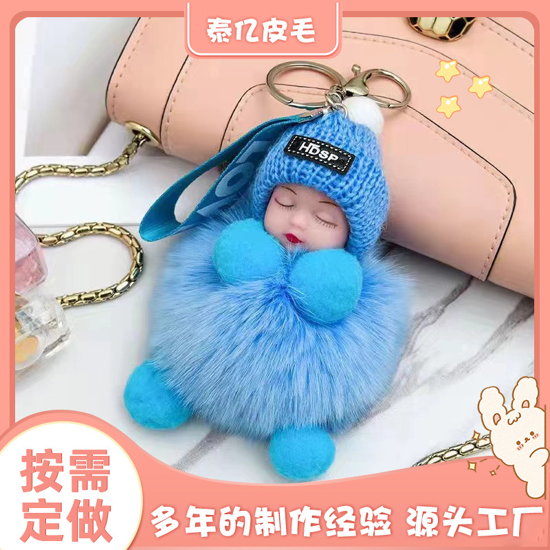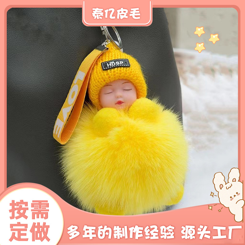 귀여운 모피 볼 펜던트 귀여운 봉제 인형 잠자는 인형 아기 자동차 키 체인 펜던트 백 펜던트
