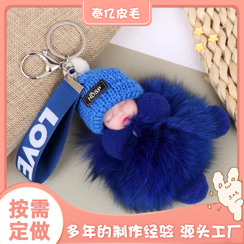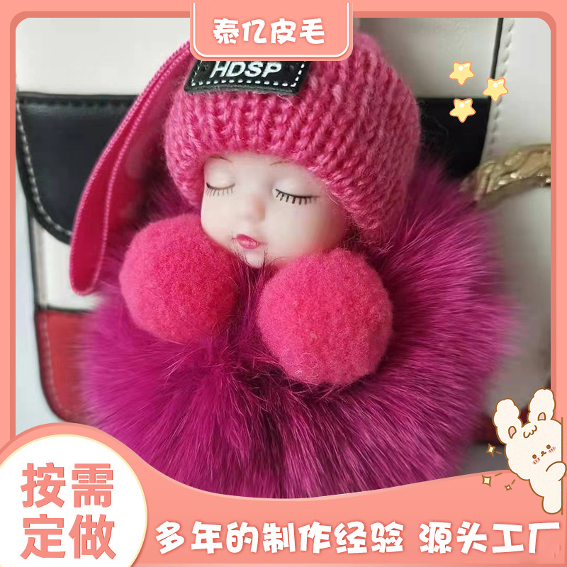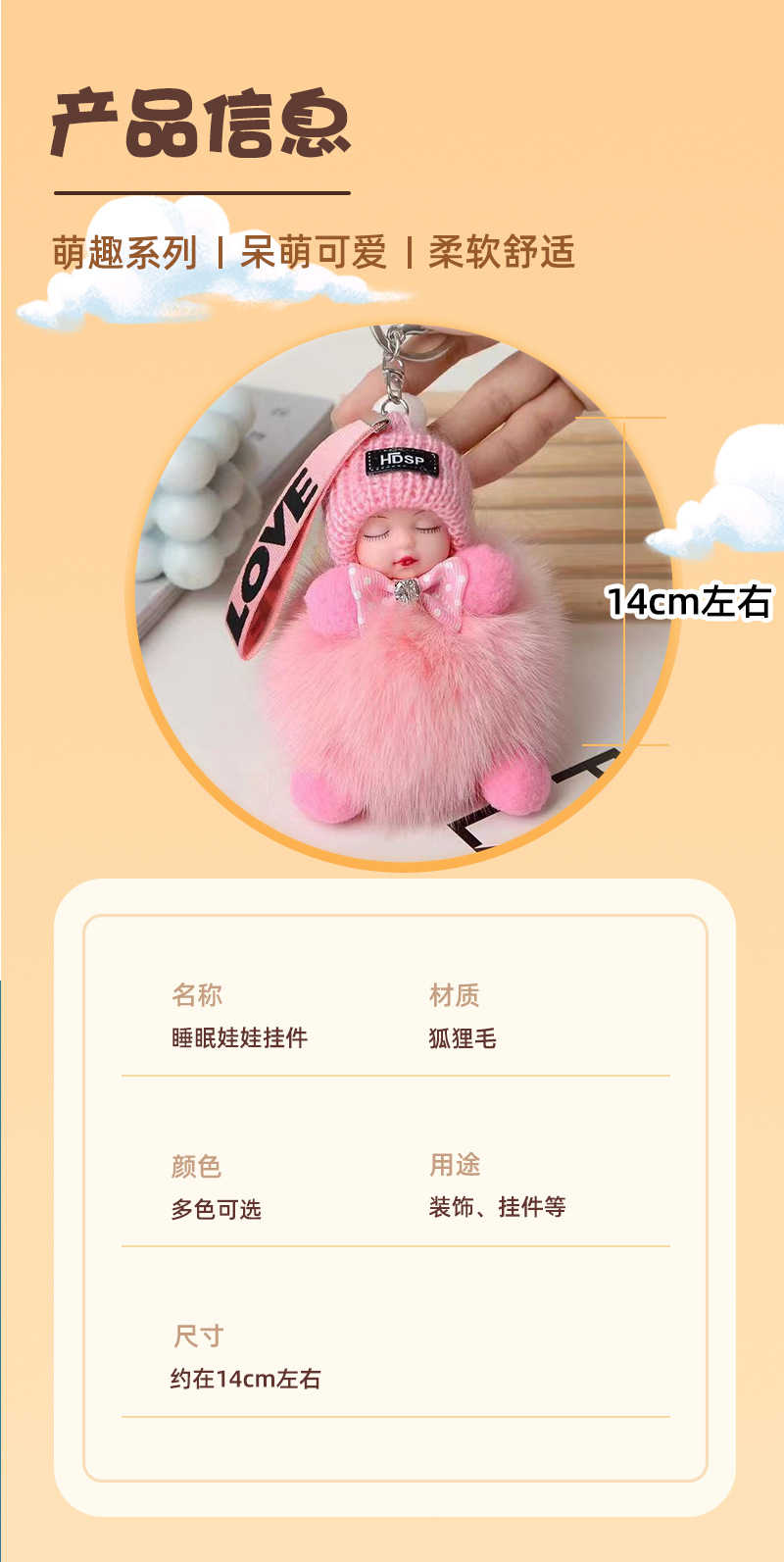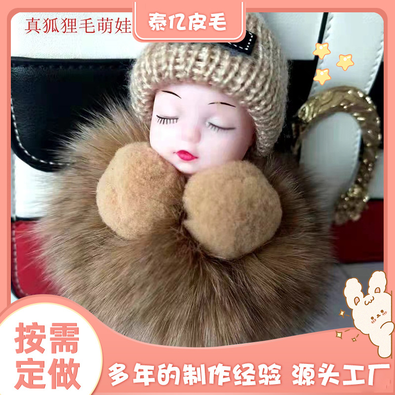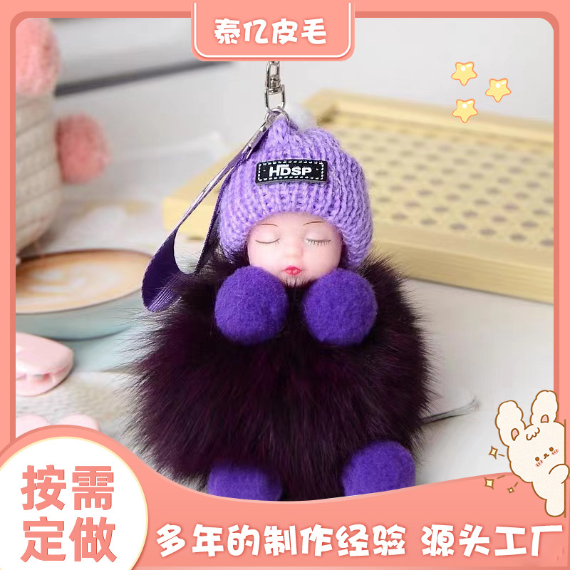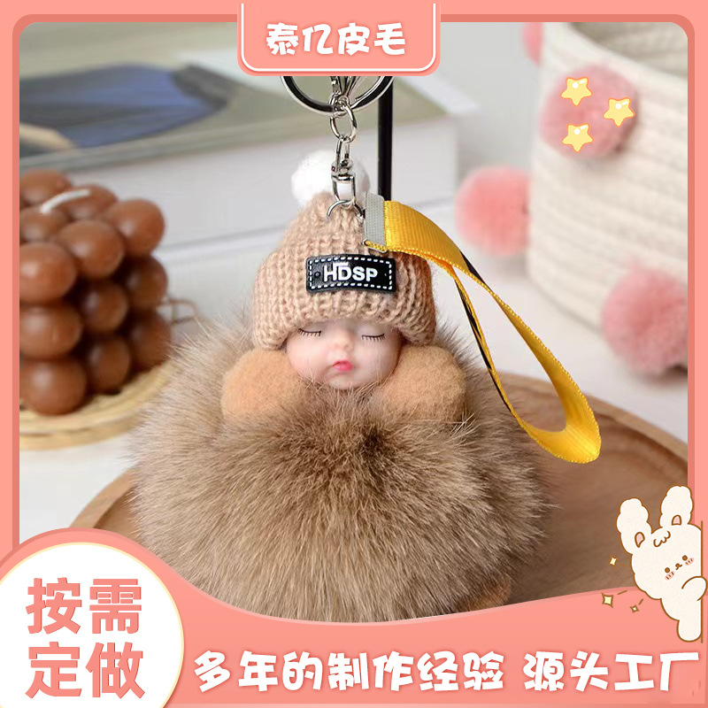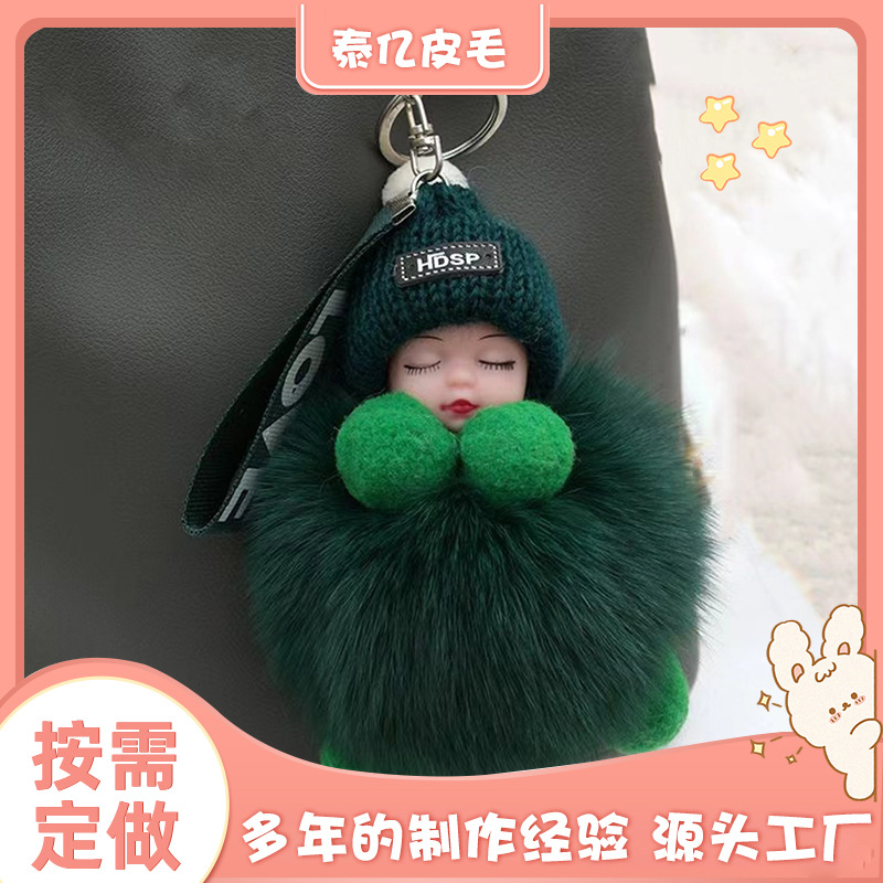 귀여운 모피 볼 펜던트 귀여운 봉제 인형 잠자는 인형 아기 자동차 키 체인 펜던트 백 펜던트