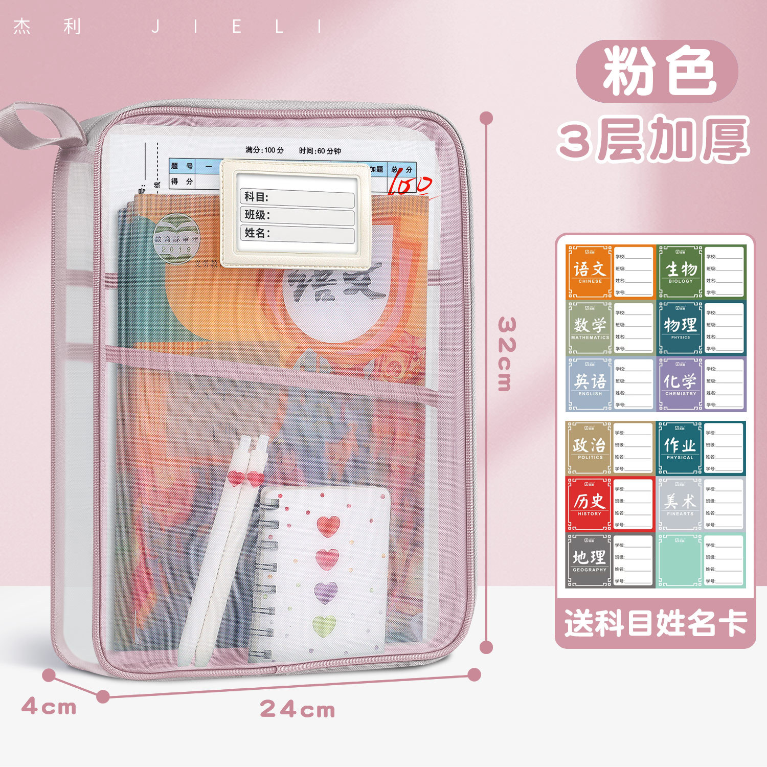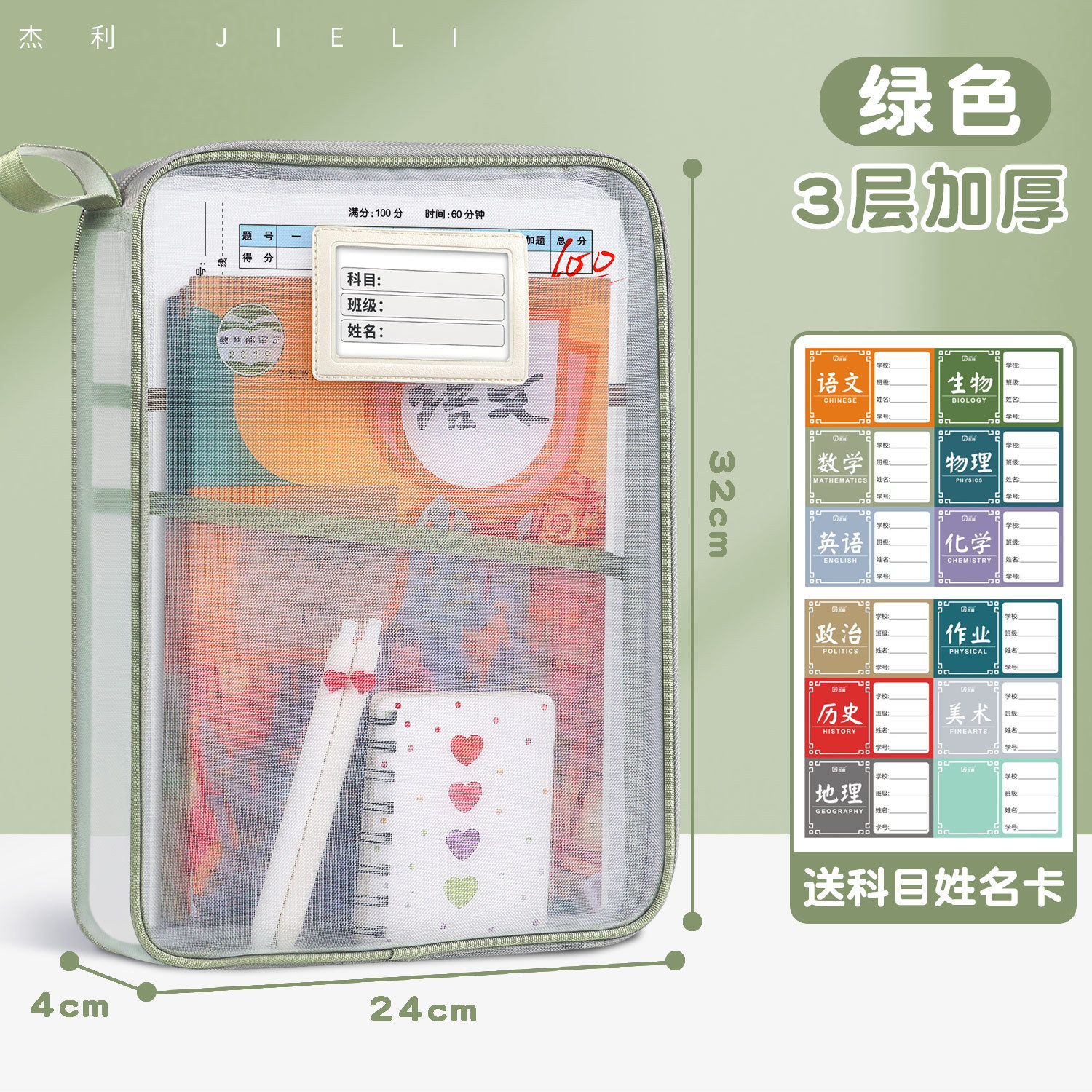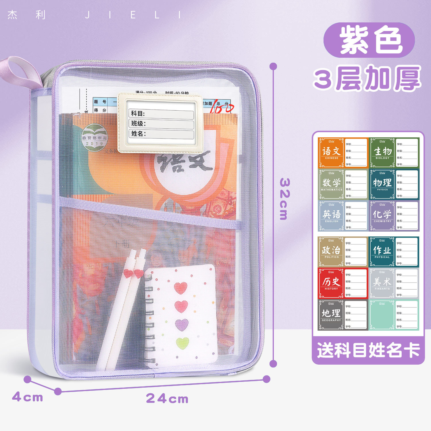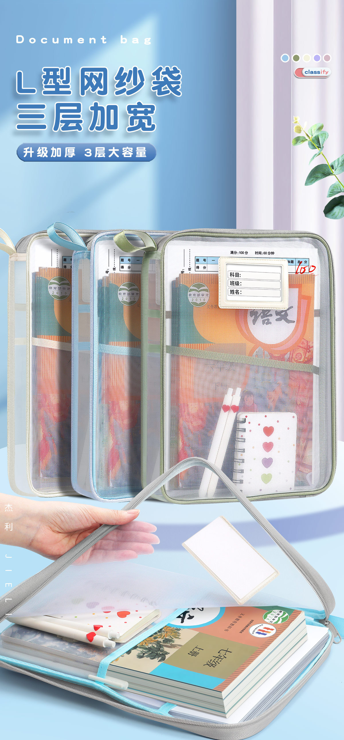 Jerry 6098 과목 분류 가방 L자형 A4 과목 시험지 보관 가방 다층 대용량 지퍼 파일 가방스토어 가기