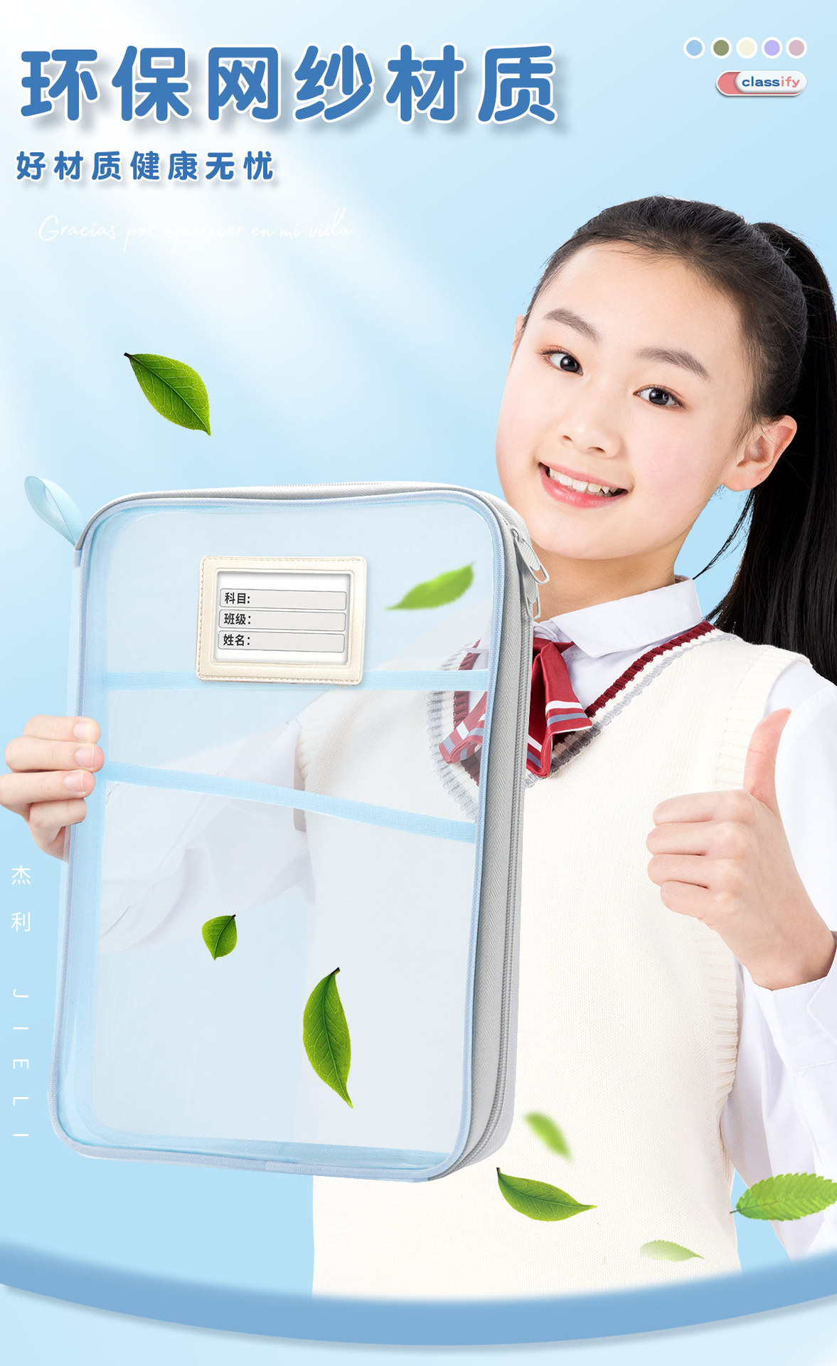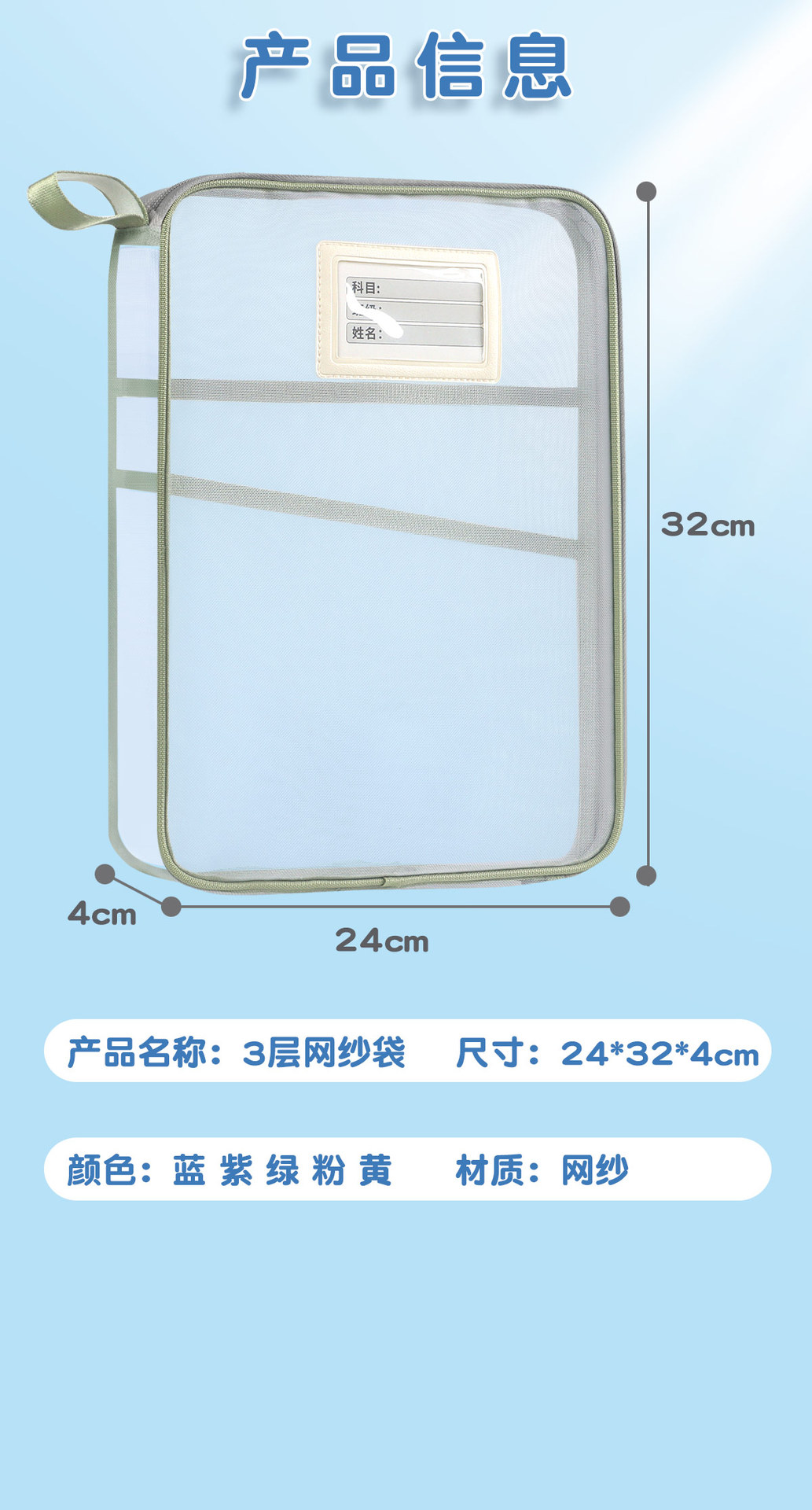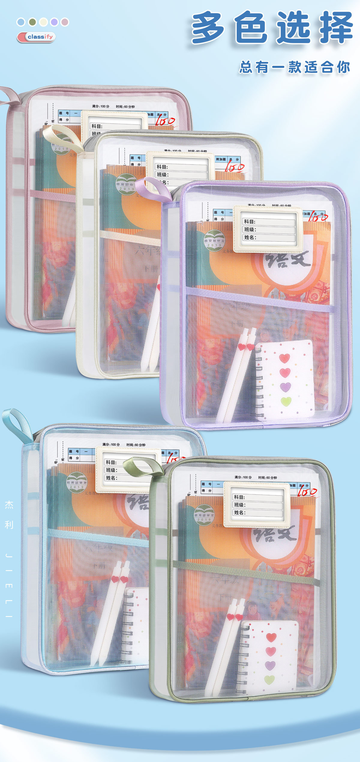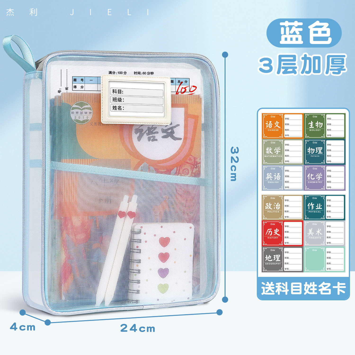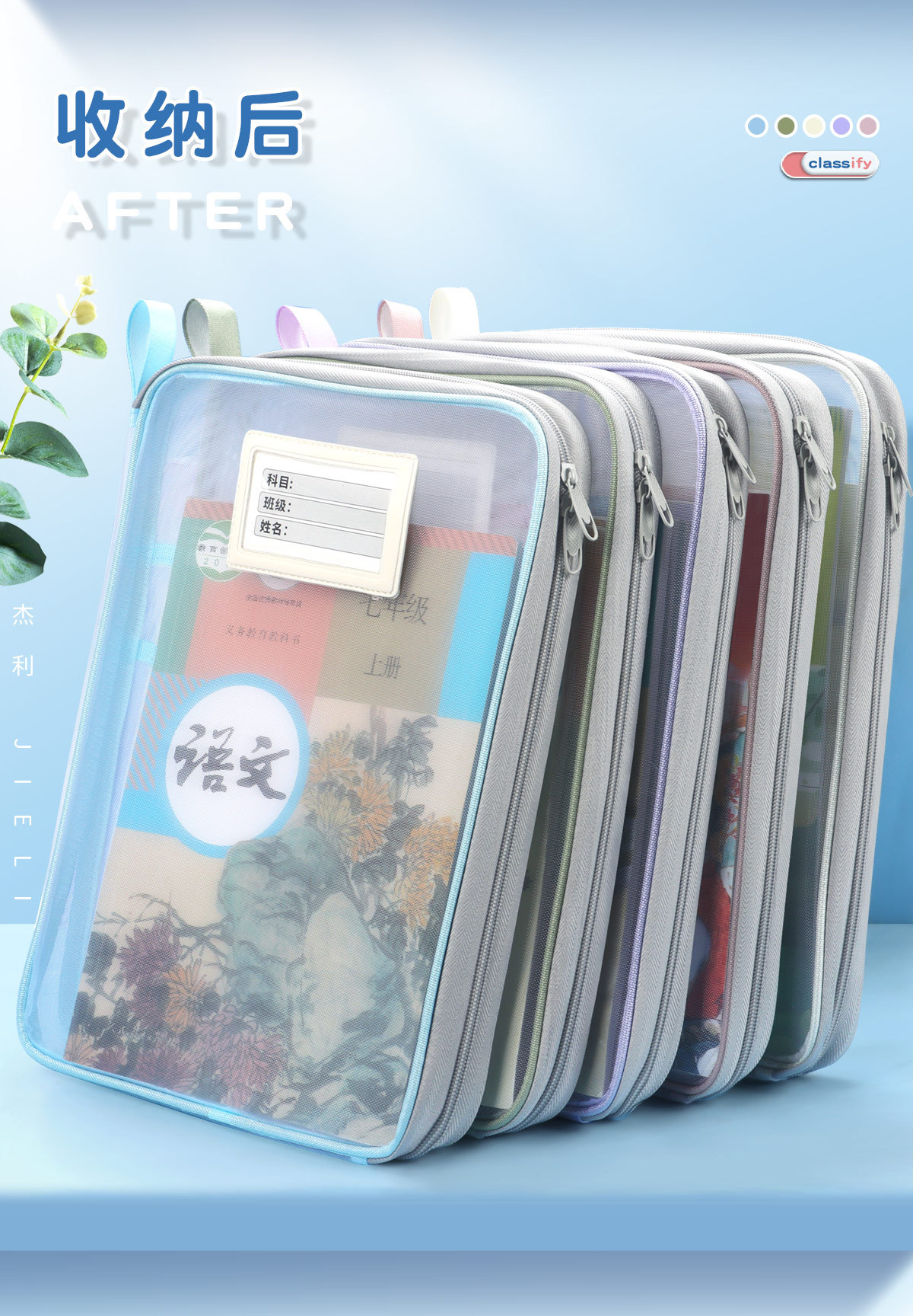 Jerry 6098 과목 분류 가방 L자형 A4 과목 시험지 보관 가방 다층 대용량 지퍼 파일 가방스토어 가기