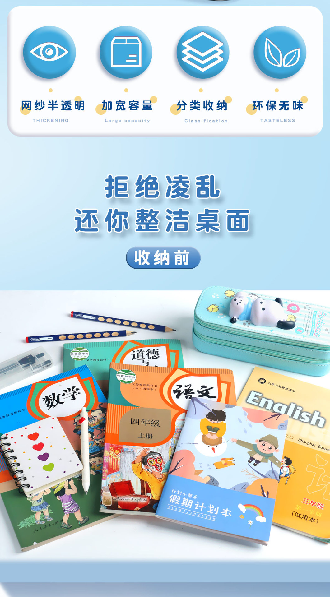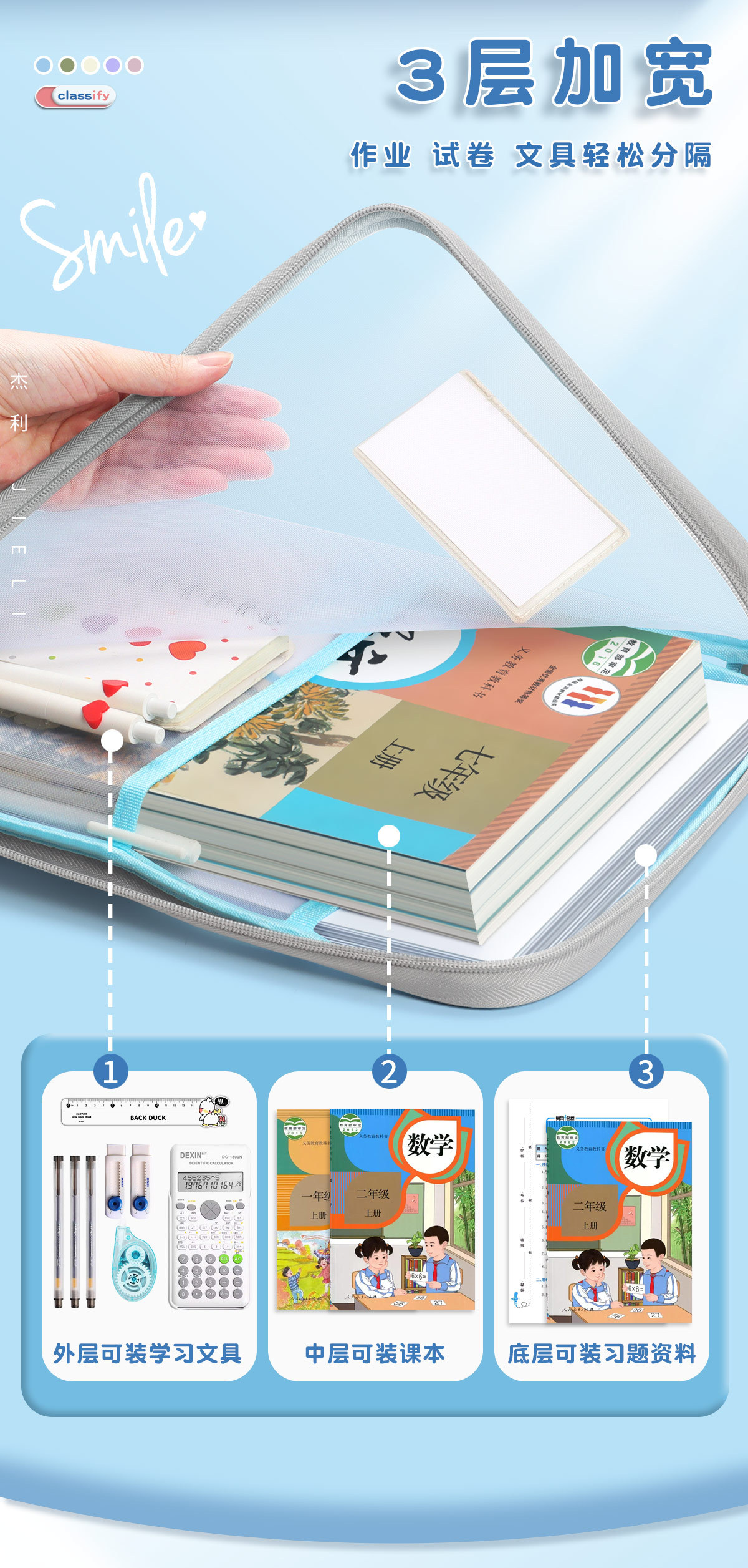 Jerry 6098 과목 분류 가방 L자형 A4 과목 시험지 보관 가방 다층 대용량 지퍼 파일 가방