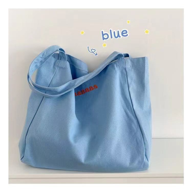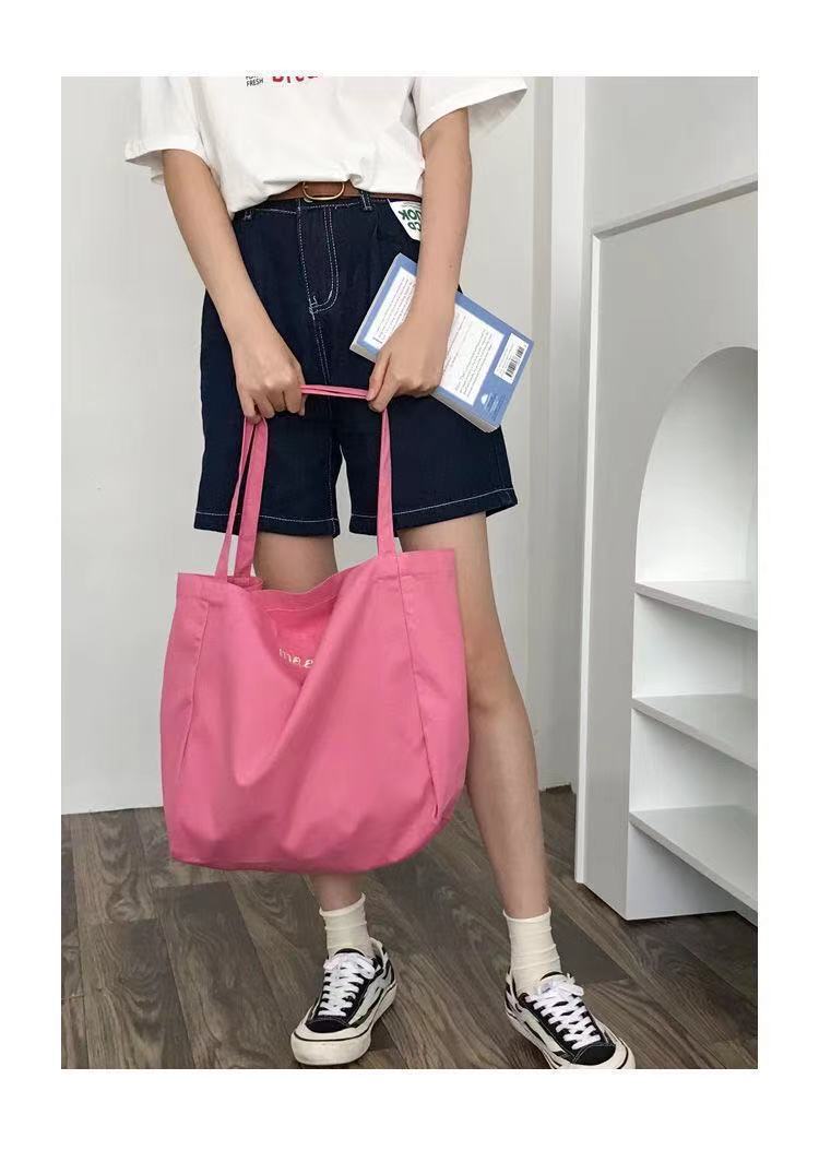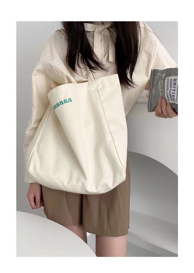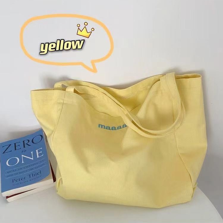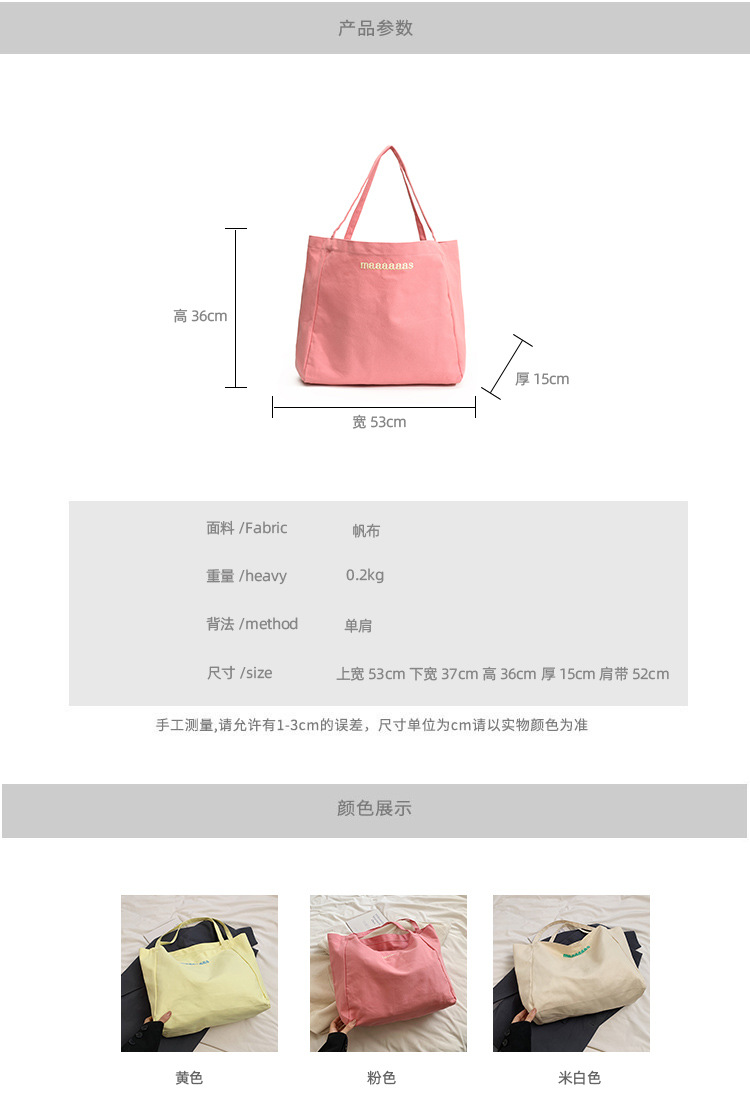 일본과 한국식 마아 캔디 컬러 편지 어깨 핸드 캔버스 가방 인스 타 그램 학생 클래스 가방 간단한 친환경 쇼핑백스토어 가기