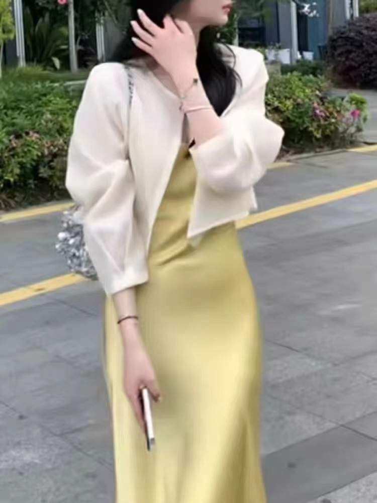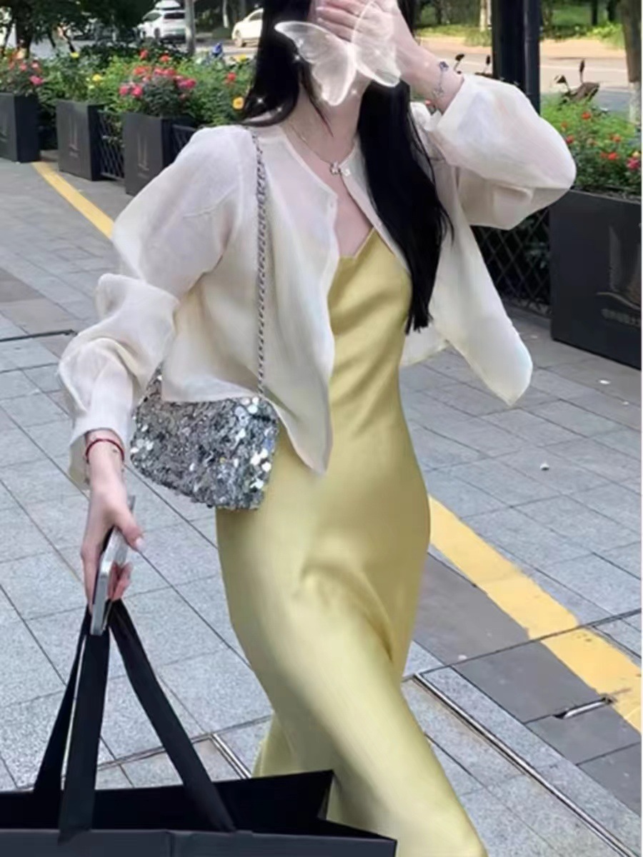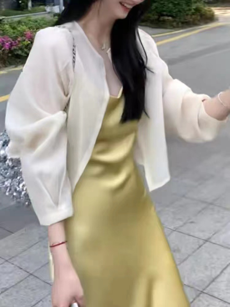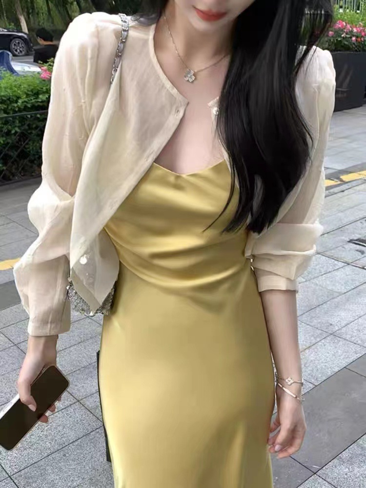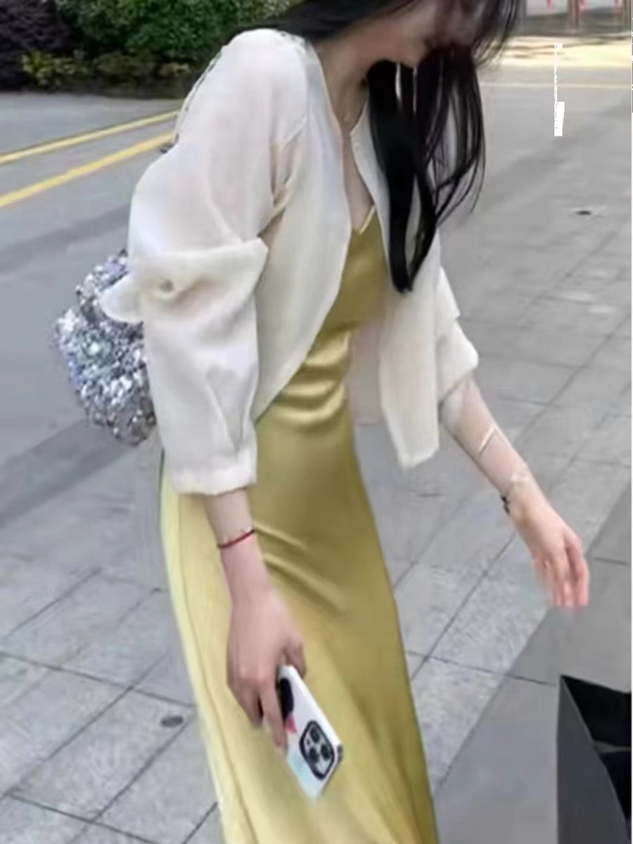 여성용 프렌치 텐셀 자외선 차단 셔츠, 여름용 얇은 거즈 가디건, 작은 조끼 탑, 서스펜더 스커트, 숄 블라우스