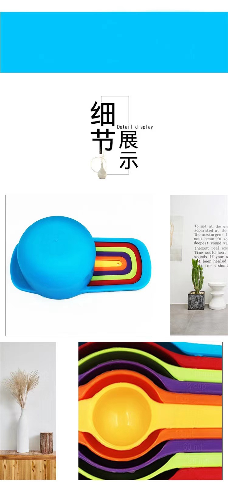 무지개 측정 컵 6 조각 세트 스케일 우유 가루 숟가락 베이킹 측정 컵 커피 주방 요리 조미료 측정 숟가락