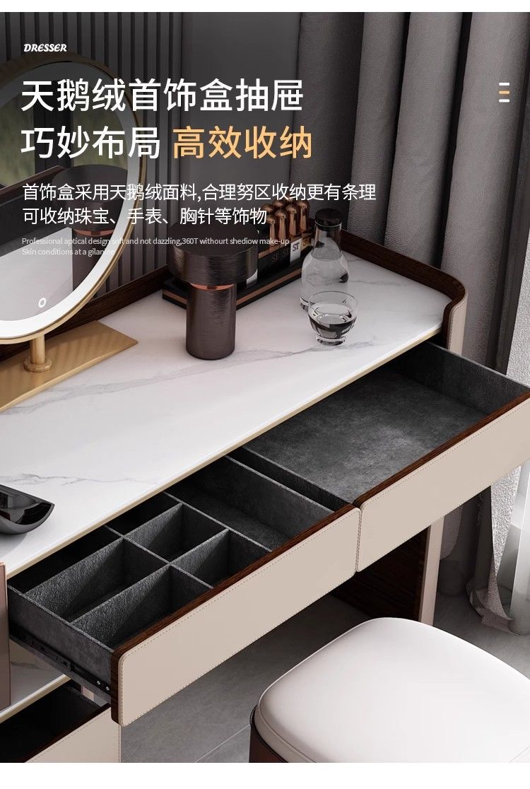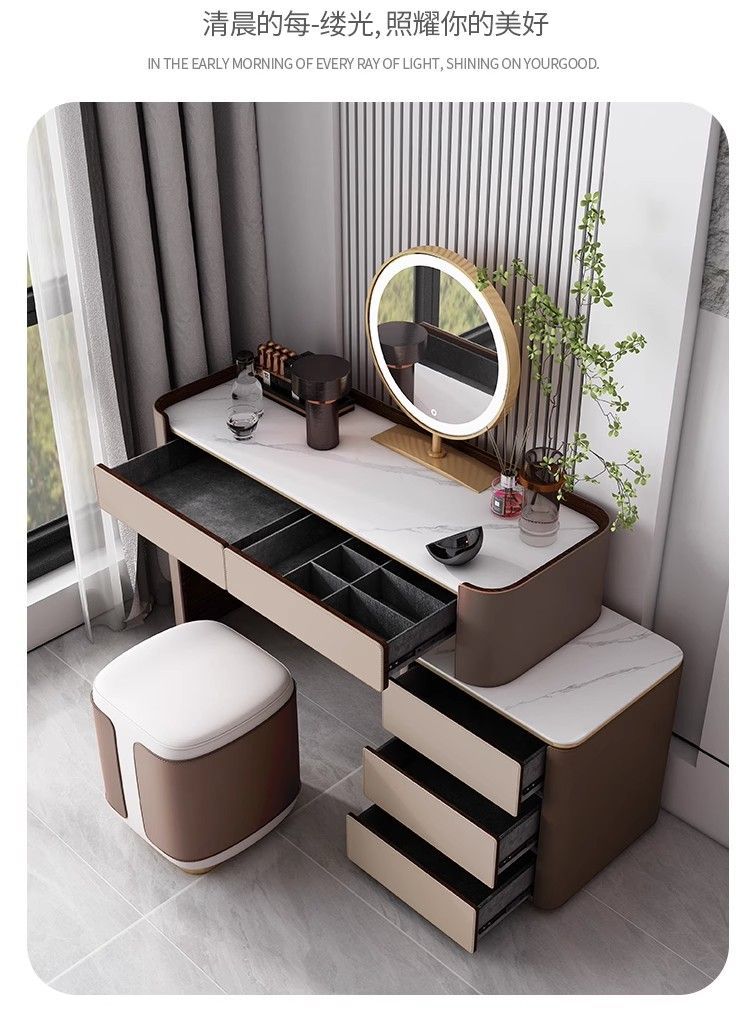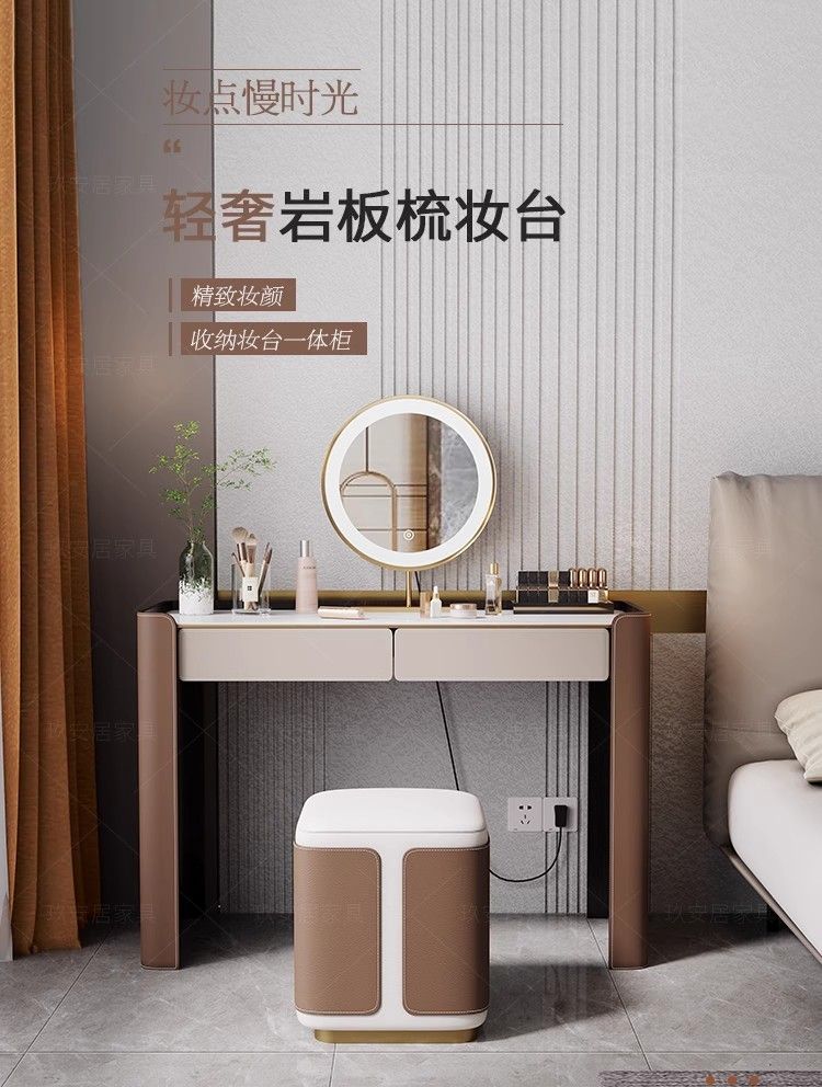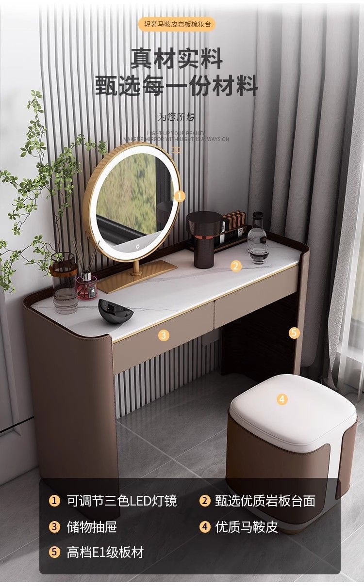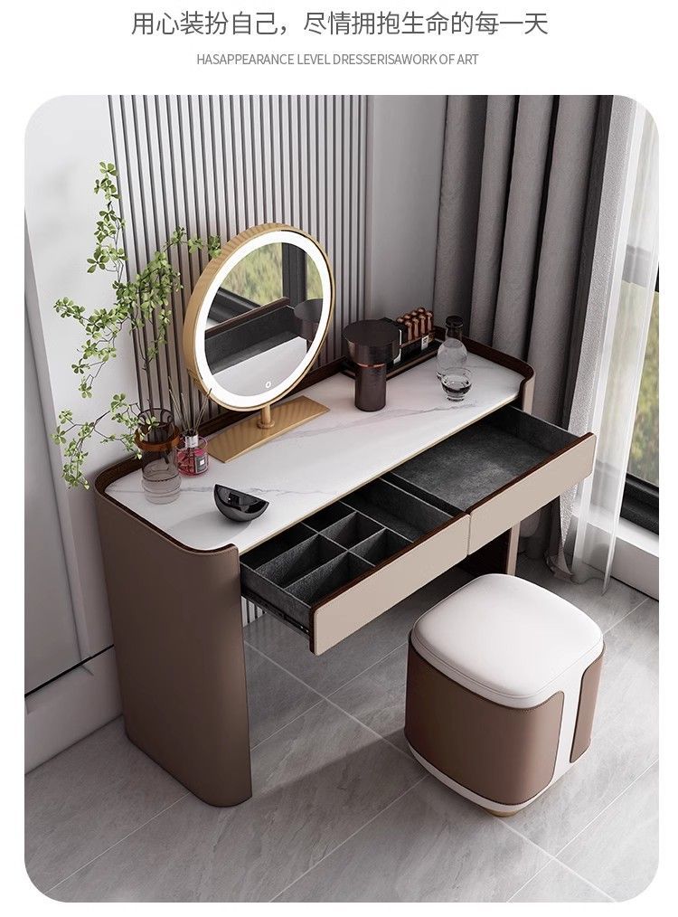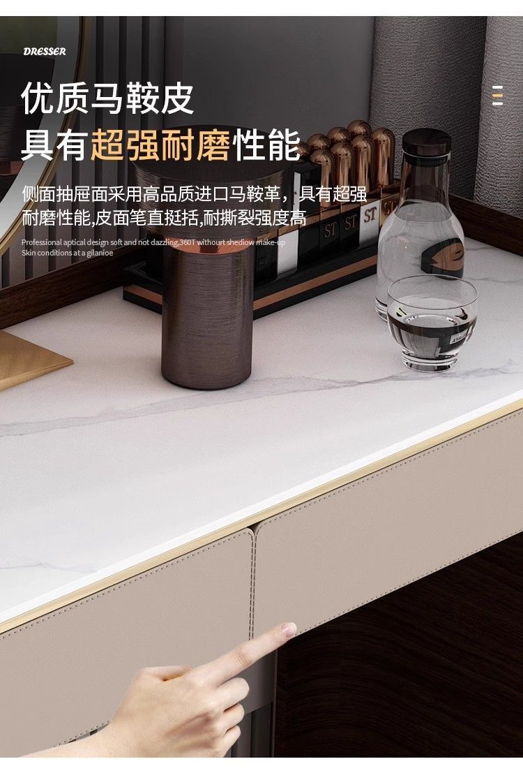 이탈리아 빛 럭셔리 인터넷 유행 작은 아파트 현대 단단한 나무 드레싱 테이블 바위 접시 안장 가죽 메이크업 테이블 테이블 스토리지 버킷 캐비닛 통합스토어 가기
