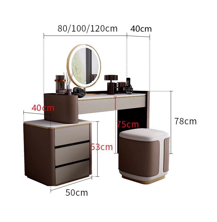• 0.8m 싱글 화장대(싱글 서랍) + 사이드 캐비닛 + 스툴 + 화장 거울