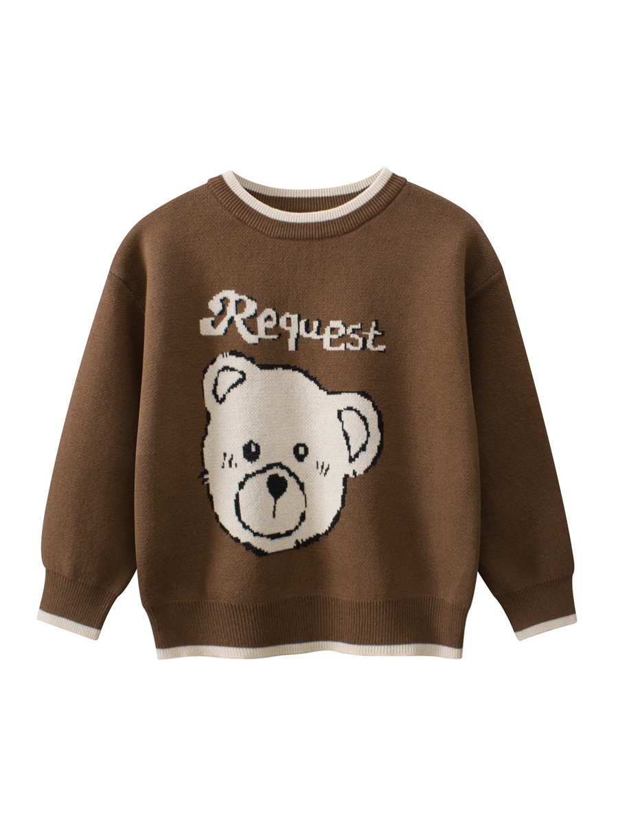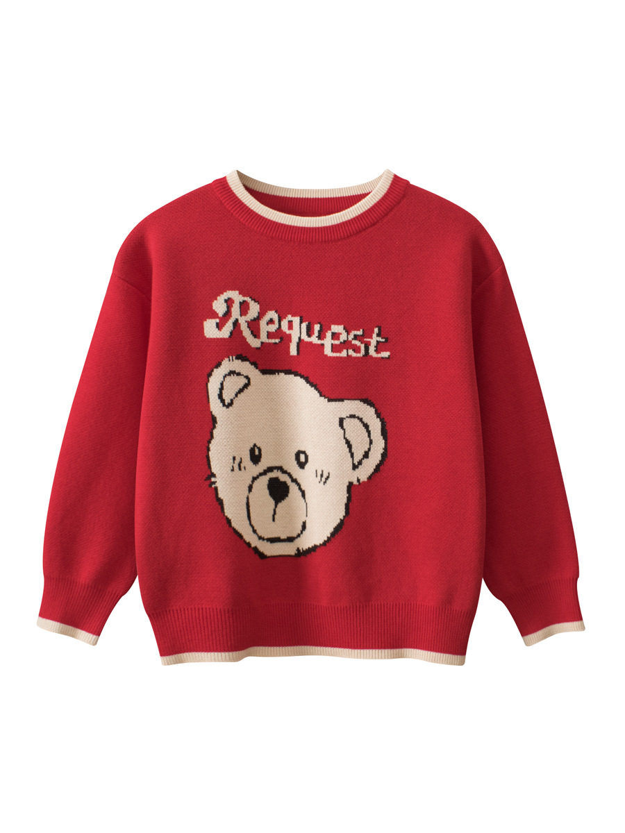 2024 가을 새 소녀 스웨터 도매 국경 아동복 어린이 만화 곰 스웨터 라이브 공급