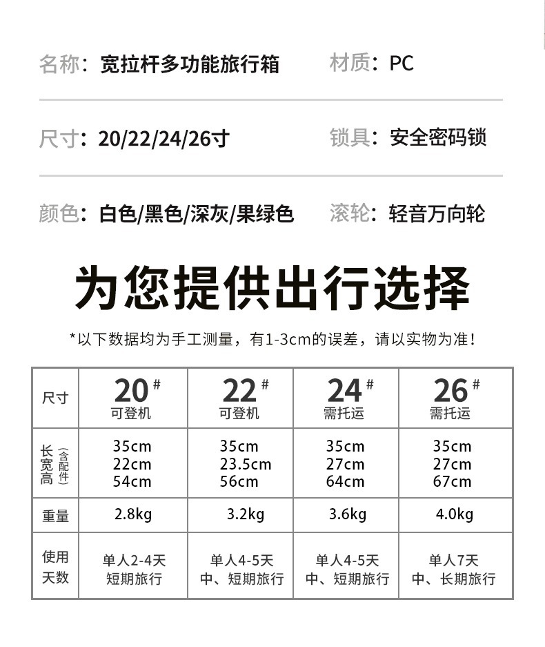 2024 새로운 와이드 트롤리 가방은 튼튼하고 내구성이 뛰어납니다. 20inch 작은 신선한 트롤리 가방 다기능 가방 24inch