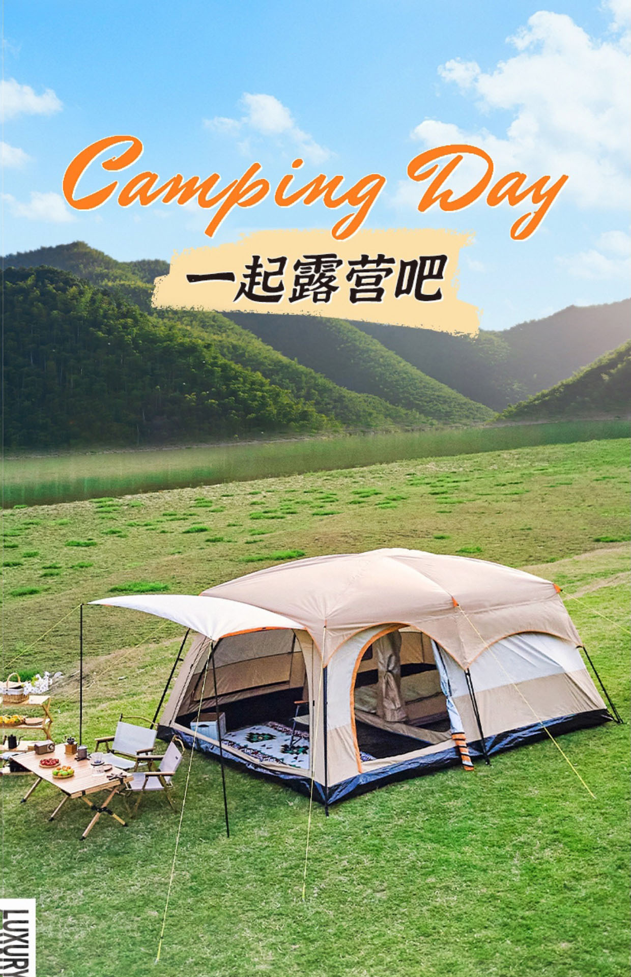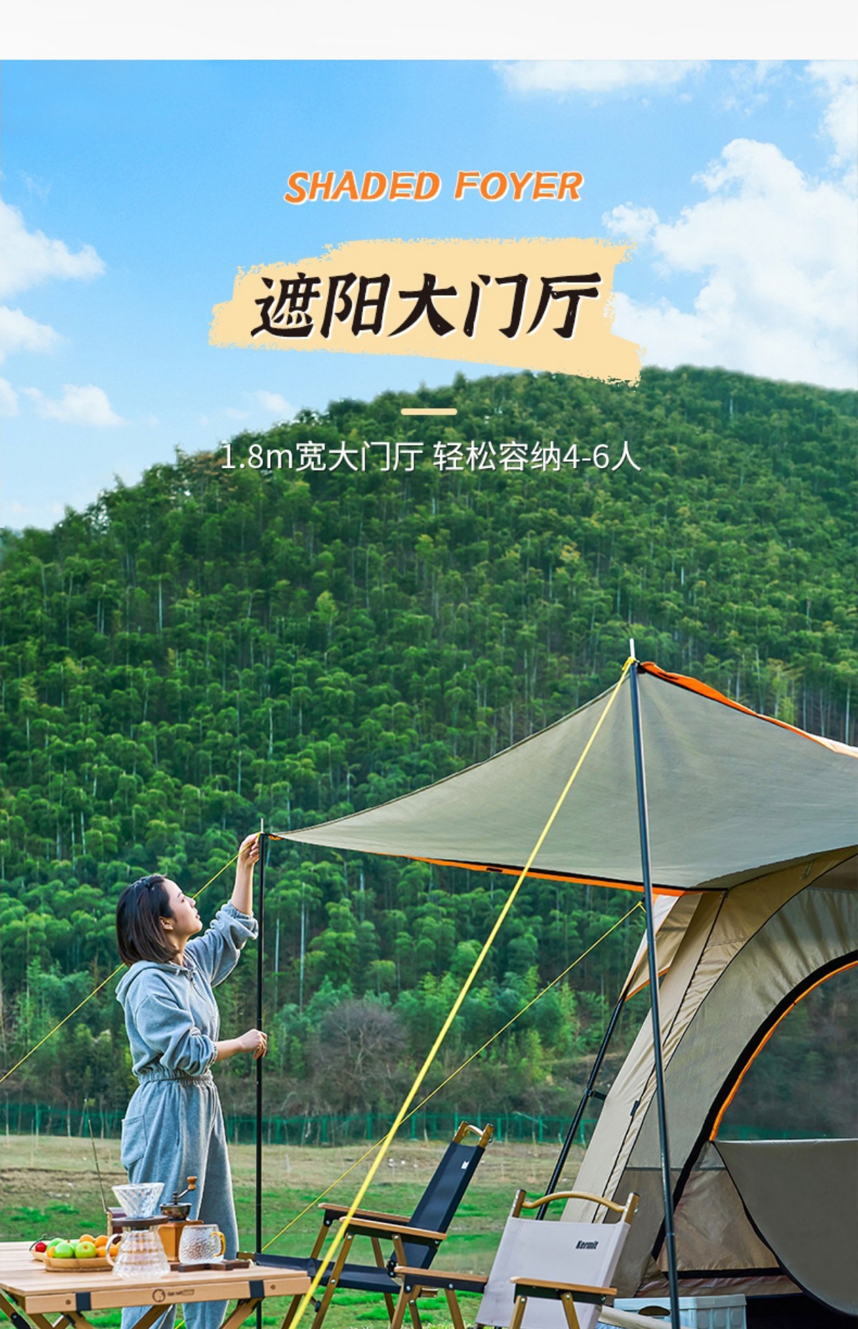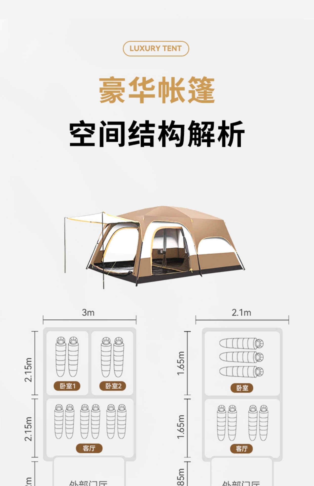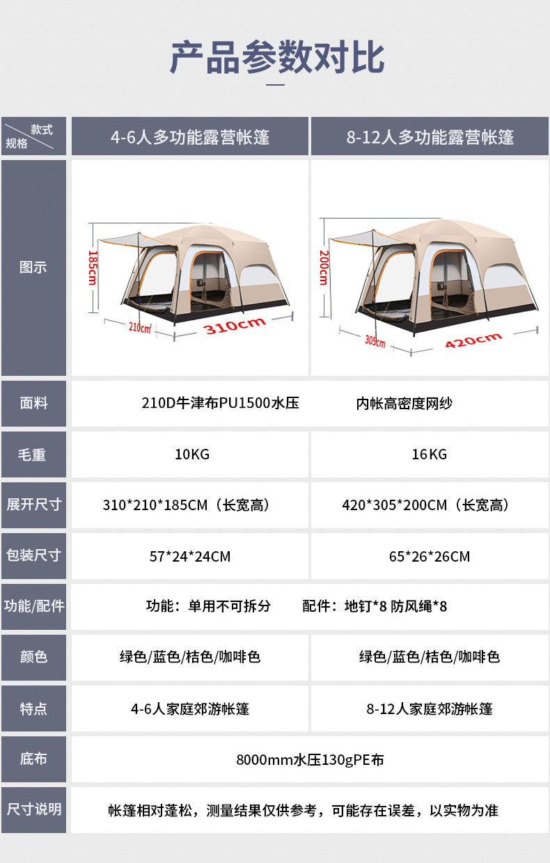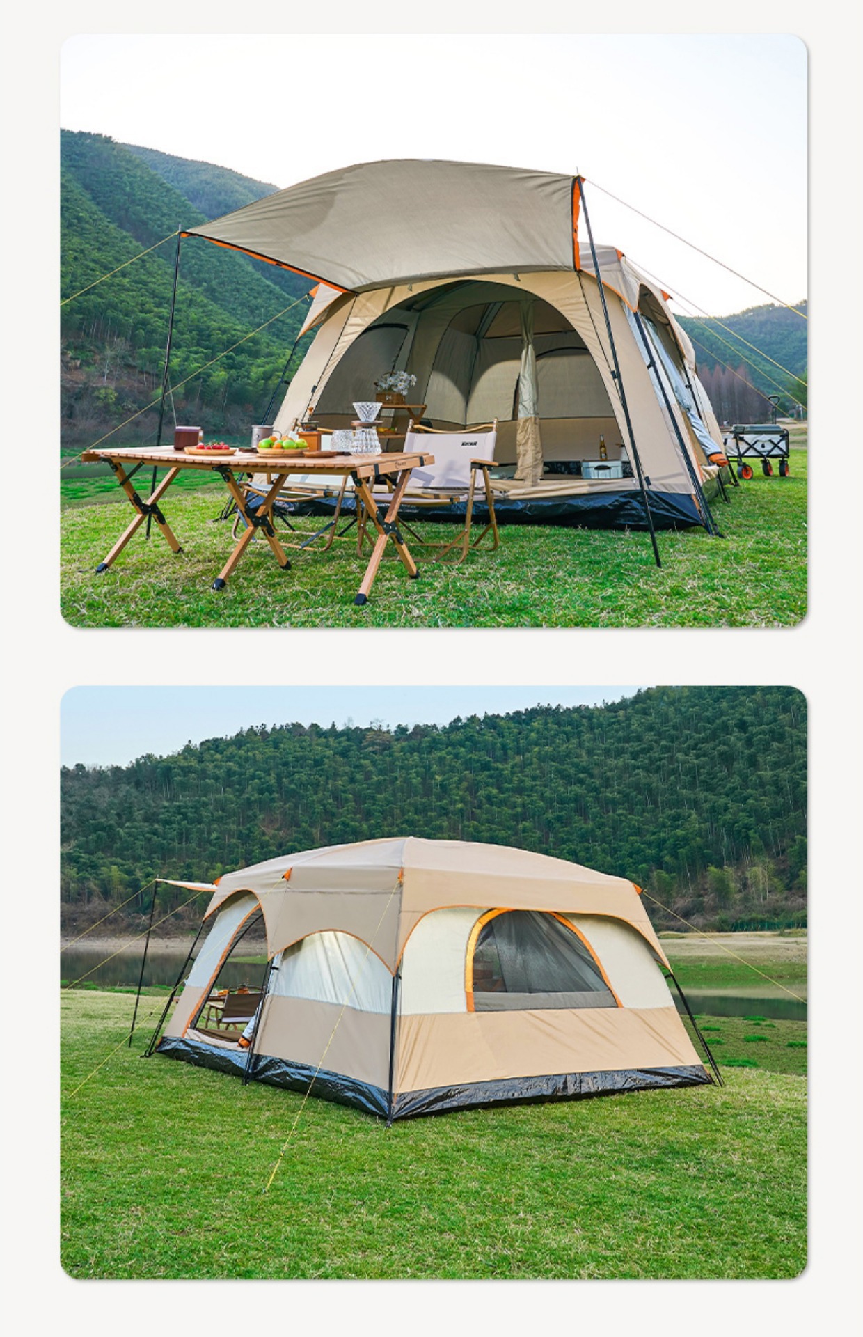 야외 캠핑 텐트 2 개 방 1 홀 공원 캠핑 용품 장비 휴대용 접이식 선 스크린 2 개 방 1 개 홀스토어 가기