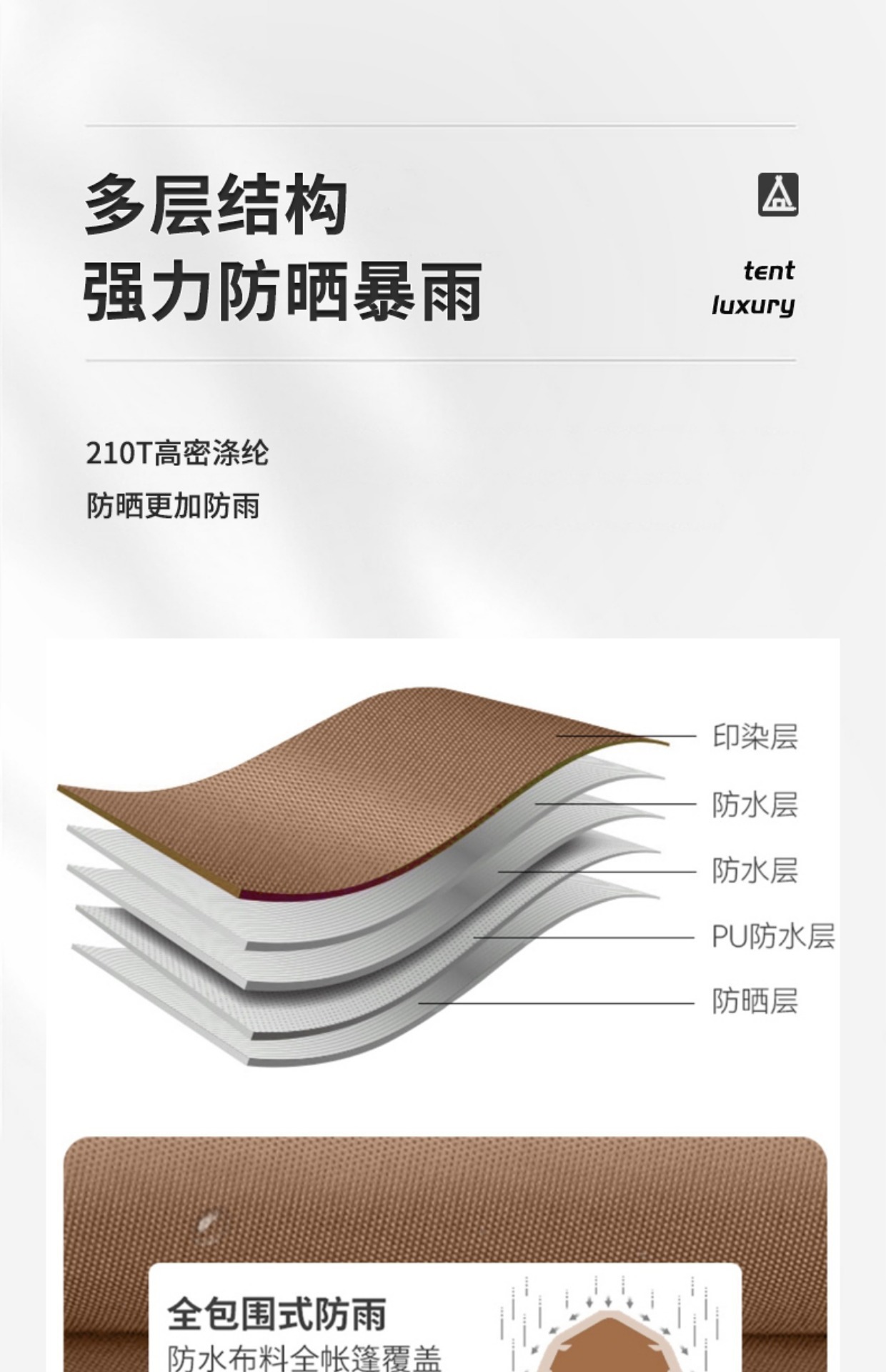 야외 캠핑 텐트 2 개 방 1 홀 공원 캠핑 용품 장비 휴대용 접이식 선 스크린 2 개 방 1 개 홀
