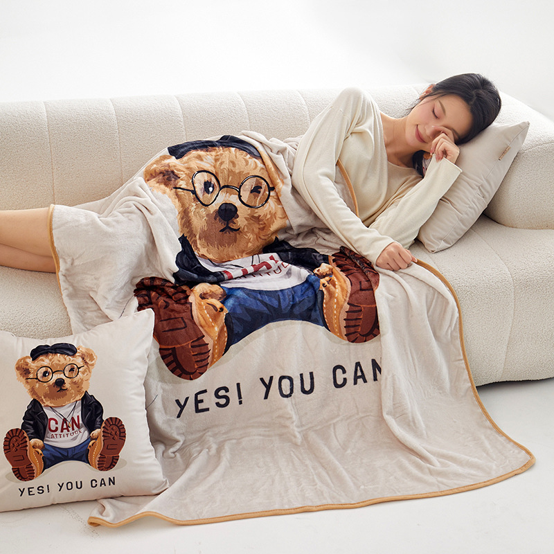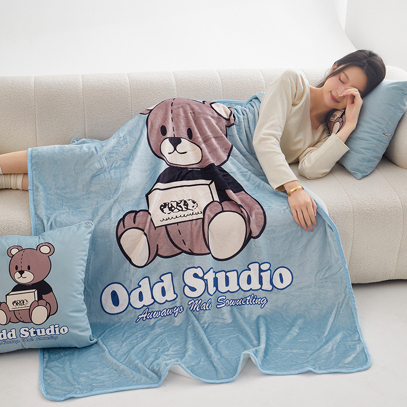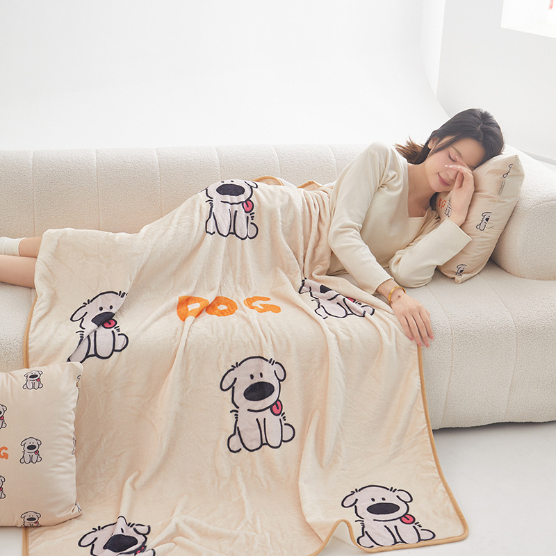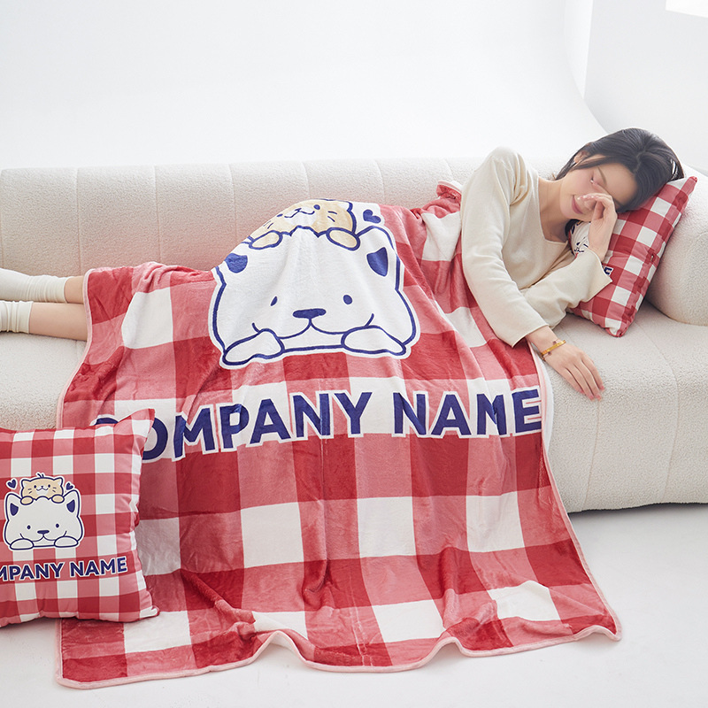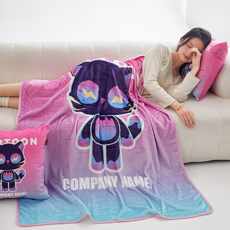 높은 무게 금 밍크 베개 담요 이중 사용 플란넬 담요 저장 학교 낮잠 베개 담요 여름
