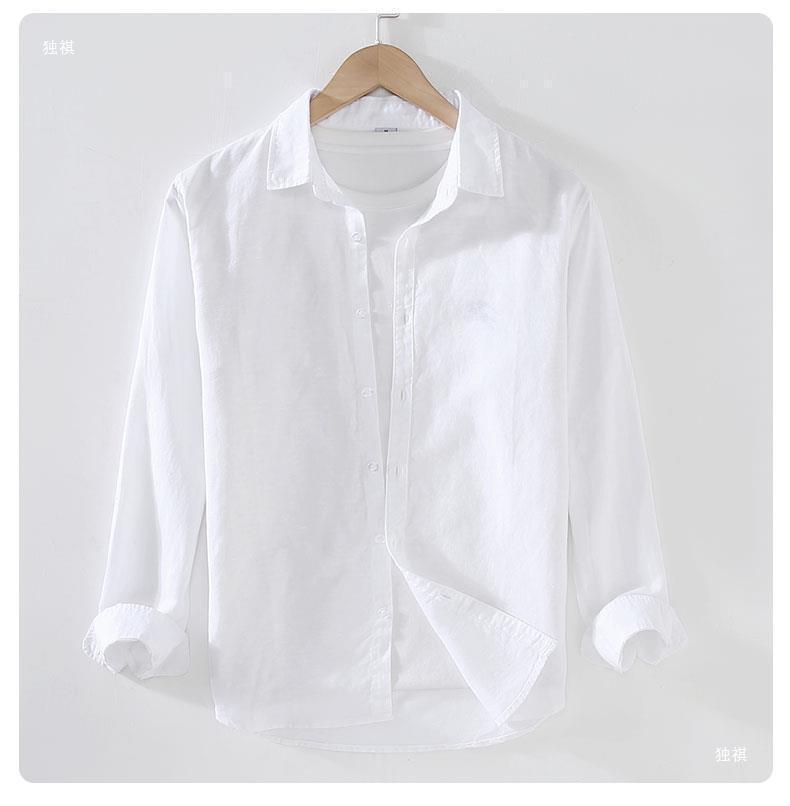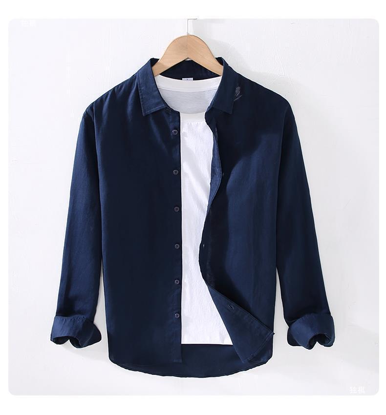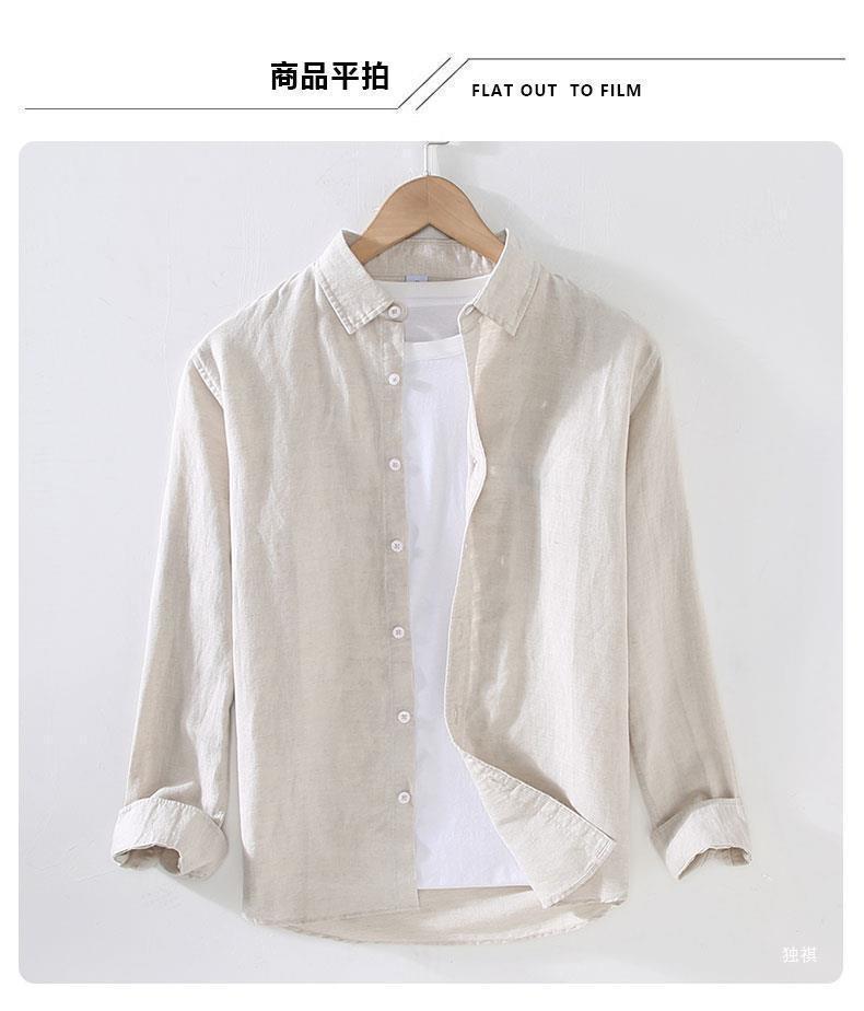 남자 리넨 긴 소매 셔츠 리넨 남자 일본 캐주얼 느슨한 면 리넨 셔츠 봄과 여름 외부 셔츠스토어 가기