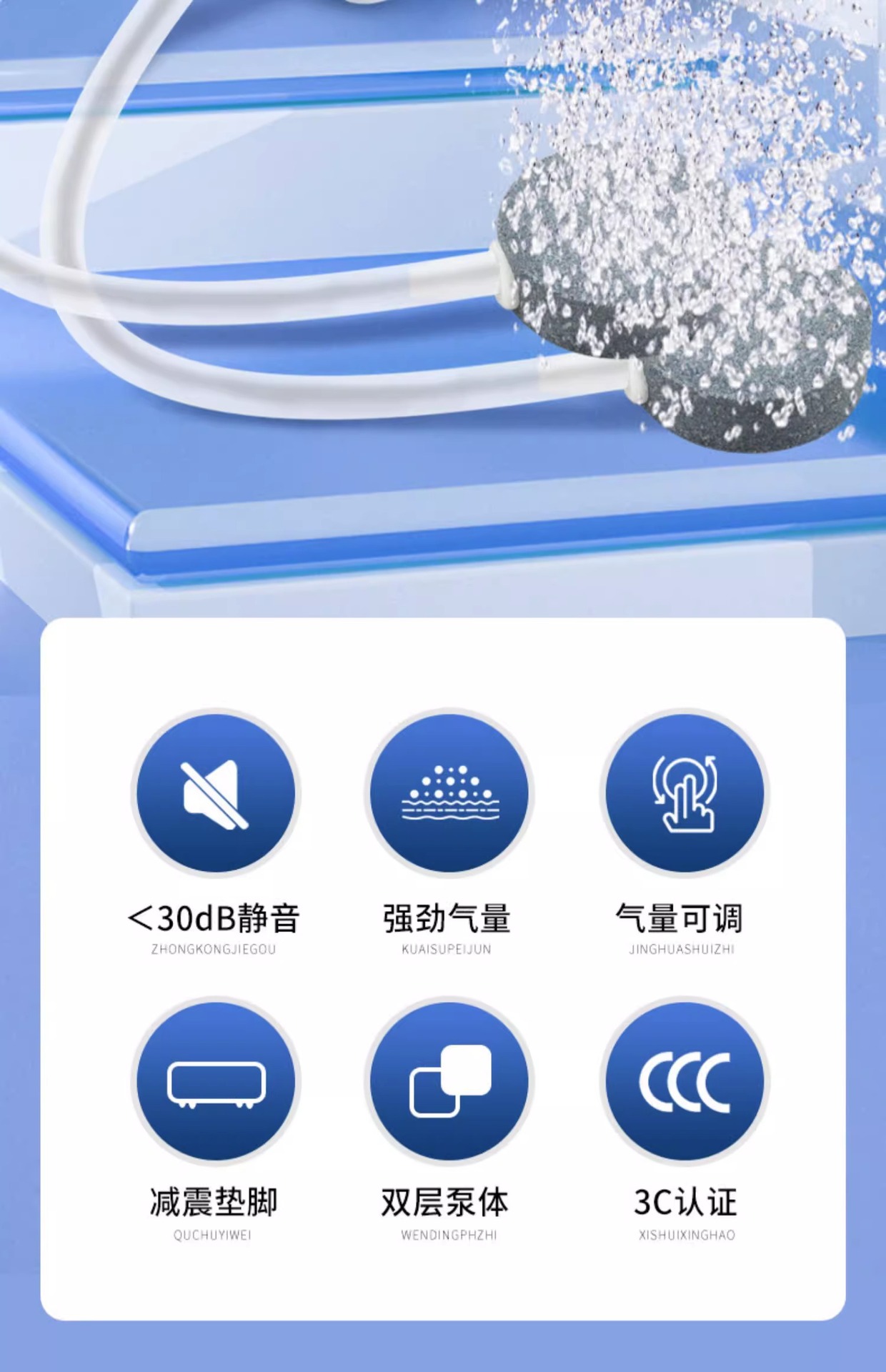 물고기 탱크 산소 펌프 산소 펌프 작은 매우 조용한 가정용 산소 펌프 더블 홀 수족관 공기 펌프